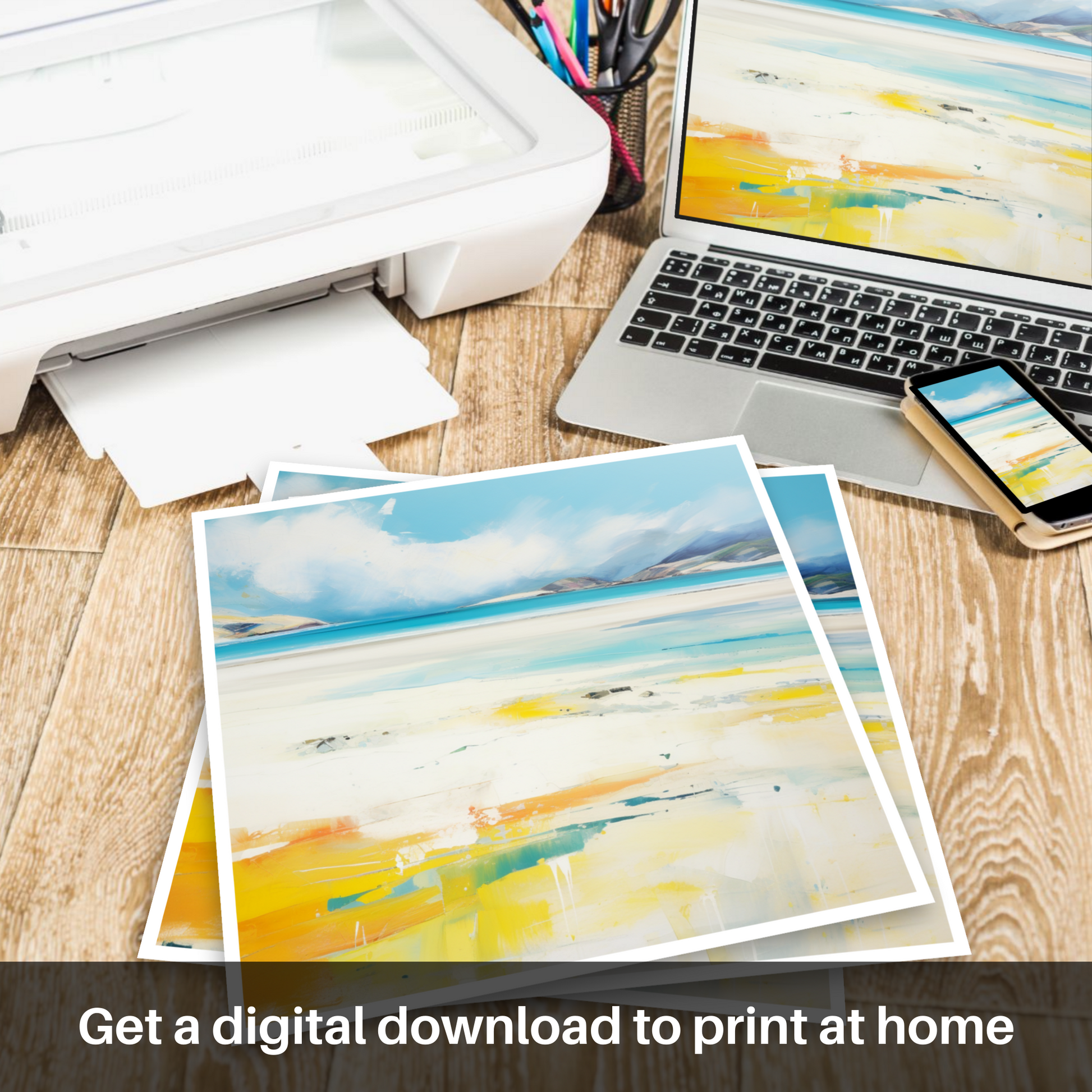 Painting and Art Print of Luskentyre Beach, Isle of Harris in summer entitled "Luskentyre Beach Bliss: An Abstract Ode to Summer".