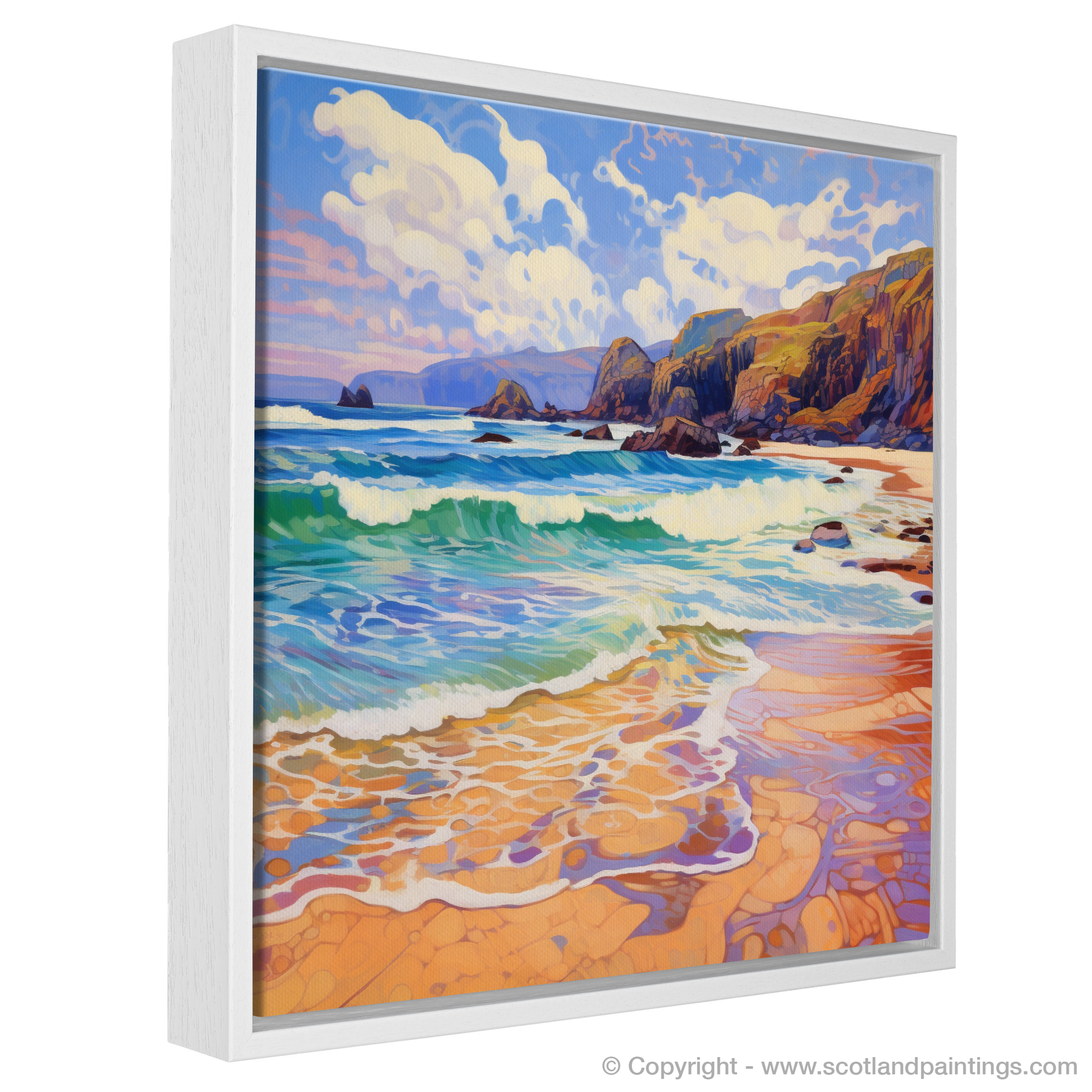 Captured within this exquisite print is a vibrant rendition of Durness Beach, a gem in the heart of Sutherland, celebrated during the height of summer. A feast for the eyes, the image bursts with the unique charm of impressionist art, where every stroke and hue work in harmony to evoke the essence of the scene rather than its precise details.