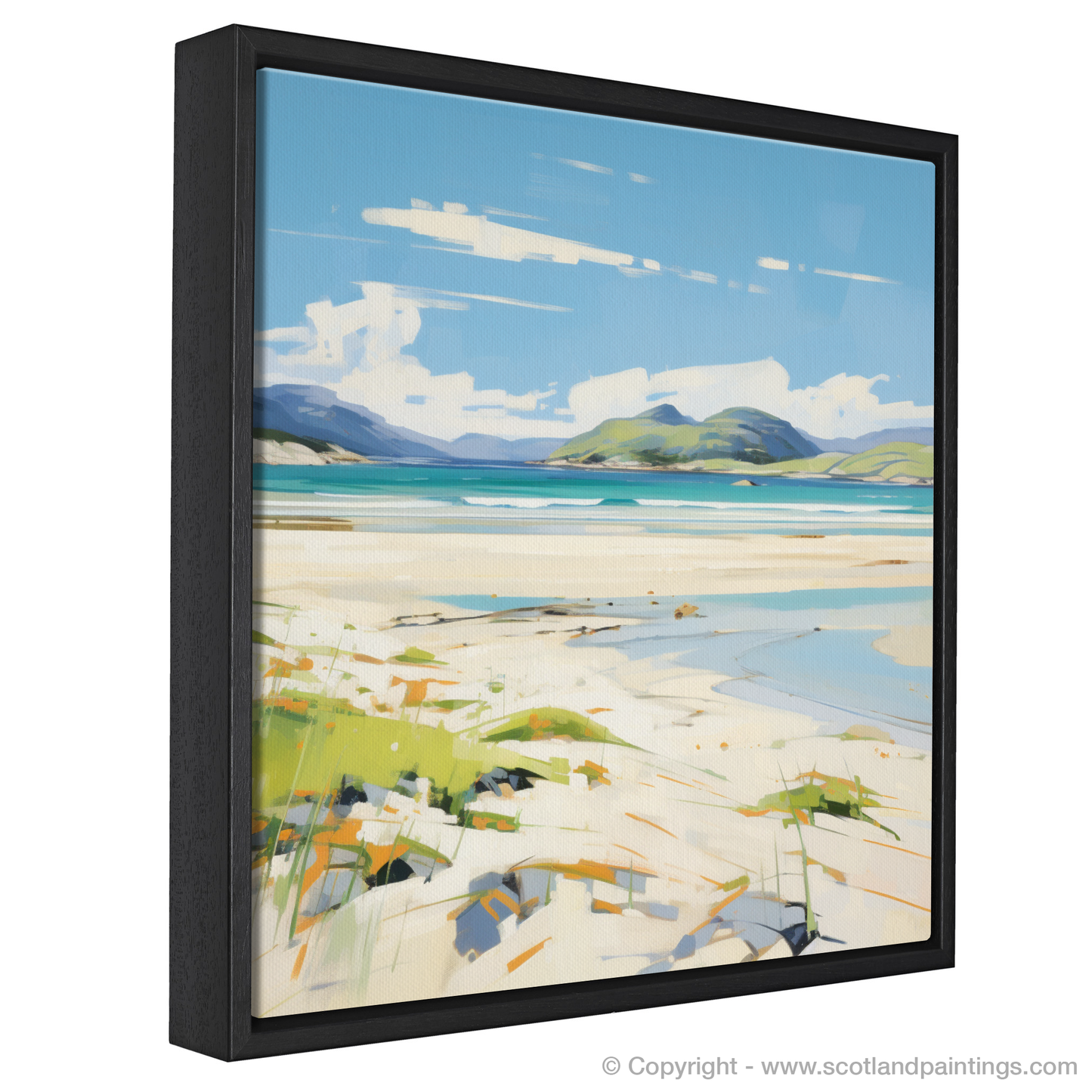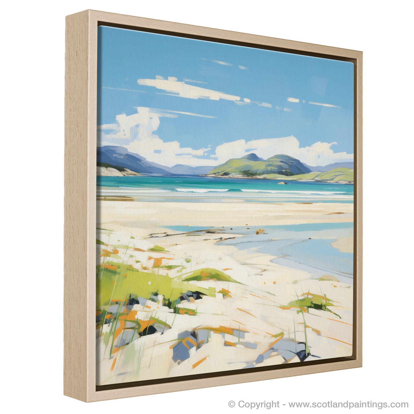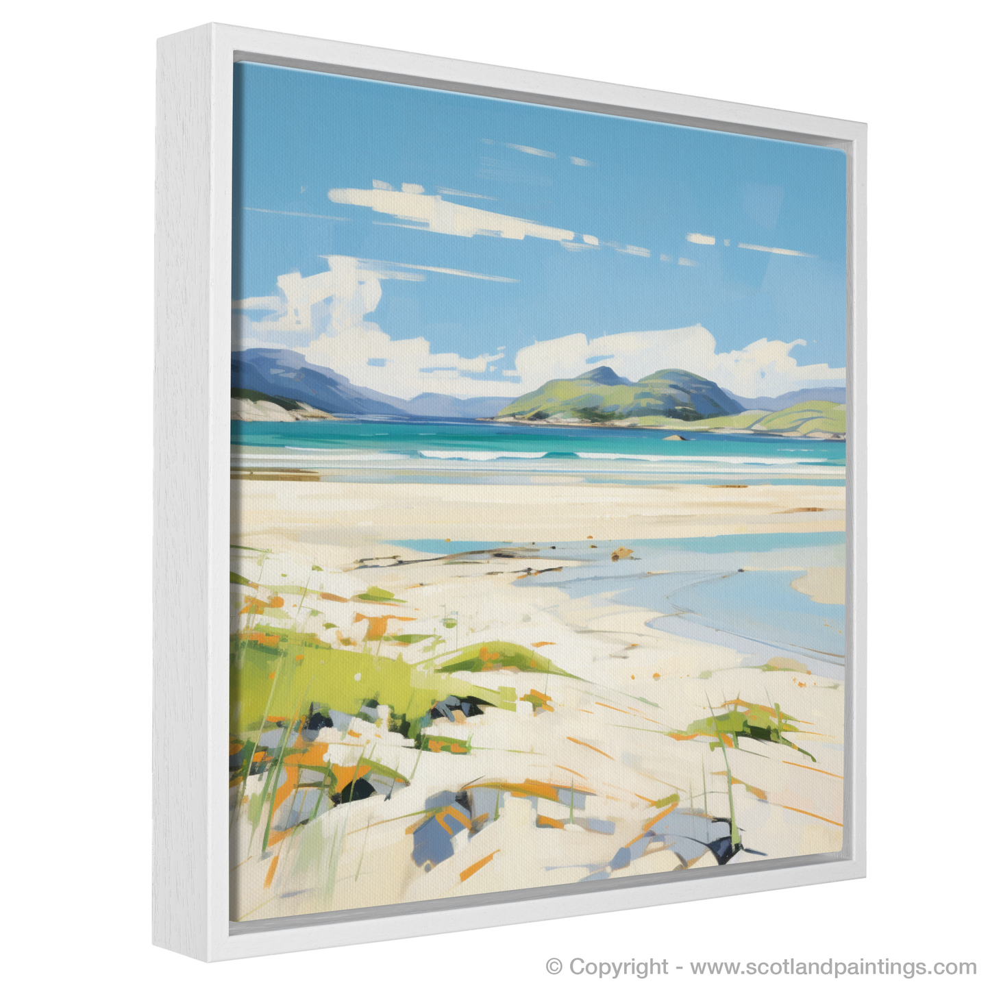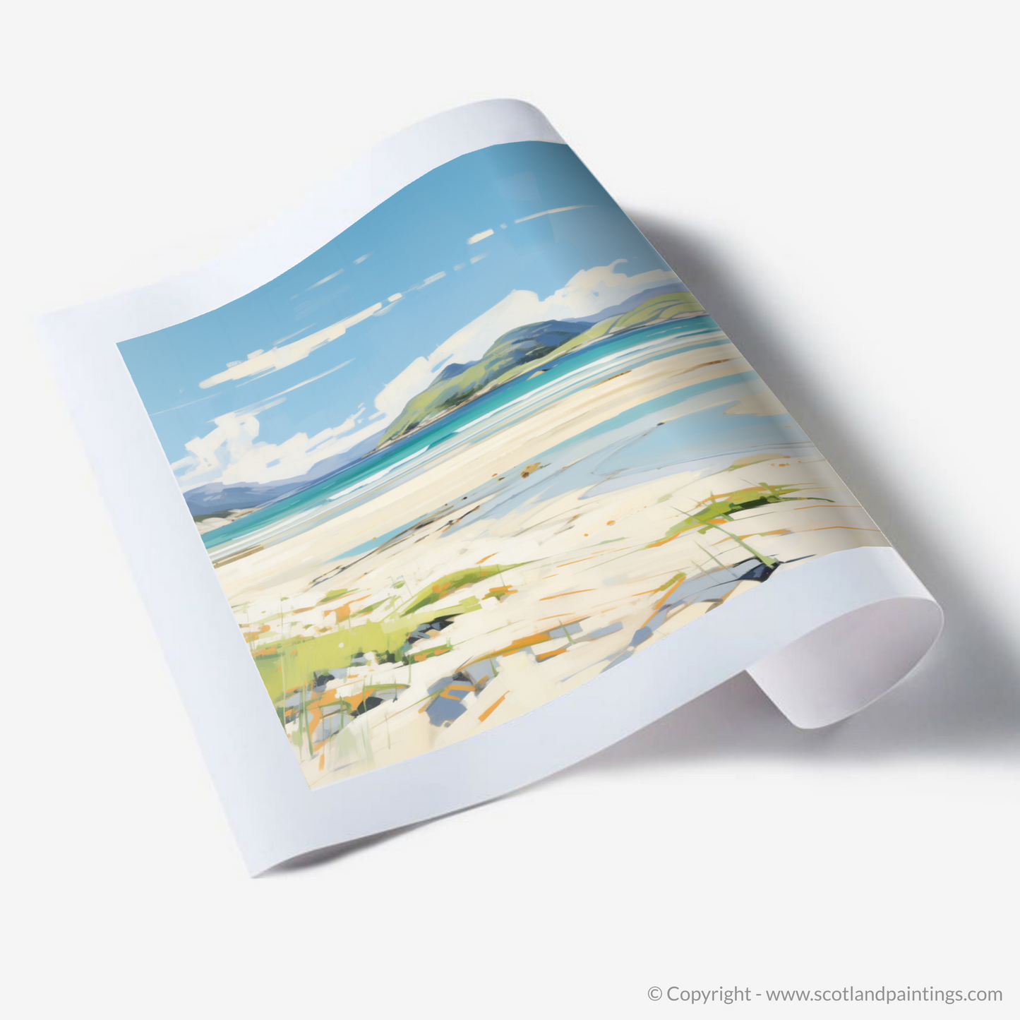This abstract expressionist print is a tribute to the untamed spirit of Scotland's shores, an invitation to let one's imagination roam through the raw beauty of Luskentyre Beach bathed in the unique light of a Scottish summer day.