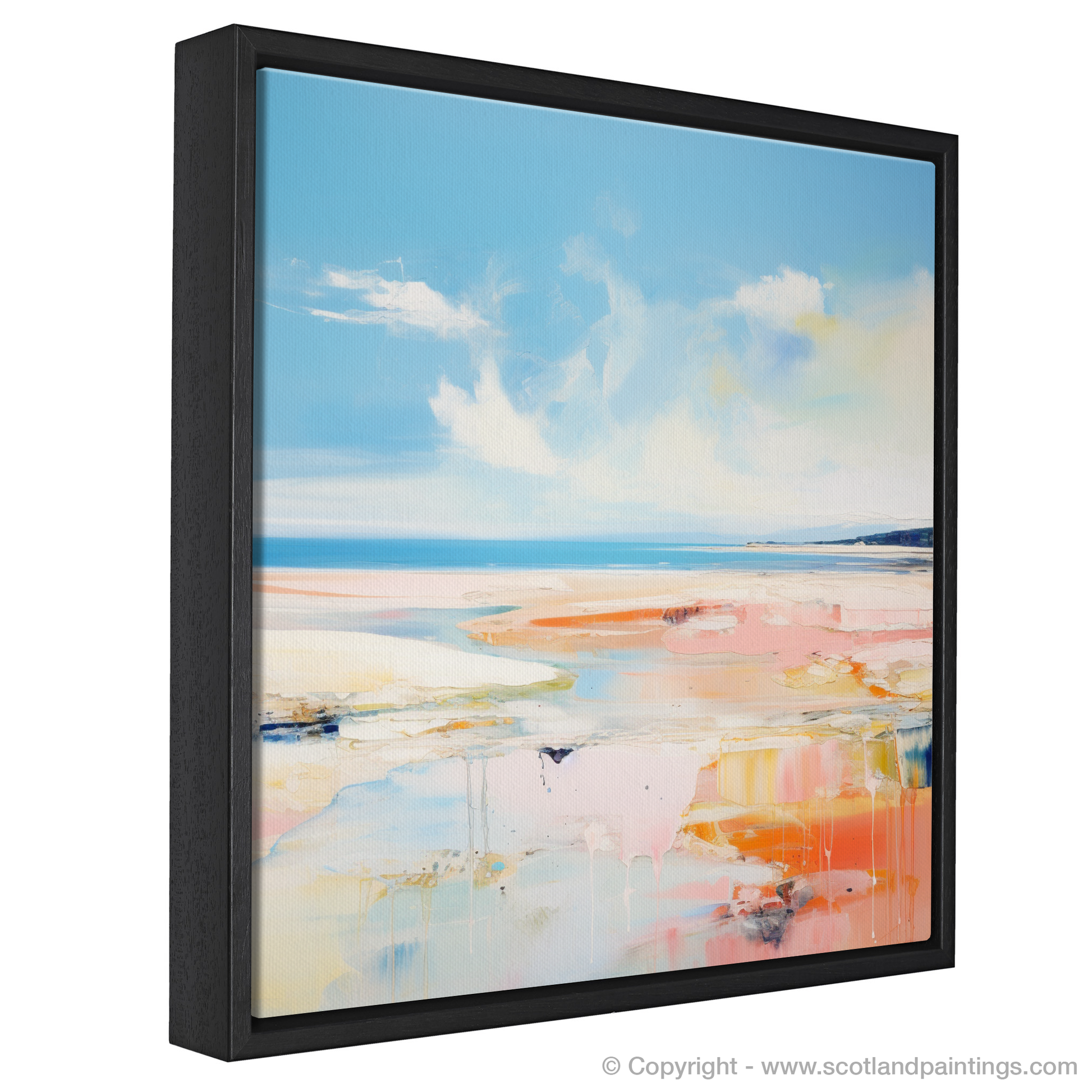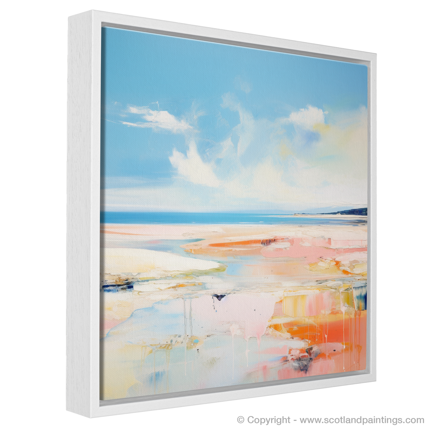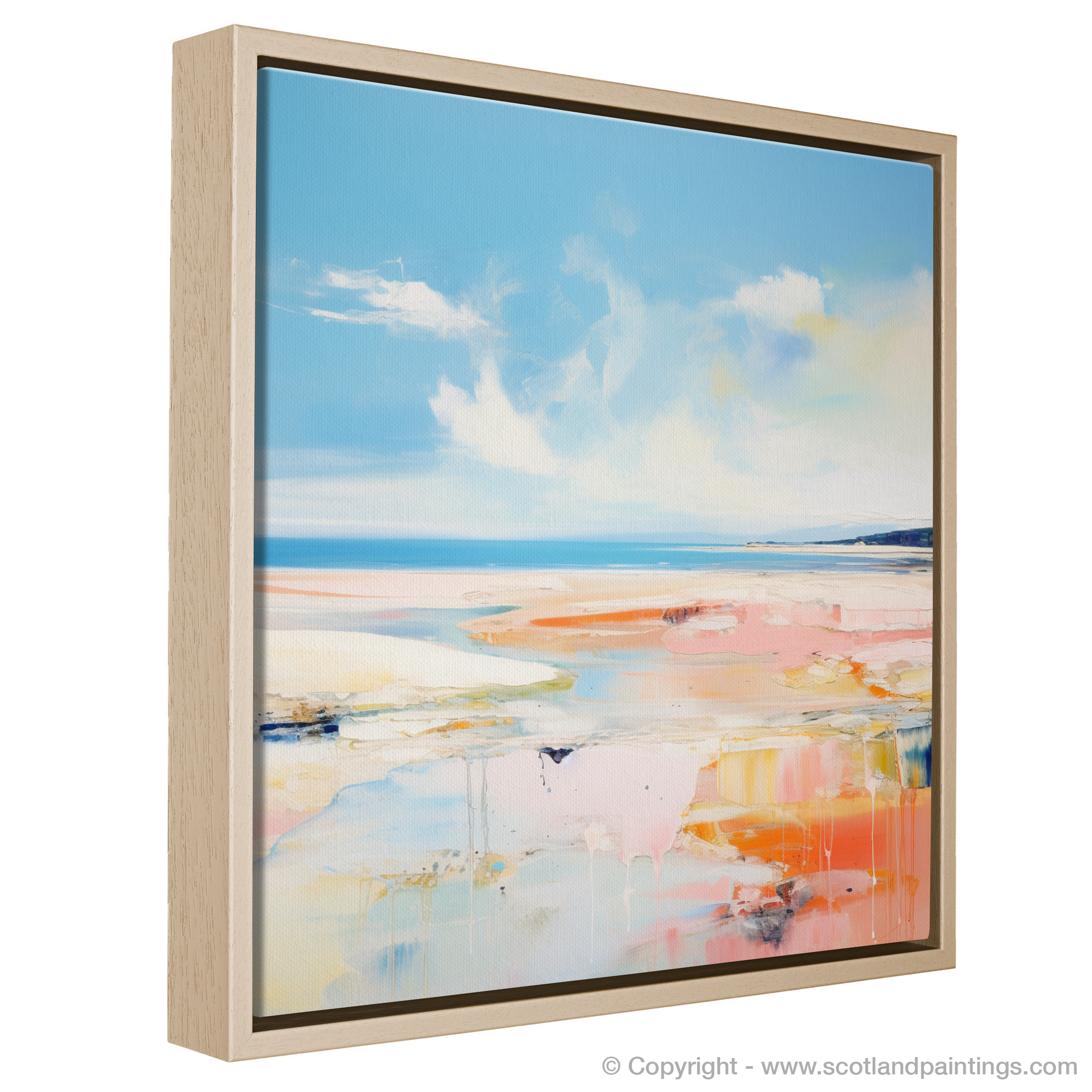 Capturing the essence of Nairn Beach during a Scottish summer, this abstract print offers a vibrant and refreshing take on the traditional seaside landscape. Vivid hues of tangerine, rose, and cerulean intersect with gentle cream and blushing peach tones, creating a dynamic visual experience that stimulates and soothes in equal measure.