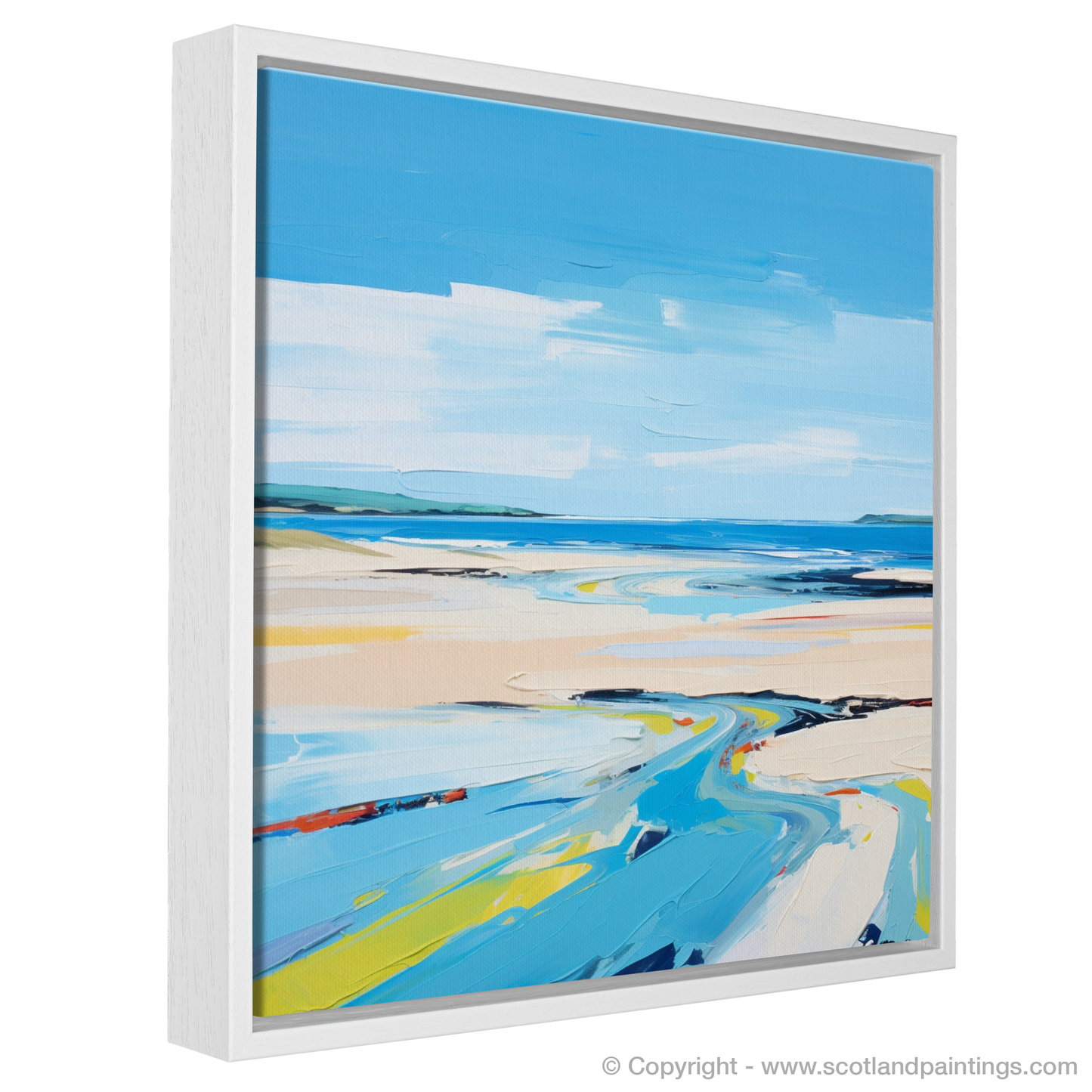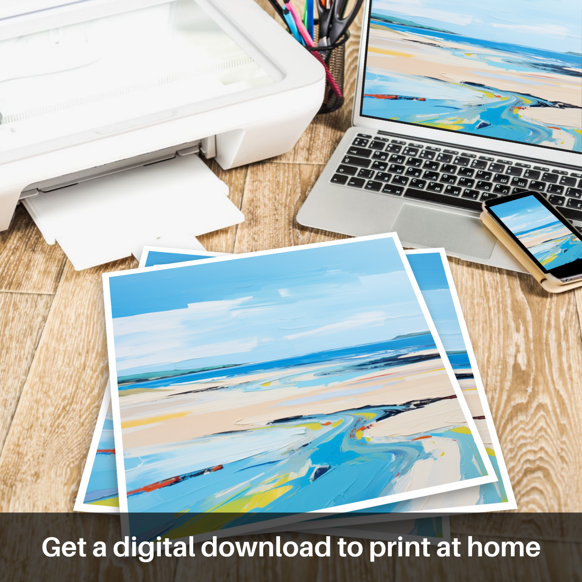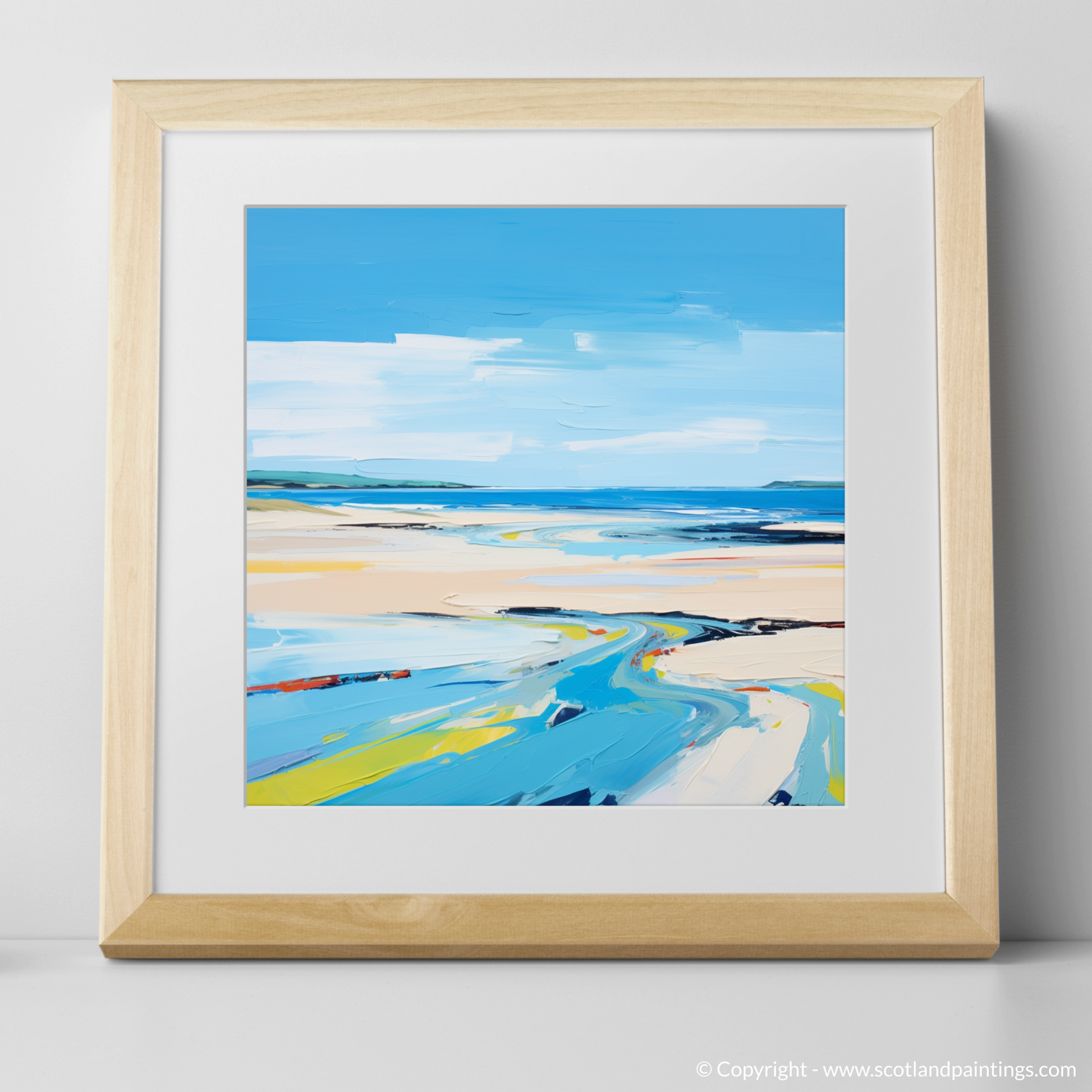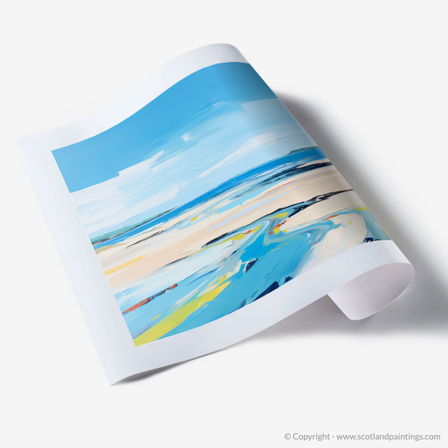 Capture the essence of a Scottish summer with this abstract interpretation of St Cyrus Beach, Aberdeenshire. This captivating print encapsulates the vibrant energy of the coast during the warmer months through a dynamic array of shapes and colours.