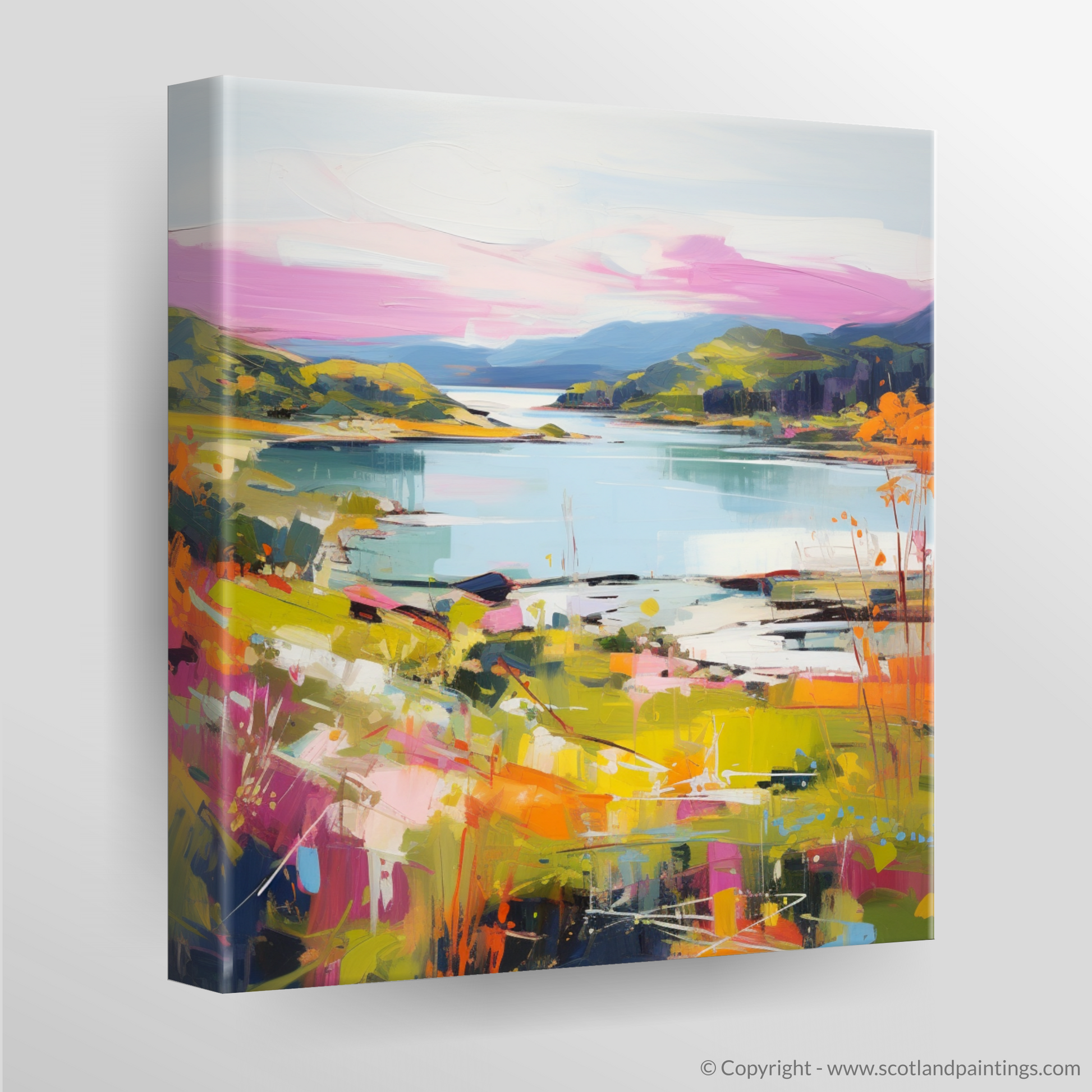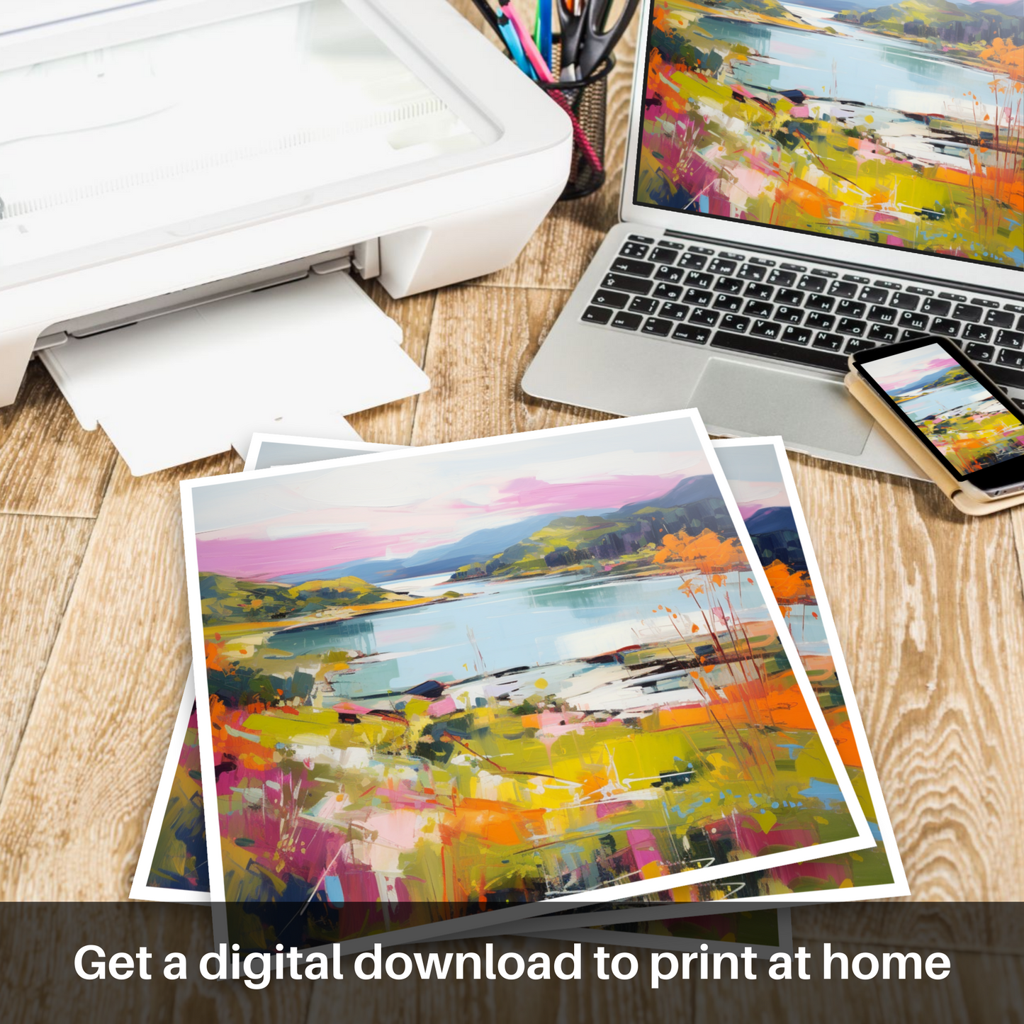 The print invites viewers to a visual feast, an interpretation that doesn't just convey the landscape but also the essence and atmosphere of Loch Morar. It stands as a celebration of Scottish natural beauty, promising to add a dynamic burst of life and colour to any space it adorns.