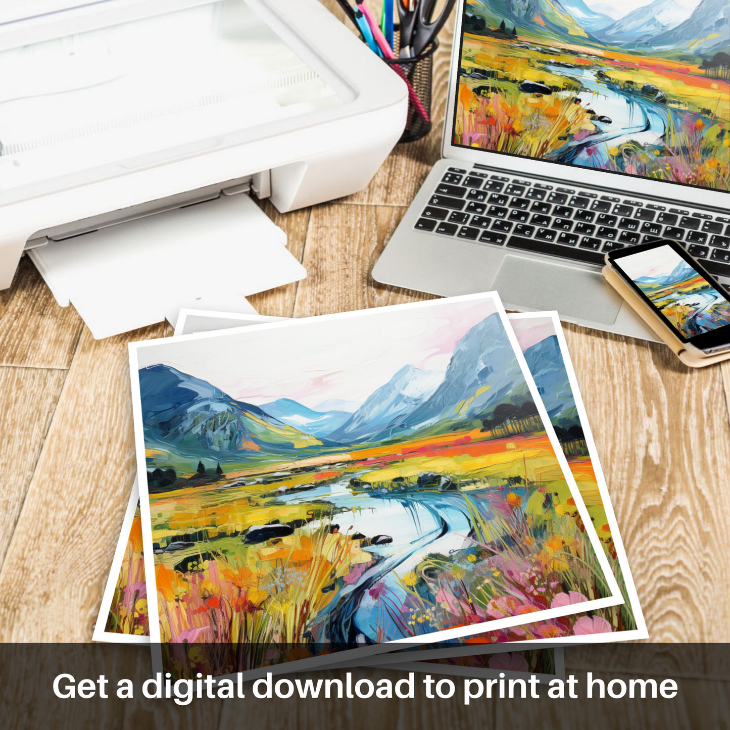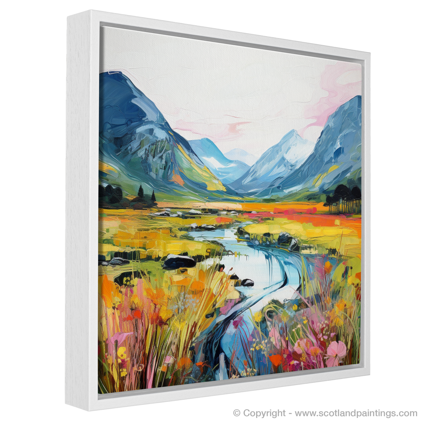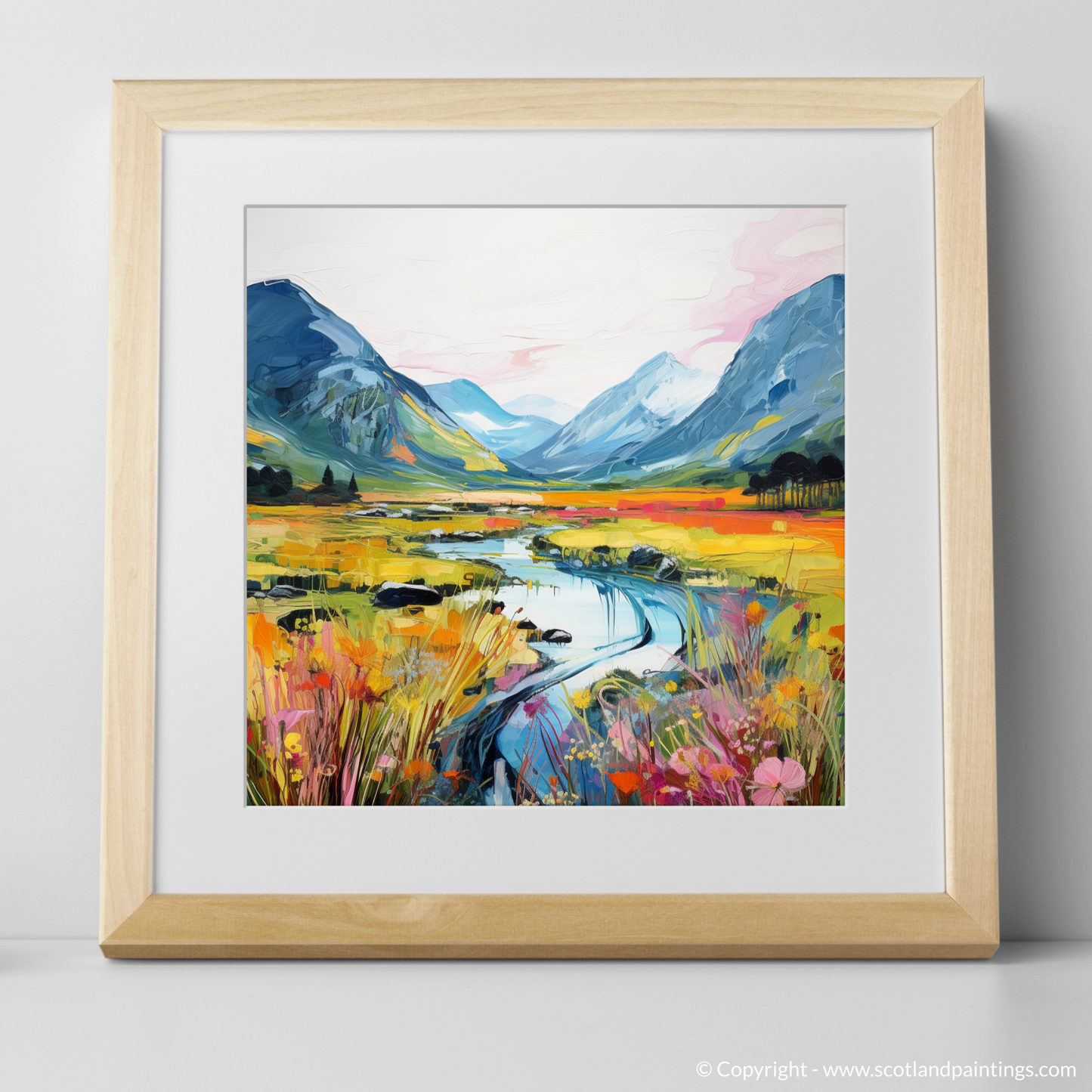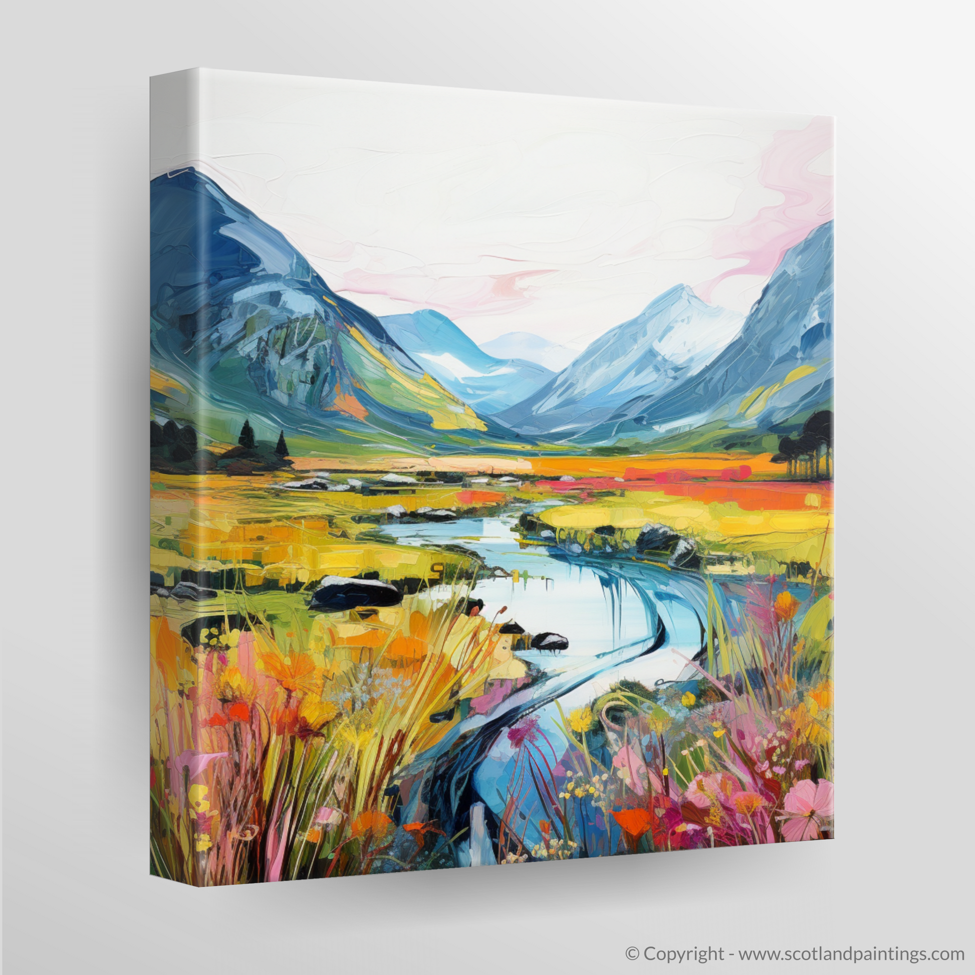 This print is an ode to the untamed grandeur of Scotland's natural landscape, rendered with a passionate fervour that would breathe life and warmth into any space it occupies. It stands as a bold statement piece for admirers of contemporary art and the timeless allure of Scotland's enchanting scenery.