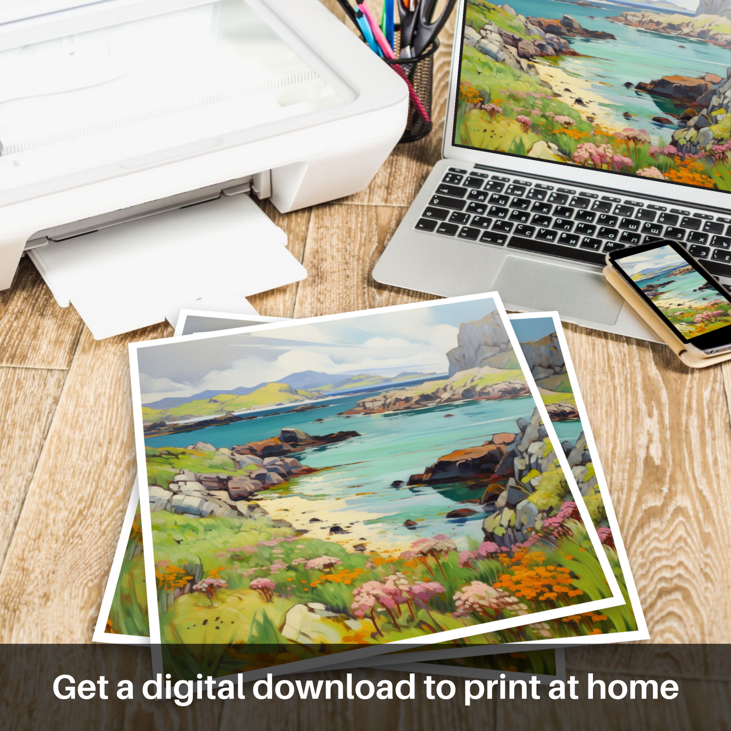 Capturing the vibrant essence of the Isle of Mull, this exquisite print celebrates the lush beauty of the Inner Hebrides during the halcyon days of summer. Revel in the vivid hues and dynamic brushstrokes that bring this tranquil Scottish seascape to life, a testament to the Fauvist style's emphasis on colour, emotion, and untamed expression.