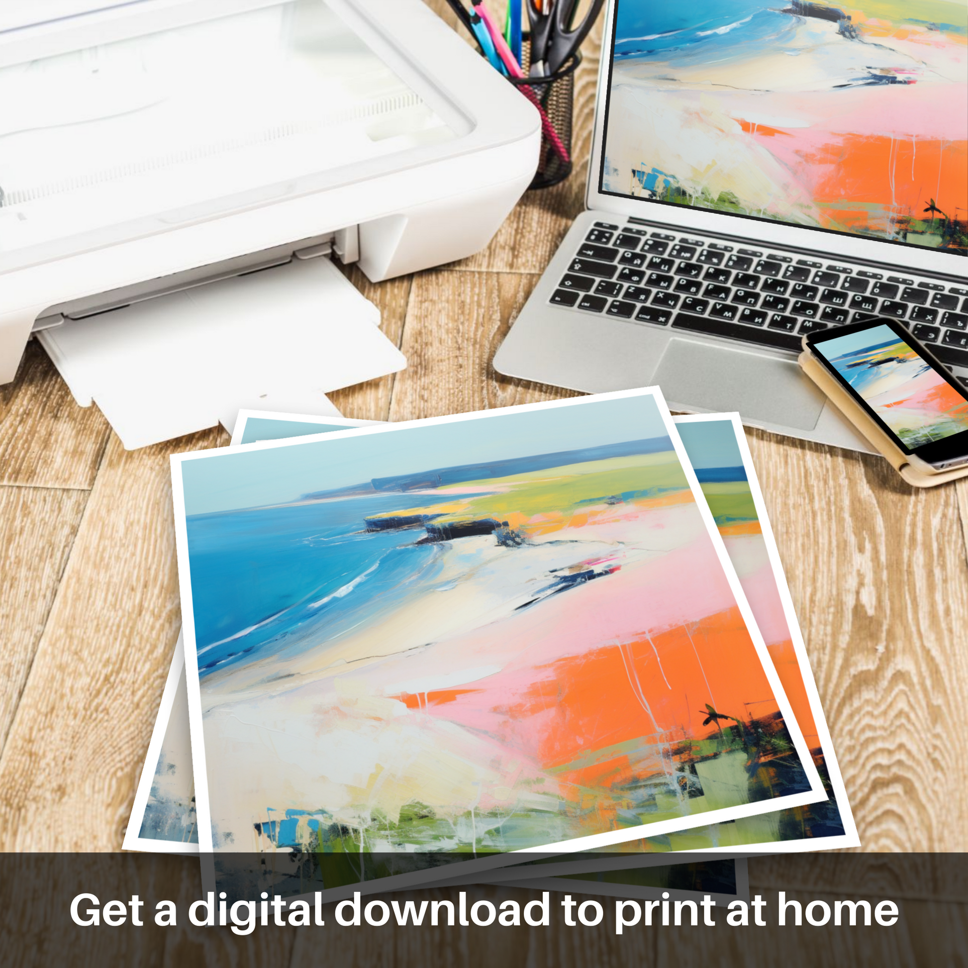 Invoking the spirit of Scotland's summertime beauty, this print is a perfect addition for collectors seeking a piece that balances abstraction with the subtlest whispers of familiar landscapes. It's a vibrant homage to the unique charm of the Scottish coastline, offering an escape into a world where colour and form collide in the most enchanting of ways.