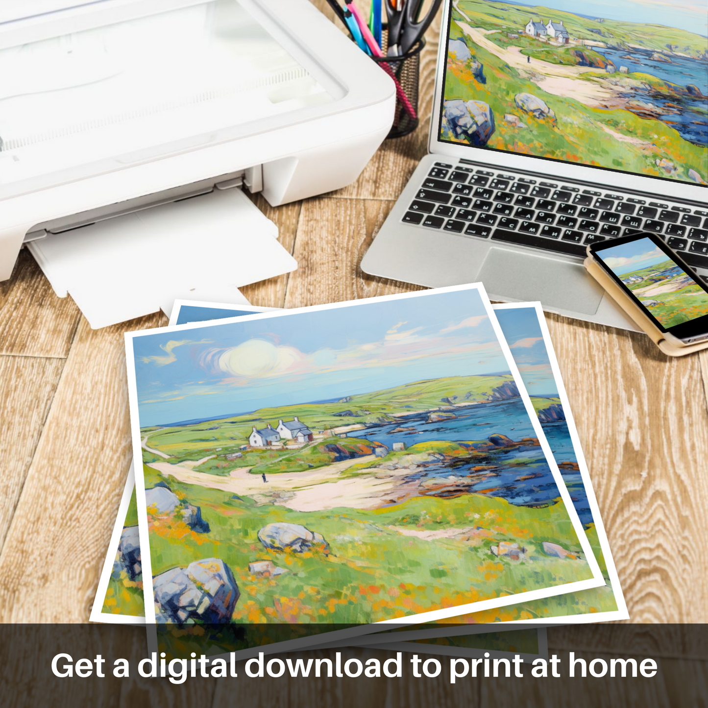 Painting and Art Print of Isle of Lewis, Outer Hebrides in summer entitled "Summer's Embrace: An Impressionist Journey to Isle of Lewis".
