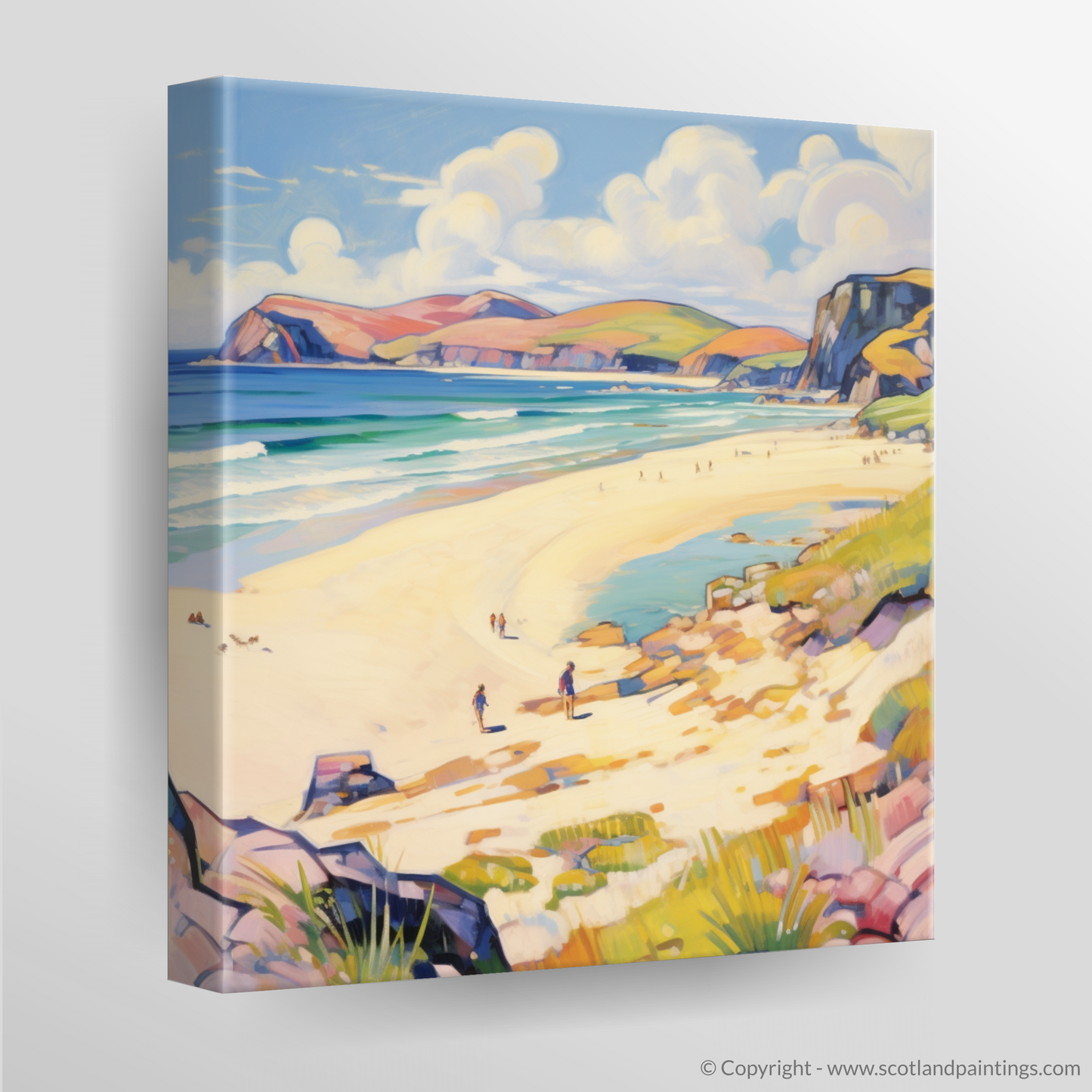 Painting and Art Print of Sandwood Bay, Sutherland in summer entitled "Summer Splendour at Sandwood Bay Fauvist Interpretation".