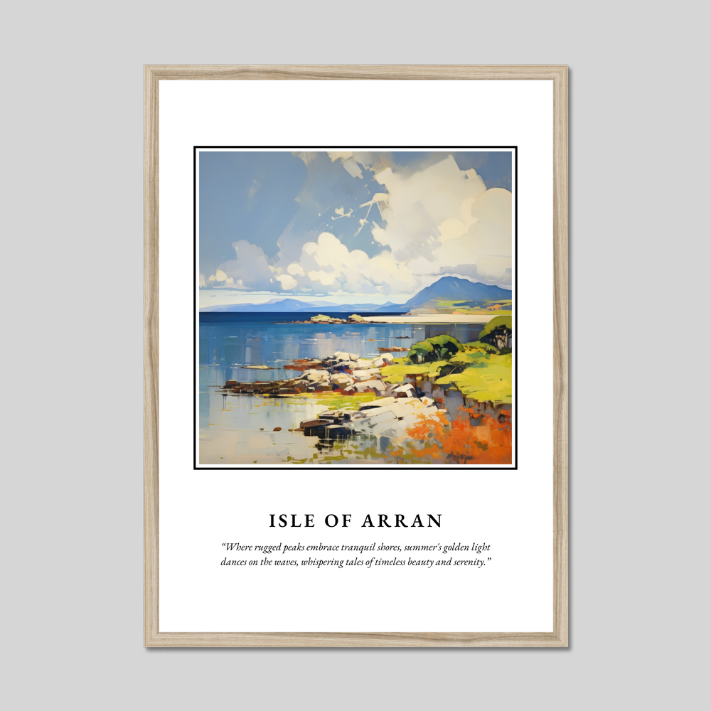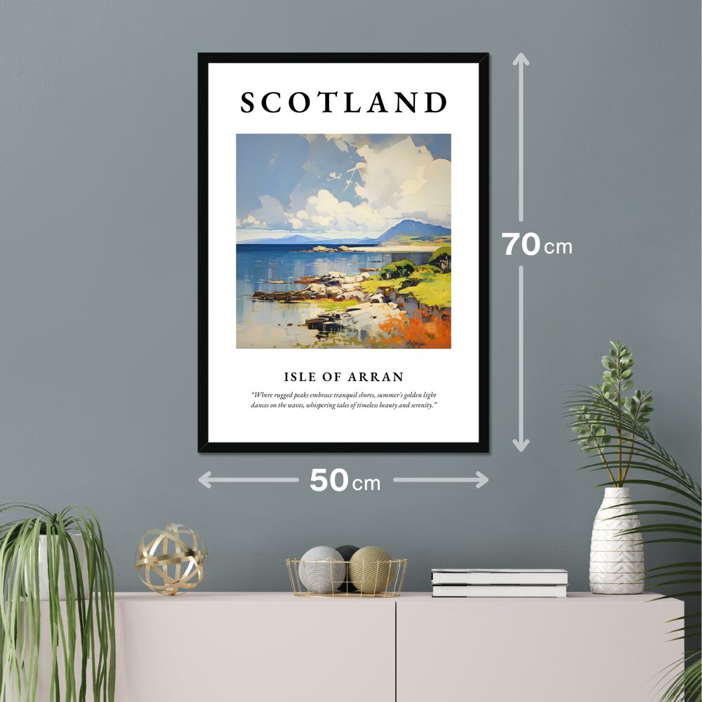 Immerse yourself in the breathtaking allure of the Scottish landscape with our exquisitely framed poster print, a centrepiece that beautifully captures the enchanting spirit of the Isle of Arran. Measuring a generous 50cm x 70cm, this large art piece promises to transform any space by covering a significant wall area with its vibrant depiction, all without the need for a substantial investment.
