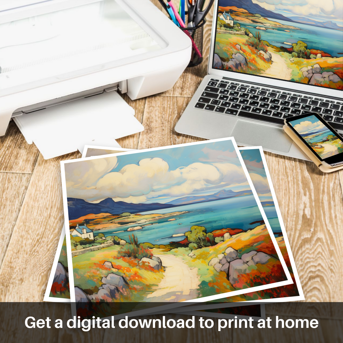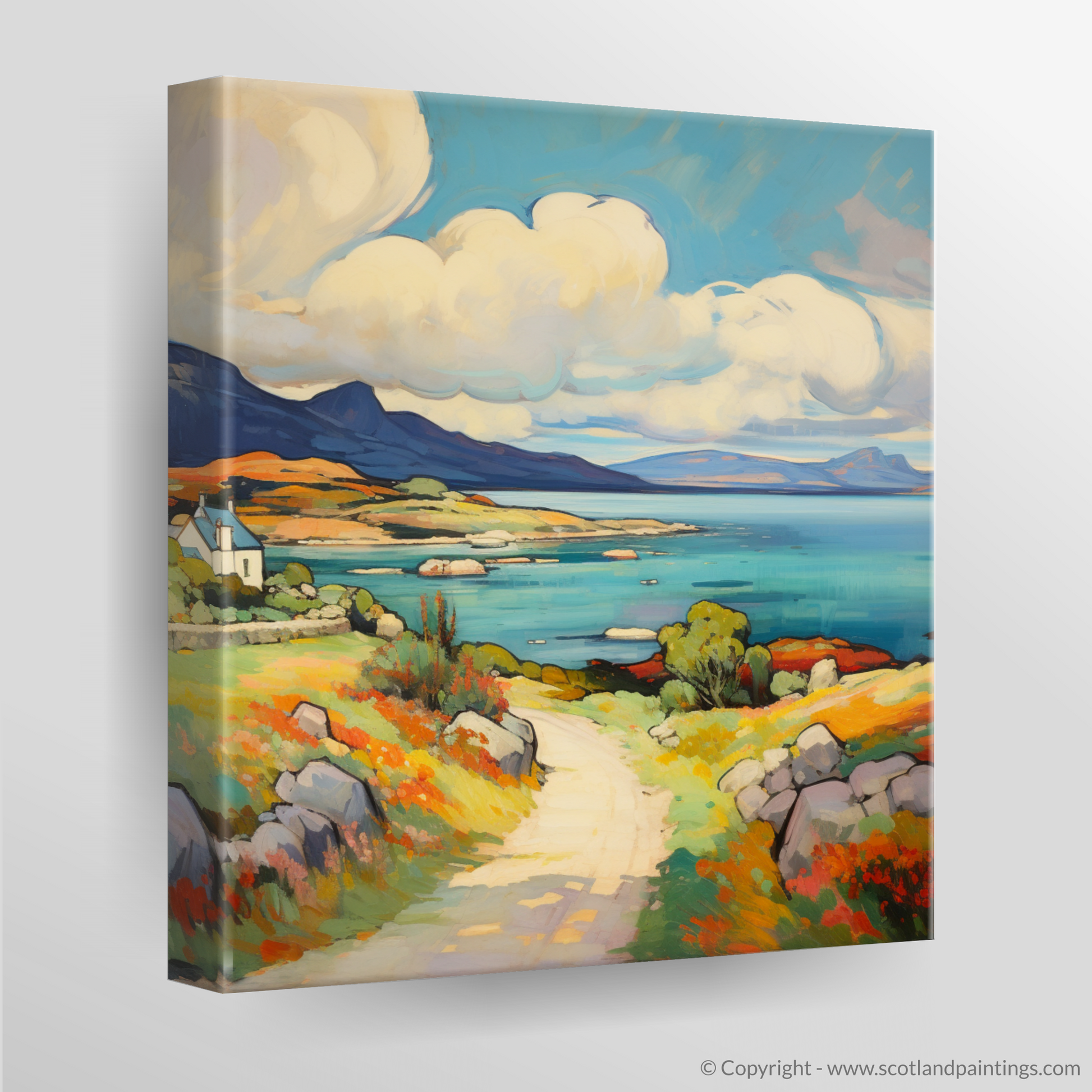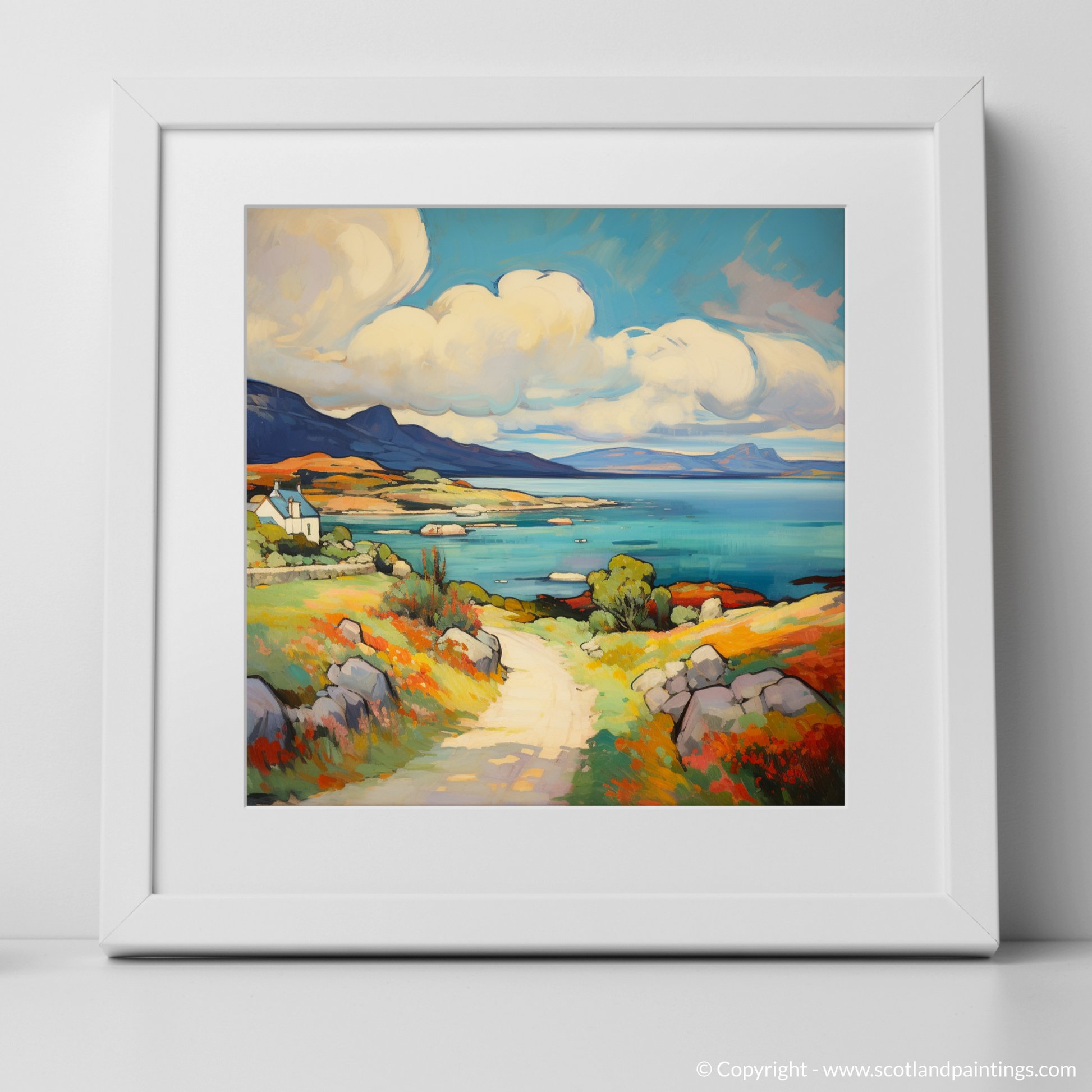 Capturing the vibrant essence of the Isle of Jura, this striking print brings to life the vivacious hues and spirited brushstrokes reminiscent of the Fauvist movement. A dynamic palette of saturated colours takes the viewer on a visual journey through the untamed beauty of the Inner Hebrides during the bountiful summer months.