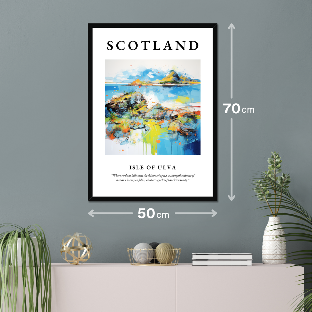 Immerse yourself in the breathtaking allure of Scotland with our stunning framed poster print, featuring a captivating abstract depiction of the Isle of Ulva. Measuring an impressive 50cm x 70cm, this large artwork transforms any wall into a vibrant celebration of nature’s serene splendour. Available in a choice of black, white, or natural wood-effect frames, it effortlessly complements any interior style while bringing a touch of Scottish heritage into your home.