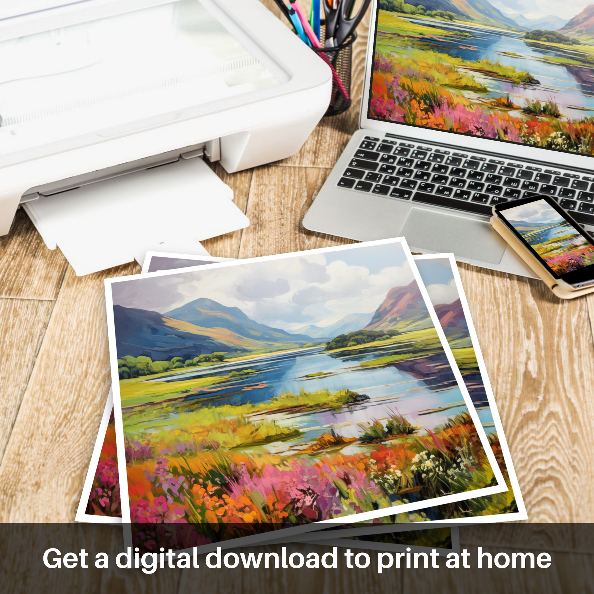 This print from our 'Scotland in Summer' collection invites a moment of reflection and tranquillity into your space, evoking the timeless allure and natural splendour of one of Scotland's most enchanting landscapes. It is a celebration of summer's vitality, the boldness of Fauvism, and the sublime beauty of the Scottish wilds.