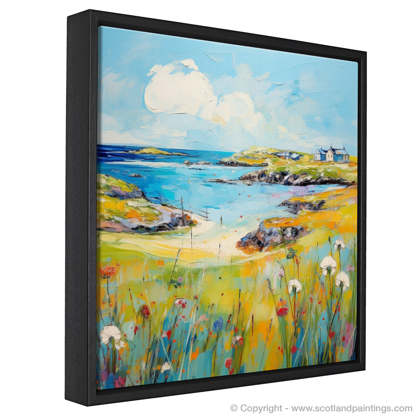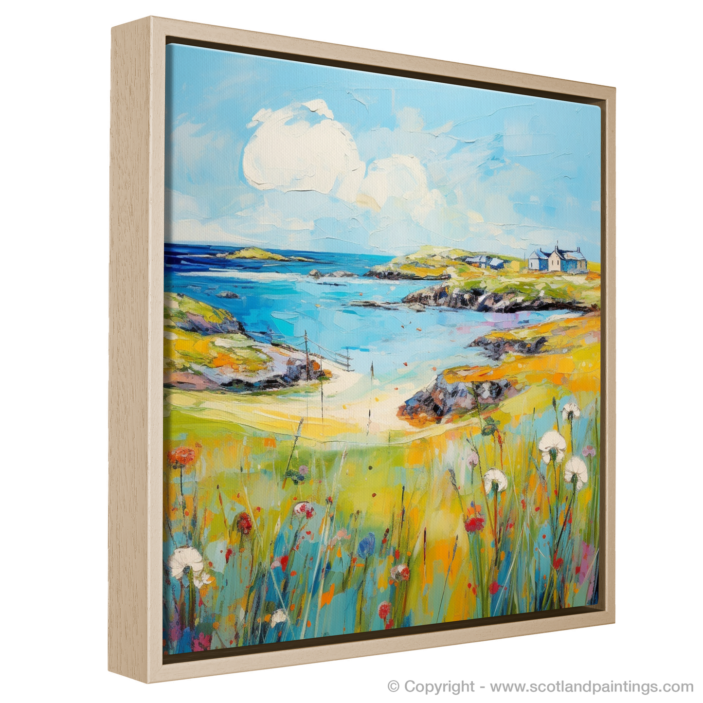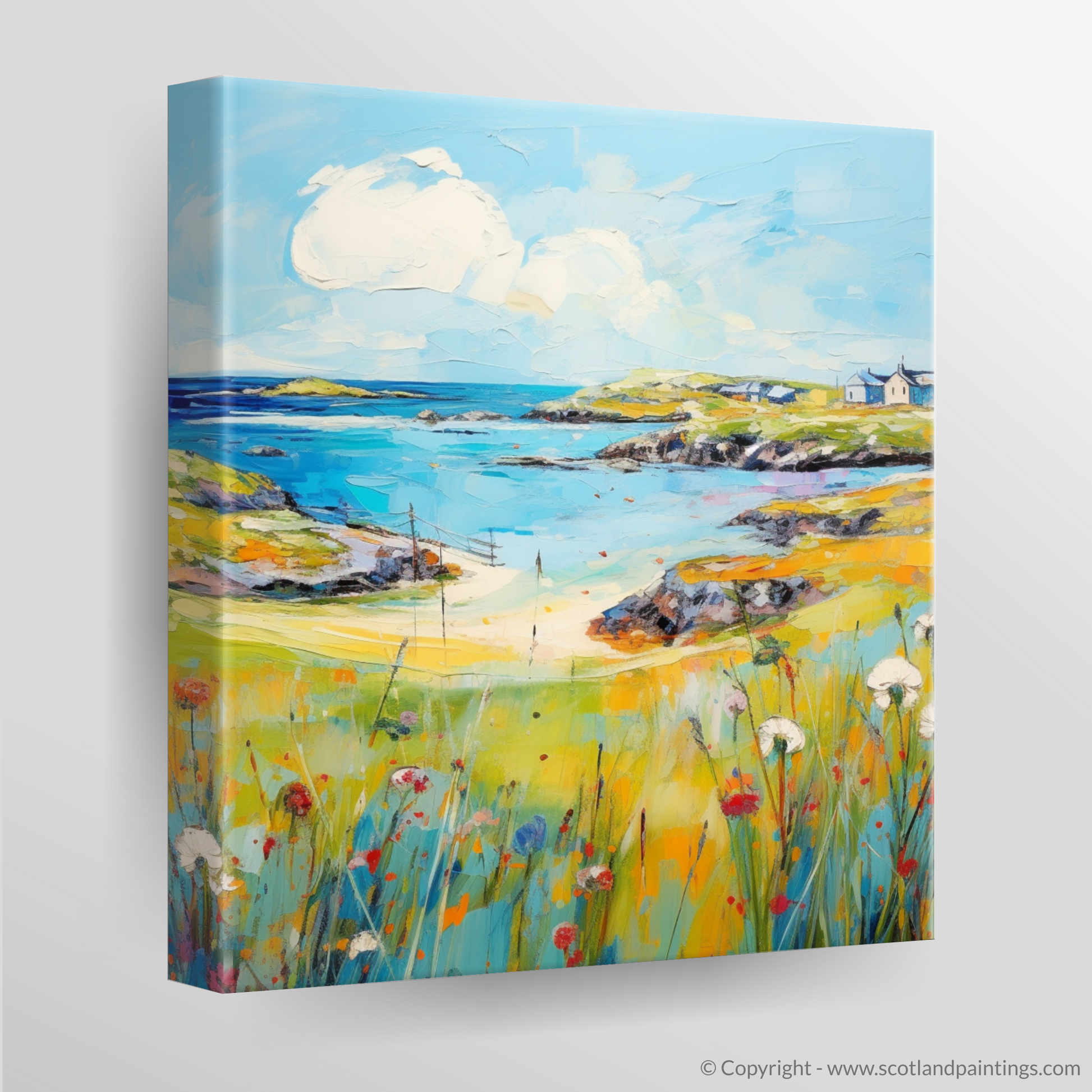 Capturing the ethereal beauty of the Isle of Lewis in the Outer Hebrides, this enchanting print brings the vibrancy of a summer in Scotland to your living space. Exquisite hues of azure and cobalt mirror the clear skies and tranquil waters, creating a serene coastal scene that is both uplifting and calming.