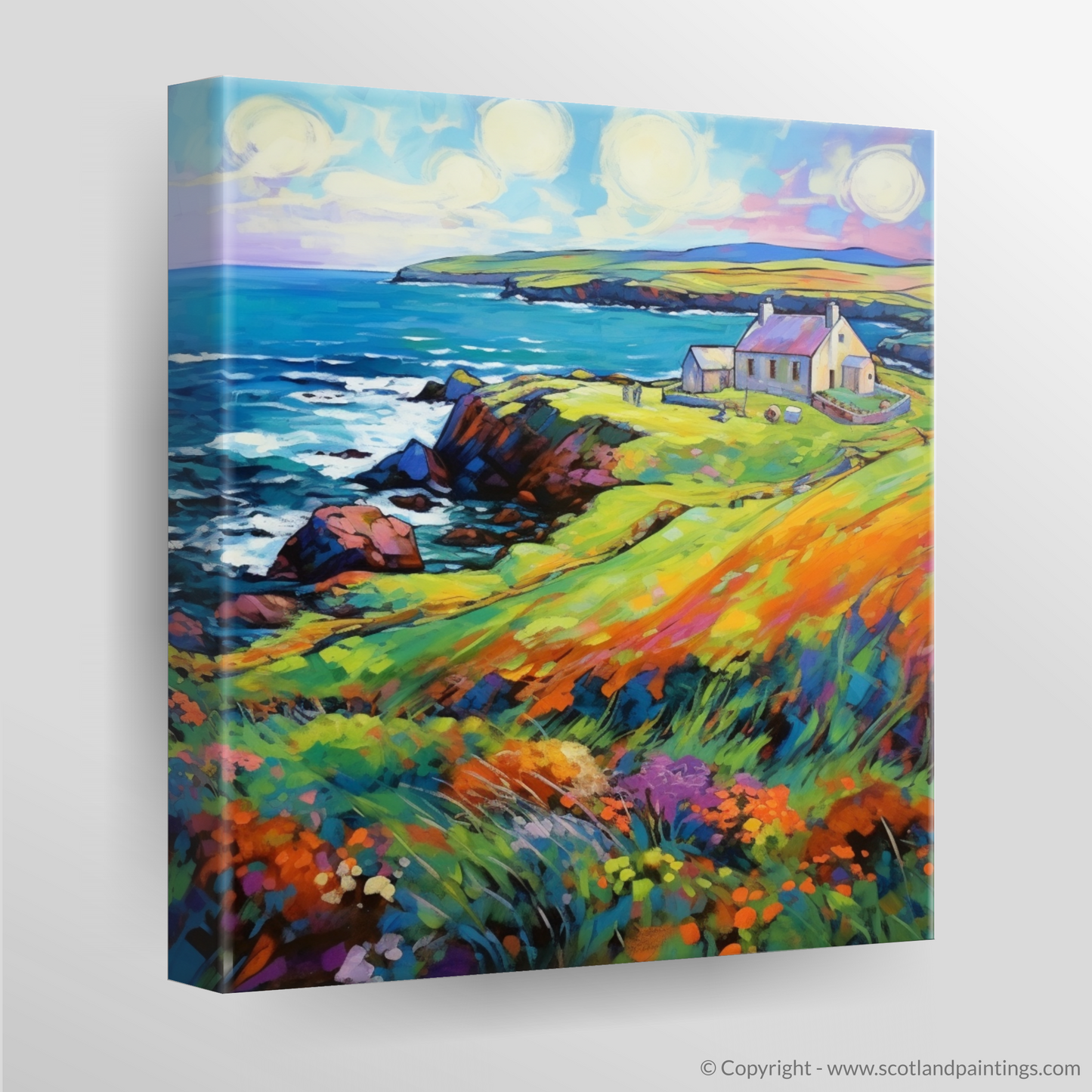 Painting and Art Print of Shetland, North of mainland Scotland in summer entitled "Vibrant Shetland: A Fauvist Ode to Summer".