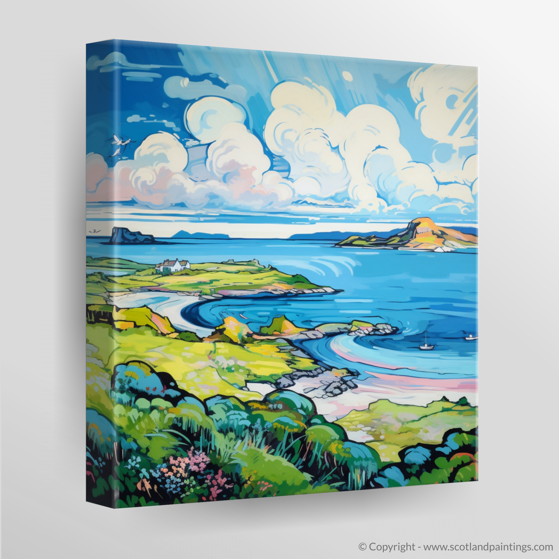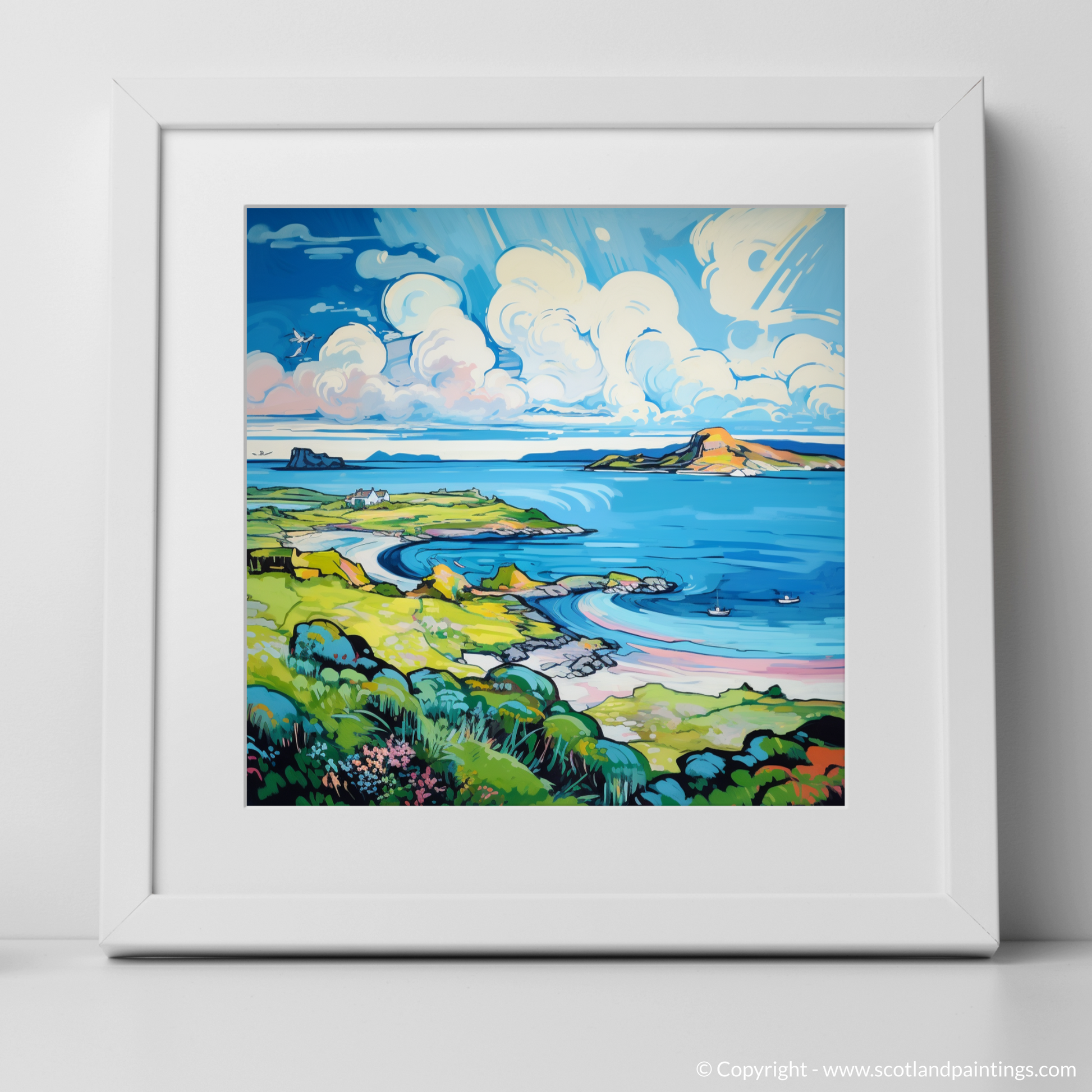Capturing the vibrant essence of the Inner Hebrides during the luscious summer months, this evocative print is a celebration of colour and life. The piece presents a dynamic interpretation of the Isle of Skye's smaller isles with swathes of vivid blues and greens dominating the scene, embodying the Fauvist penchant for strong, expressive hues.
