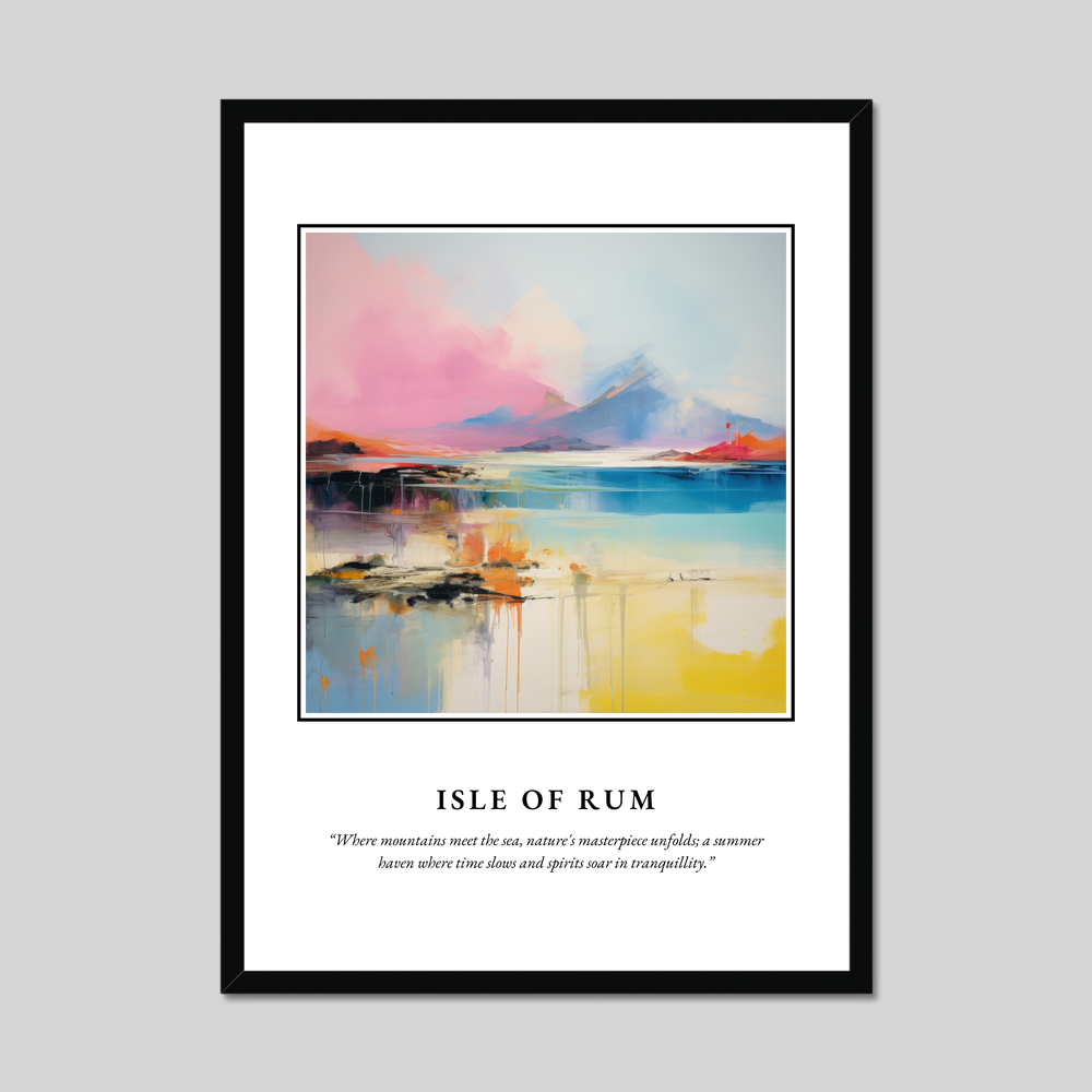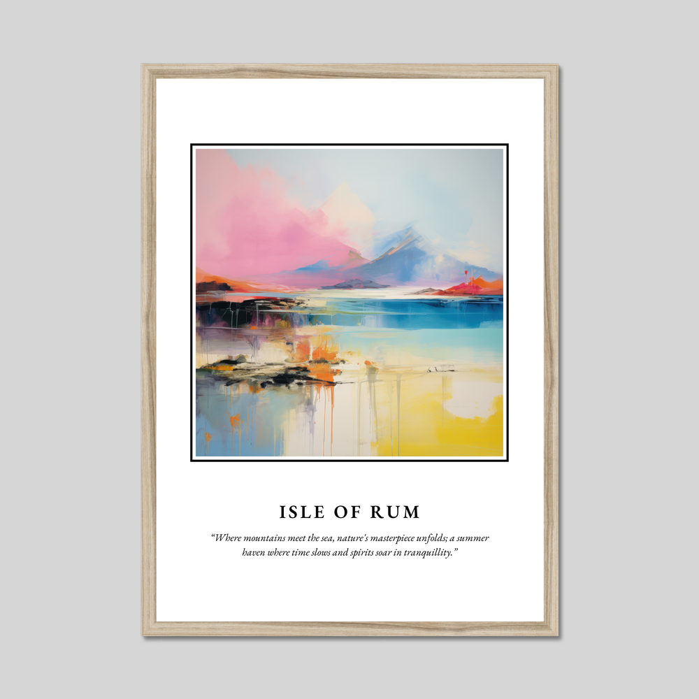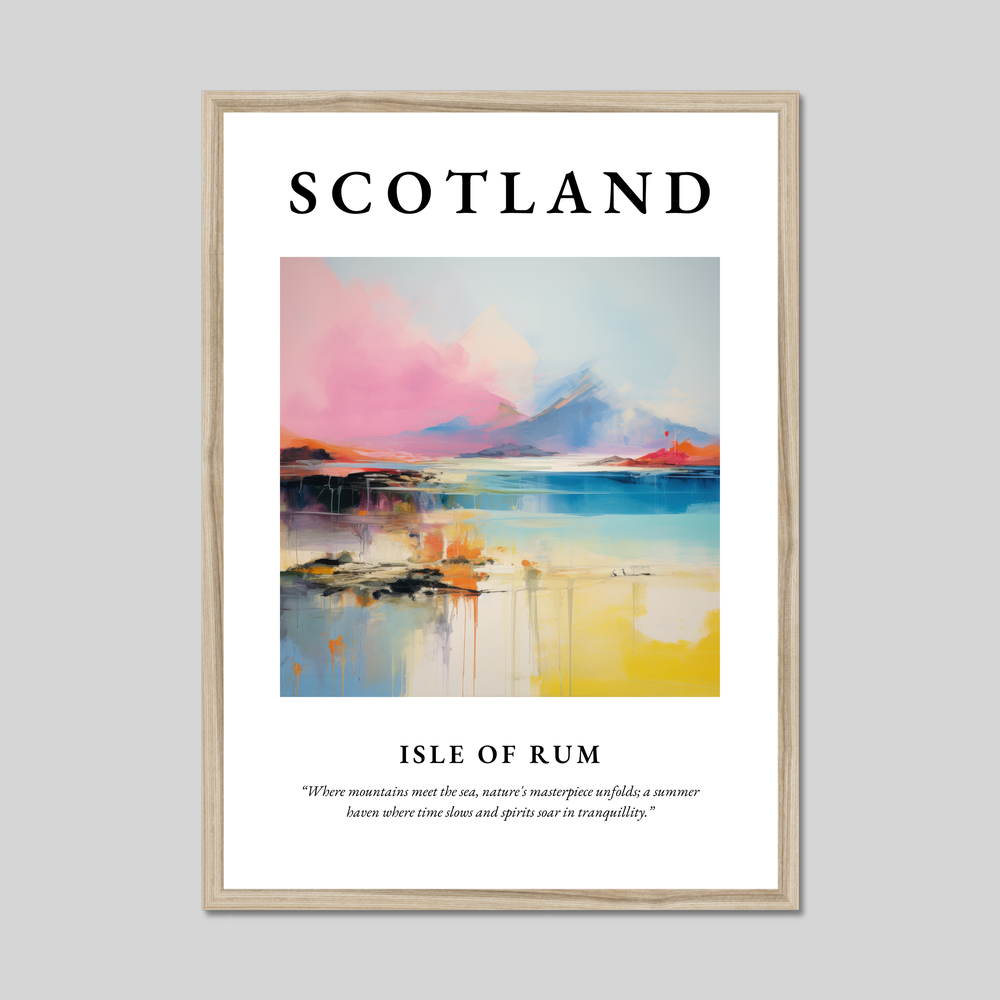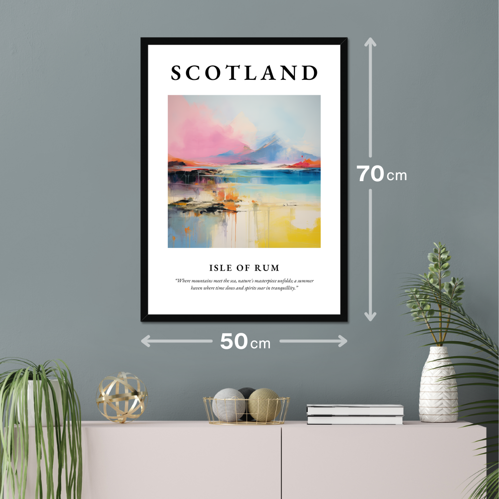 Immerse yourself in the ethereal beauty of Scotland with our captivating framed poster print, a striking centrepiece measuring an impressive 50cm x 70cm. This extraordinary piece from our 'Scotland in Summer' collection brings the enchanting Isle of Rum to your space, capturing the essence and tranquillity of this marvellous location.