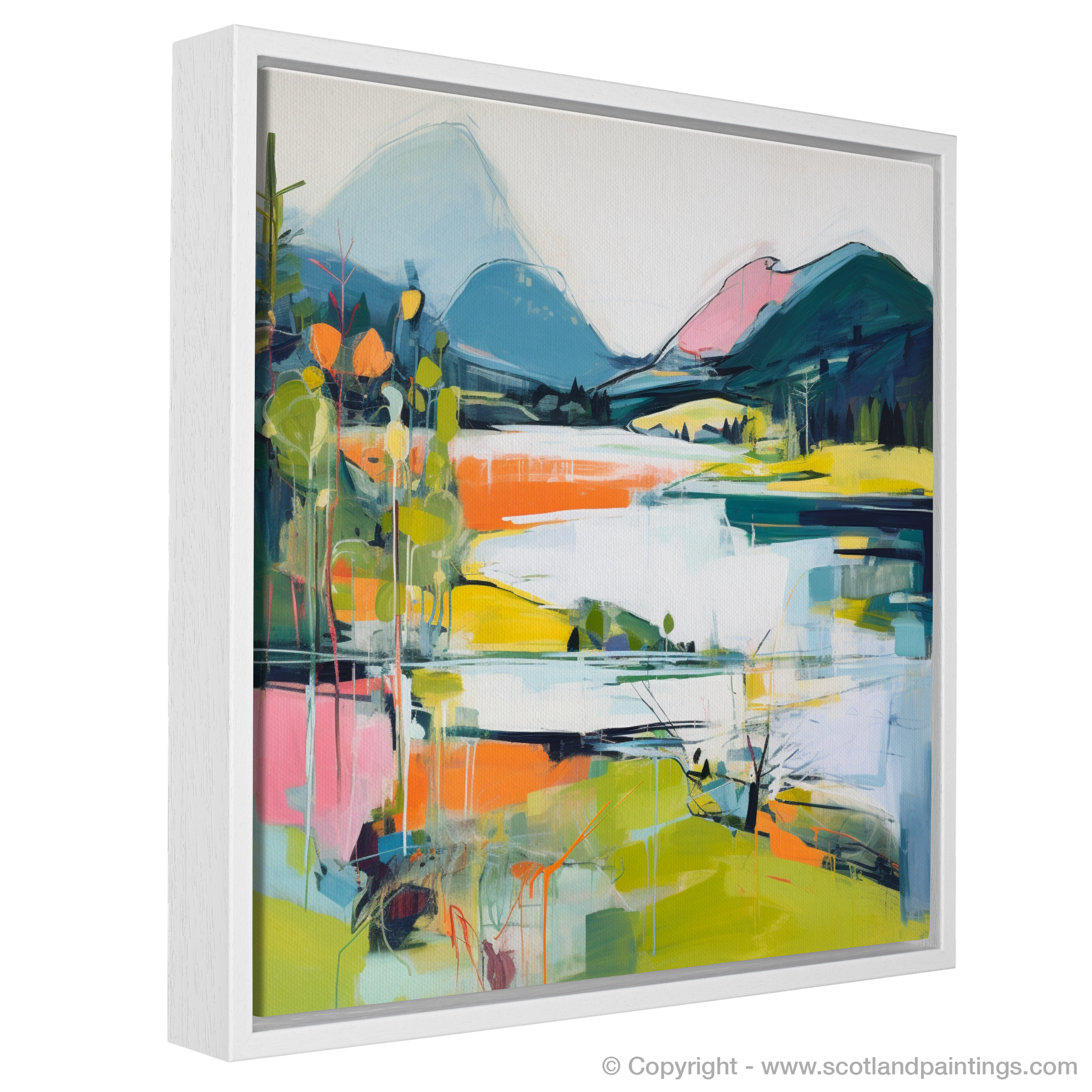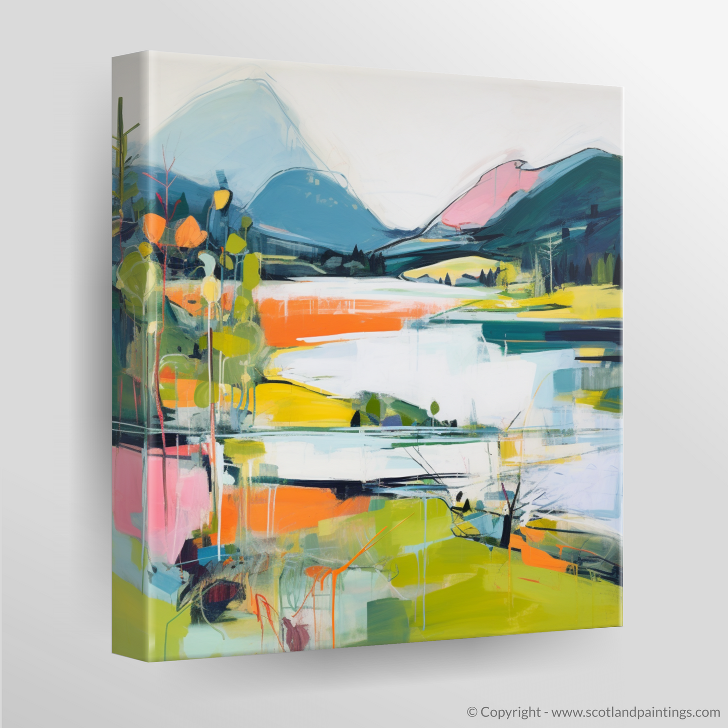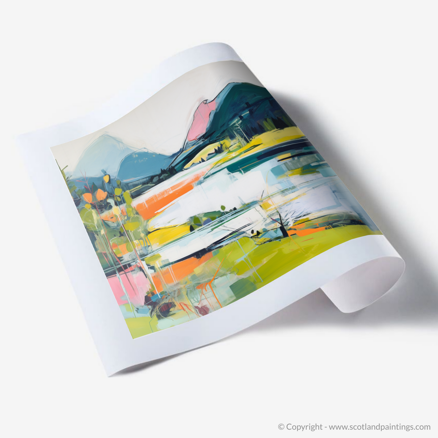 Captivated by the serene beauty of the Scottish Highlands, this vibrant print brings the essence of Loch Lochy's summertime splendour into the heart of your living space. Vivid brushstrokes dance across the canvas, suggesting the movement of gentle breezes over the loch's surface, while a bold palette of orange, pink, and yellow hues reflects the warmth and prolonged daylight of a Highland summer.