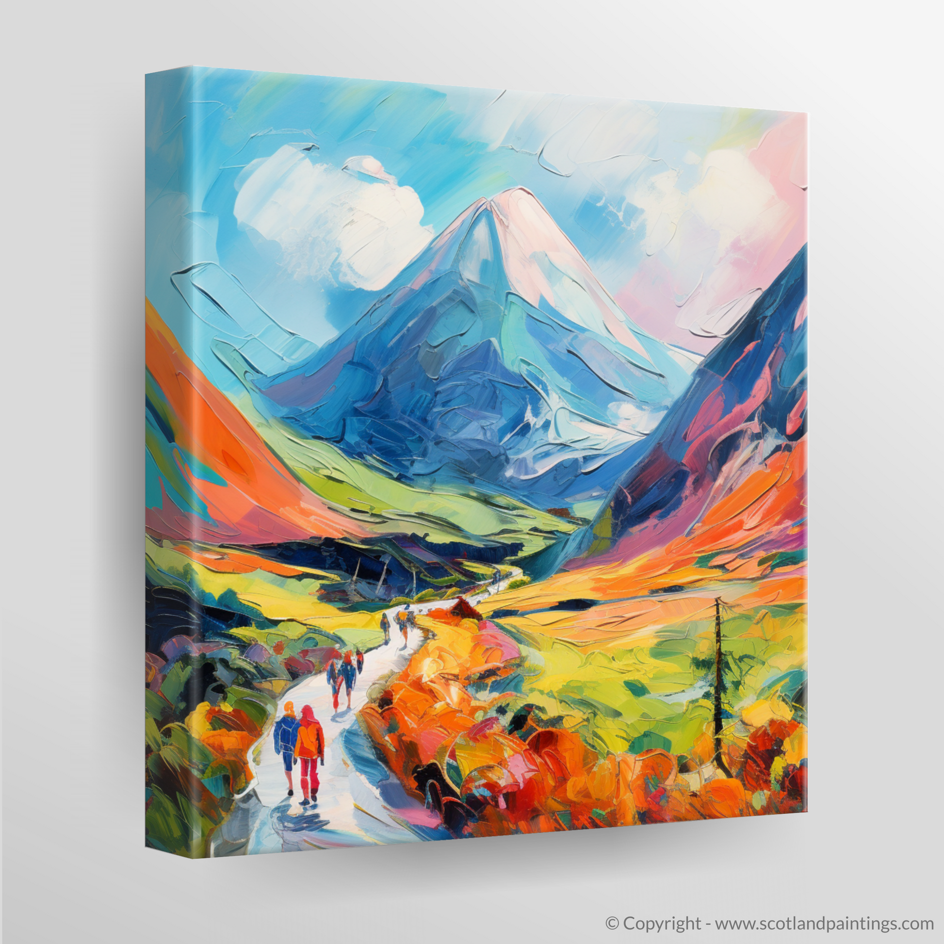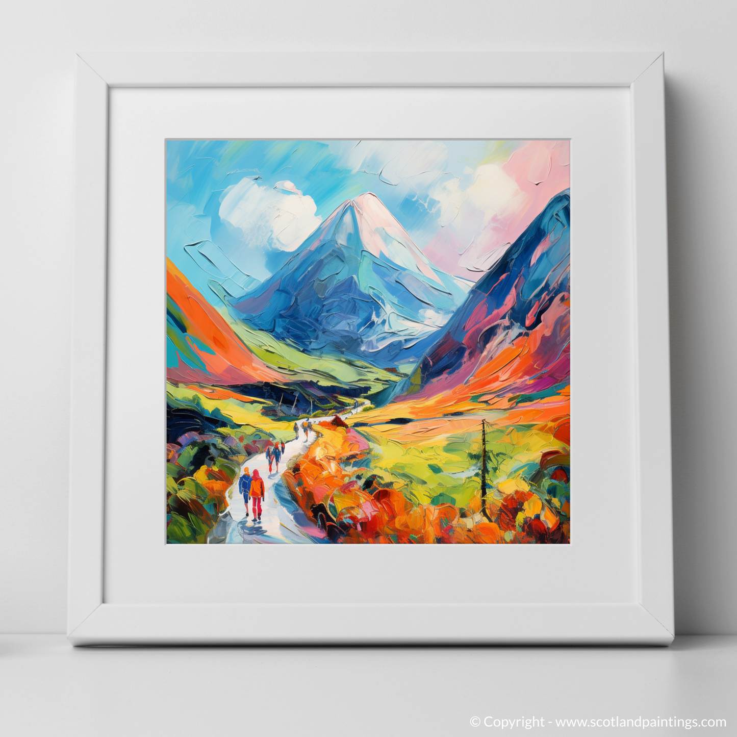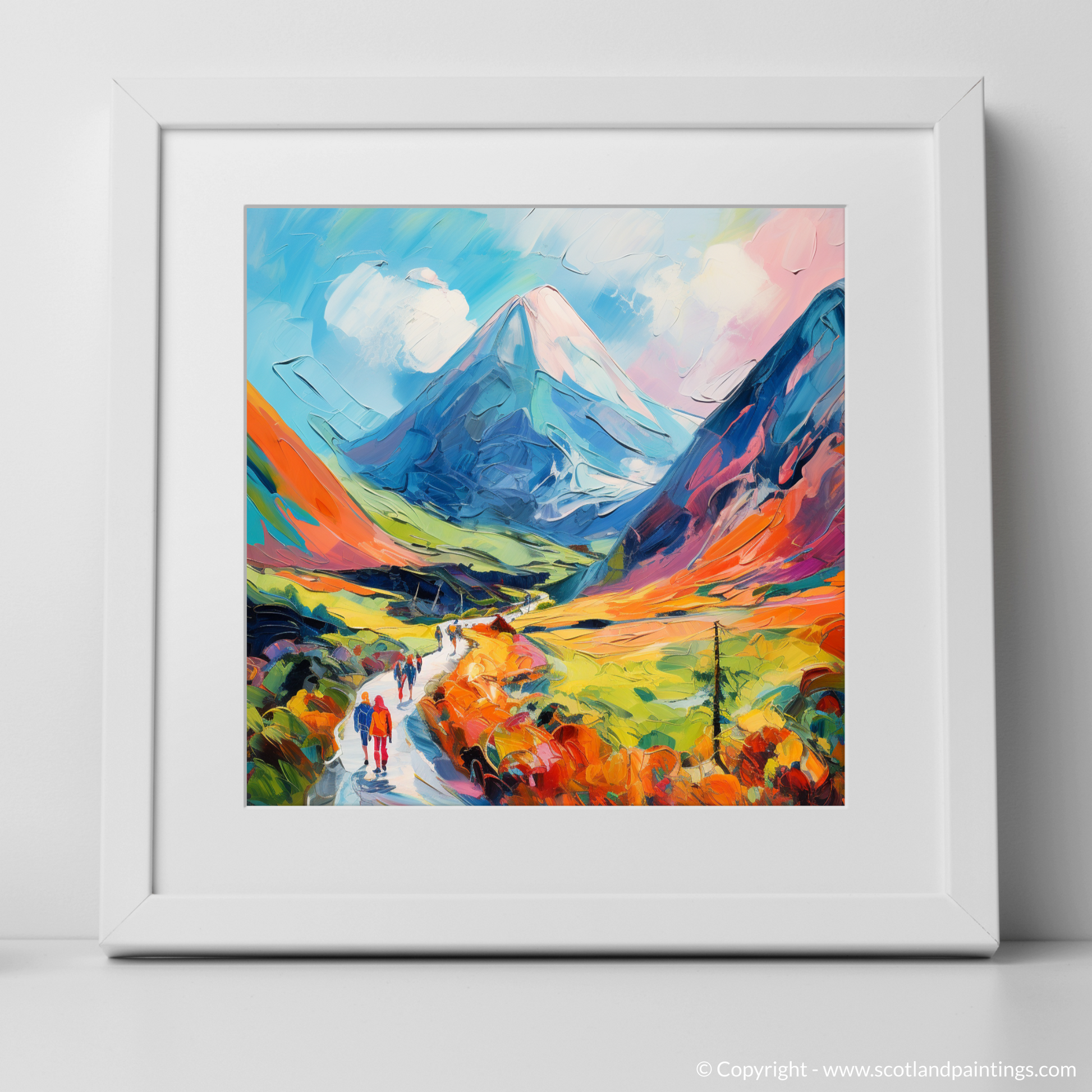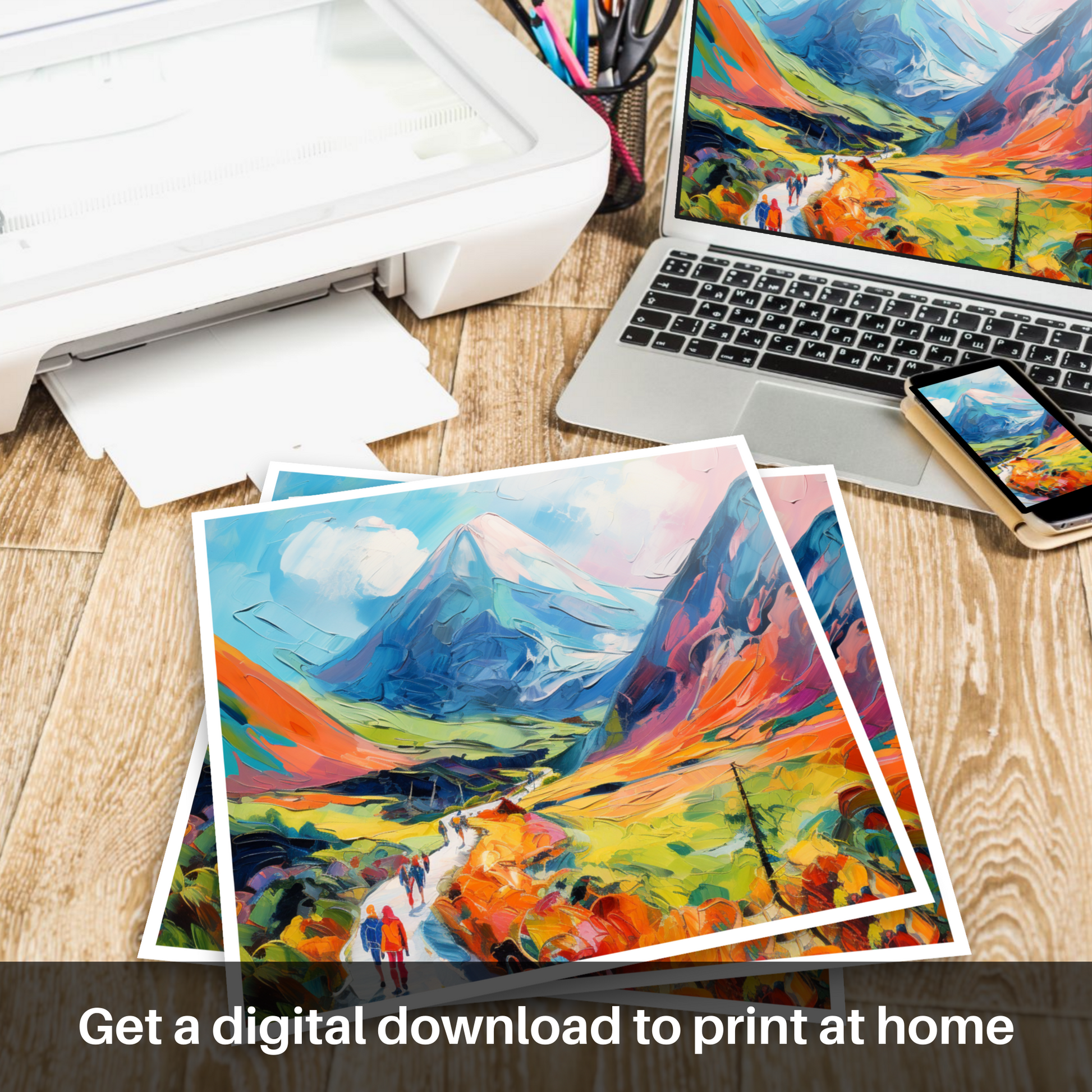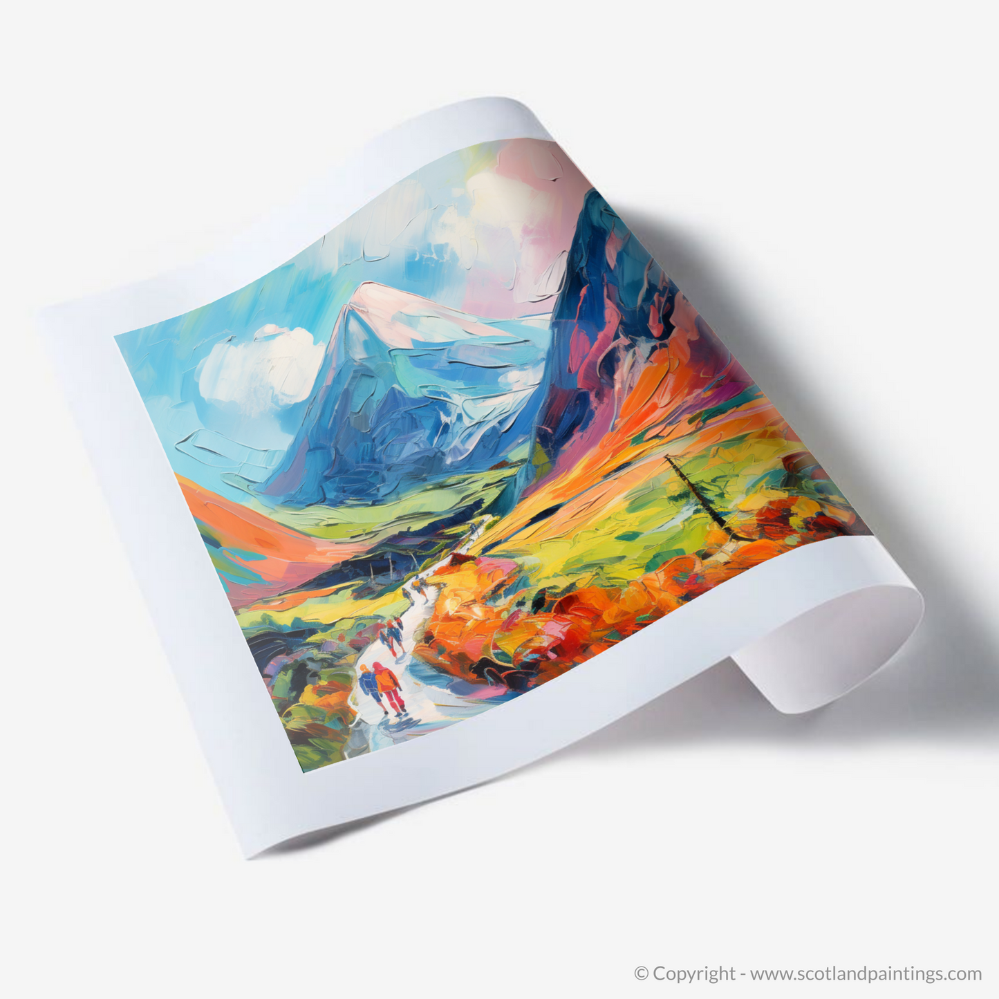This vibrant print captures the essence of a Scottish summer's day, spent exploring the majestic landscape of Glencoe. The scene is alive with bold, expressive strokes and an exuberant palette characteristic of Fauvist influences, emphasizing the emotional resonance of colour over realistic representation.