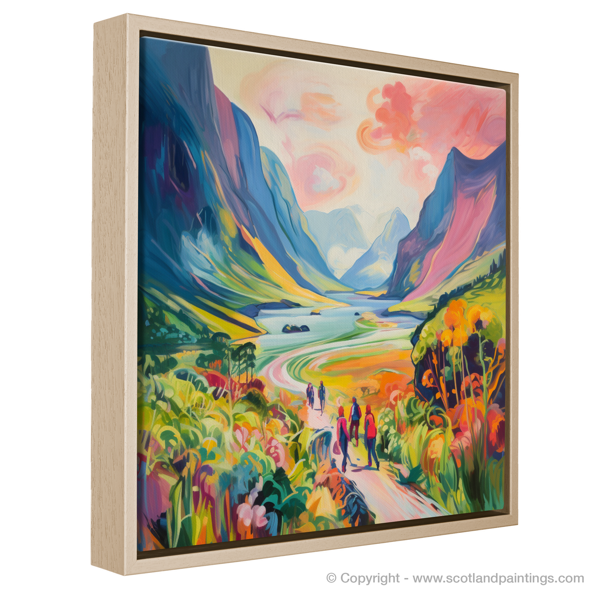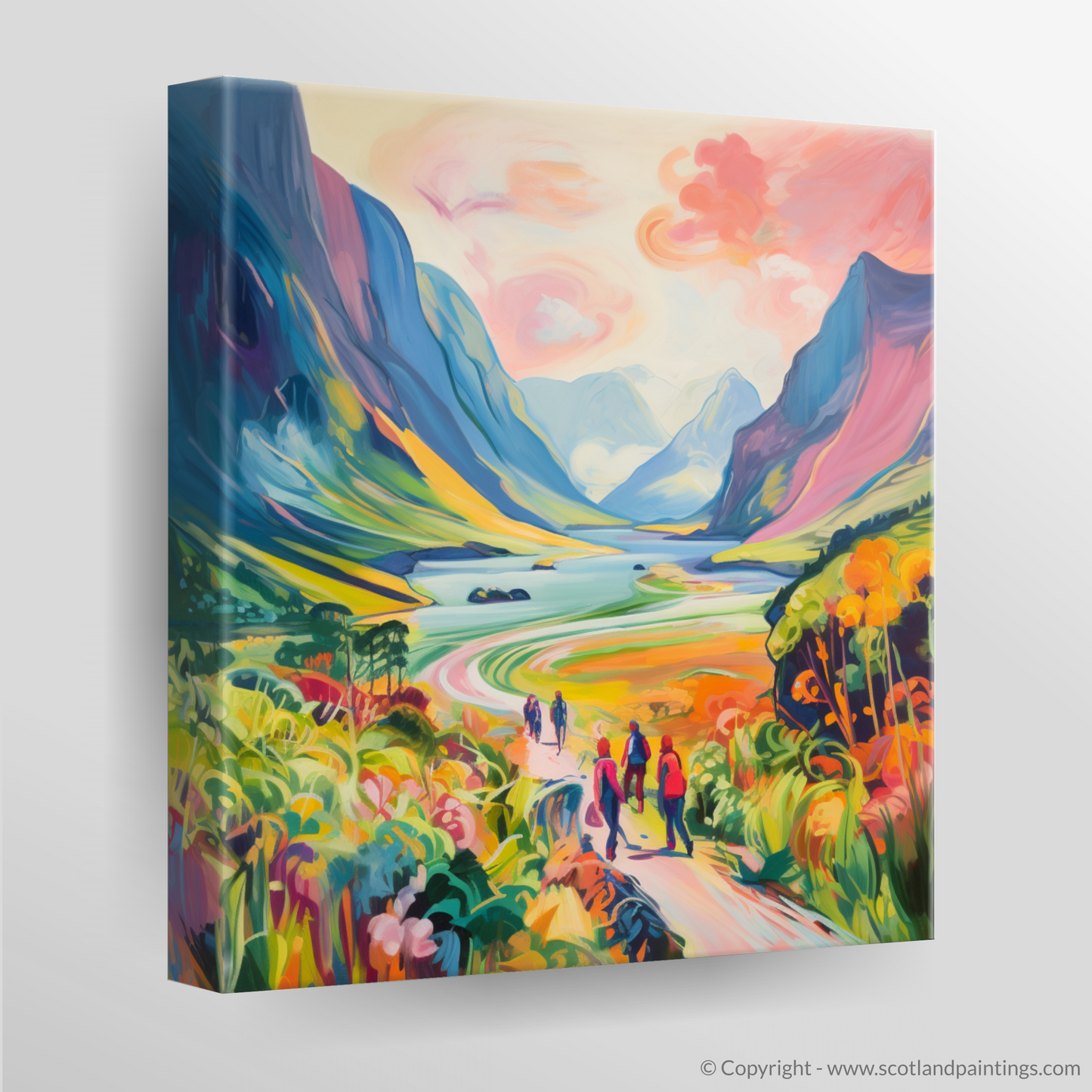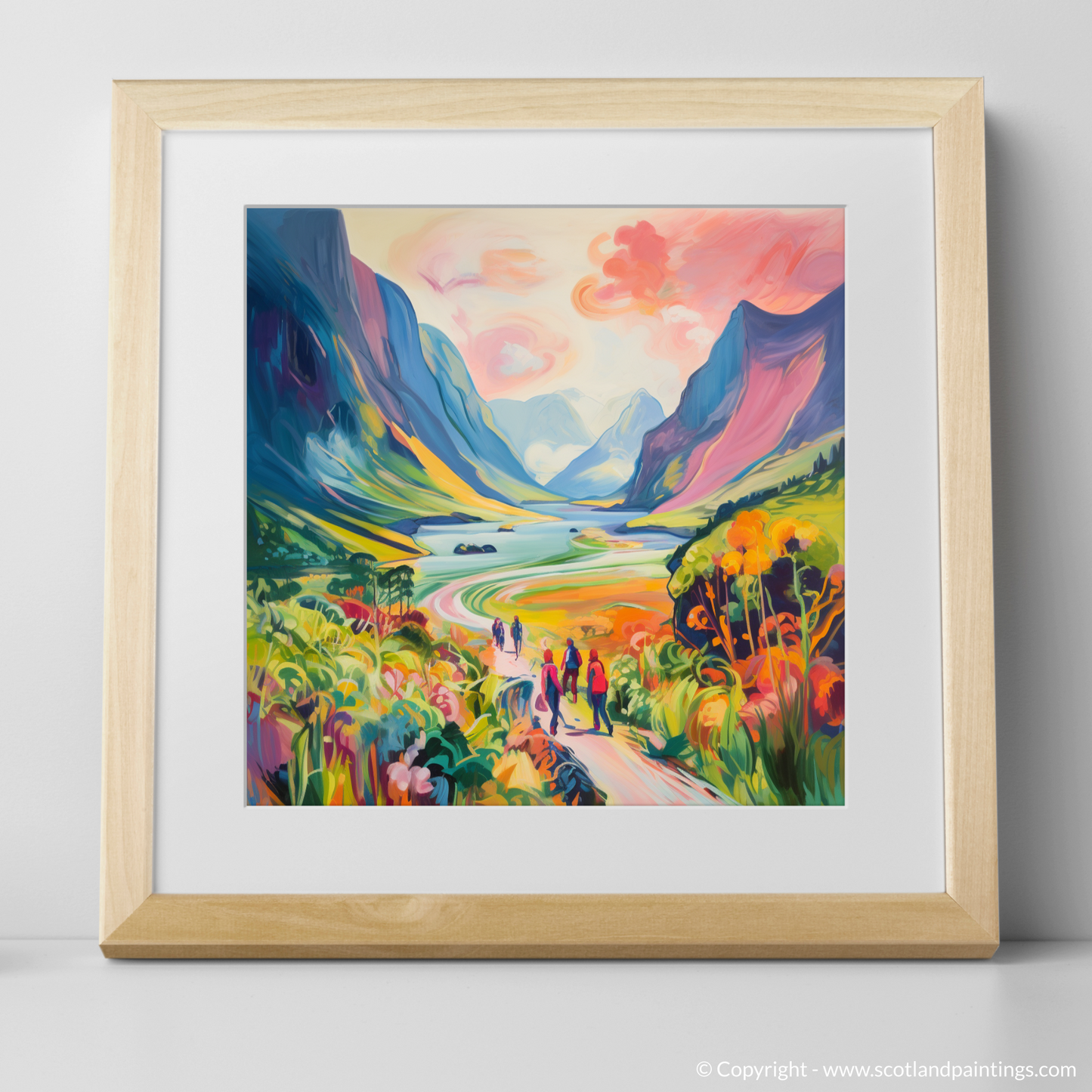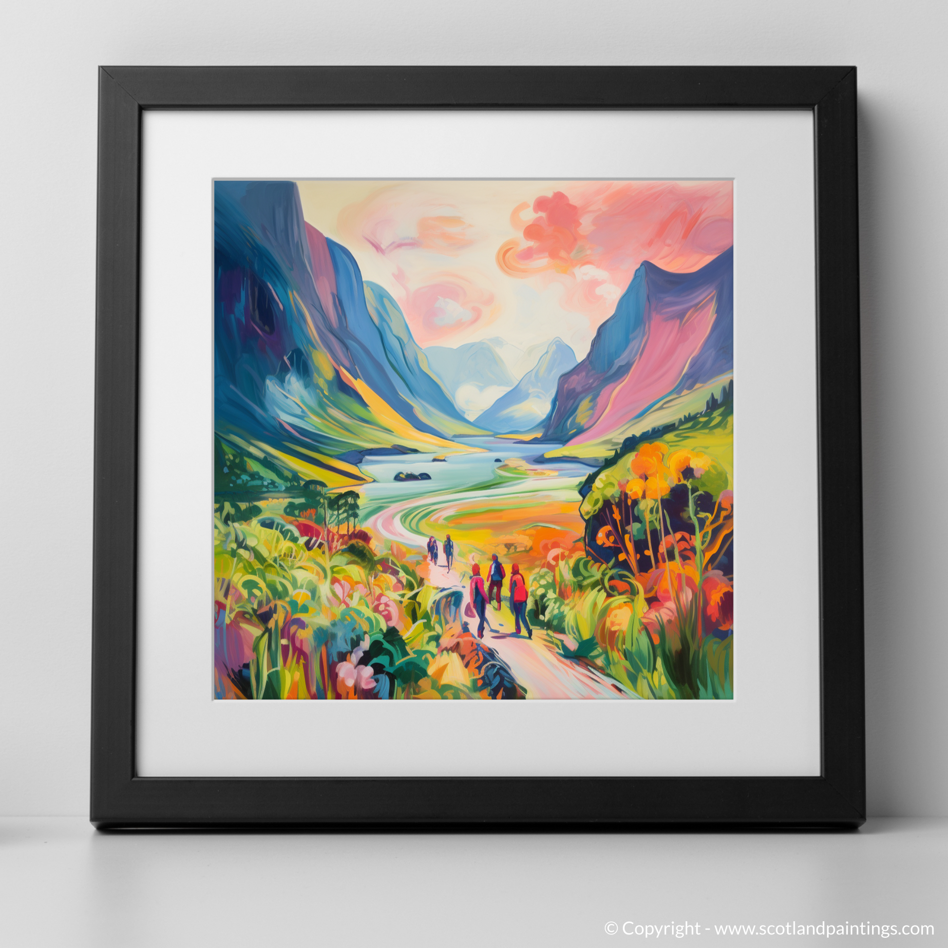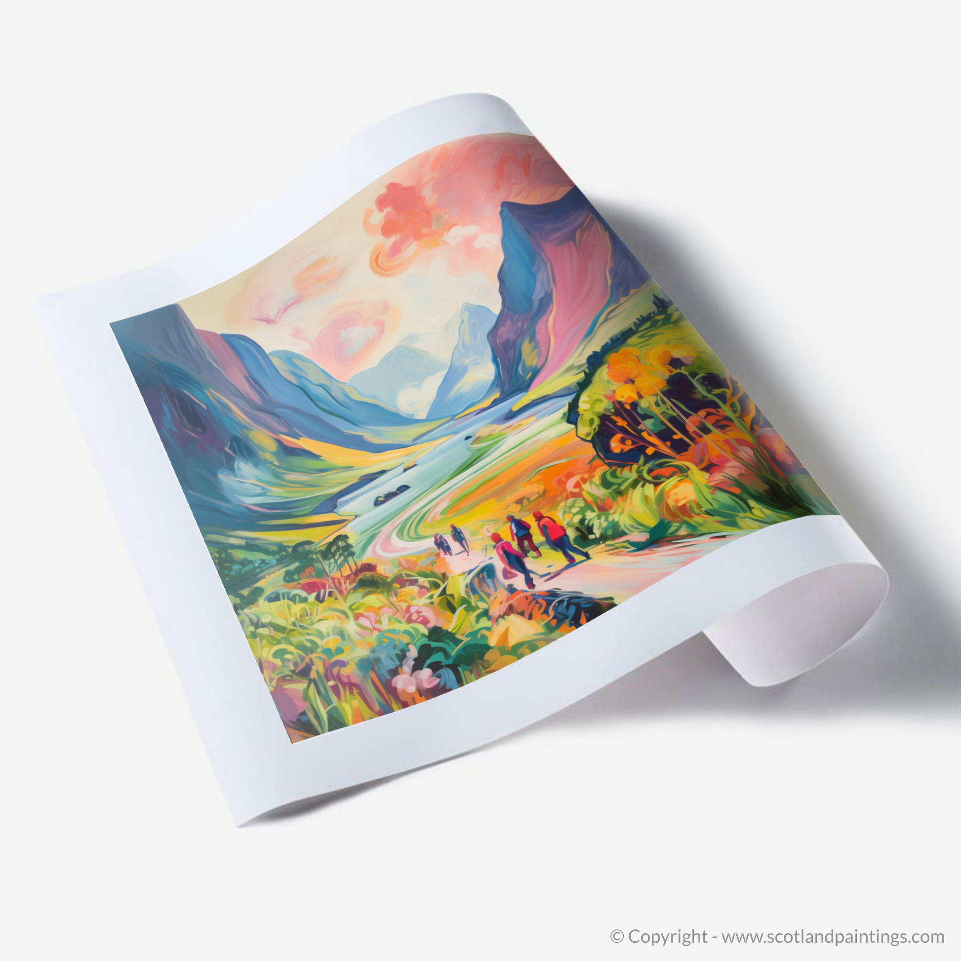 Painting and Art Print of Hikers in Glencoe during summer. Summer Hike in Vibrant Glencoe.