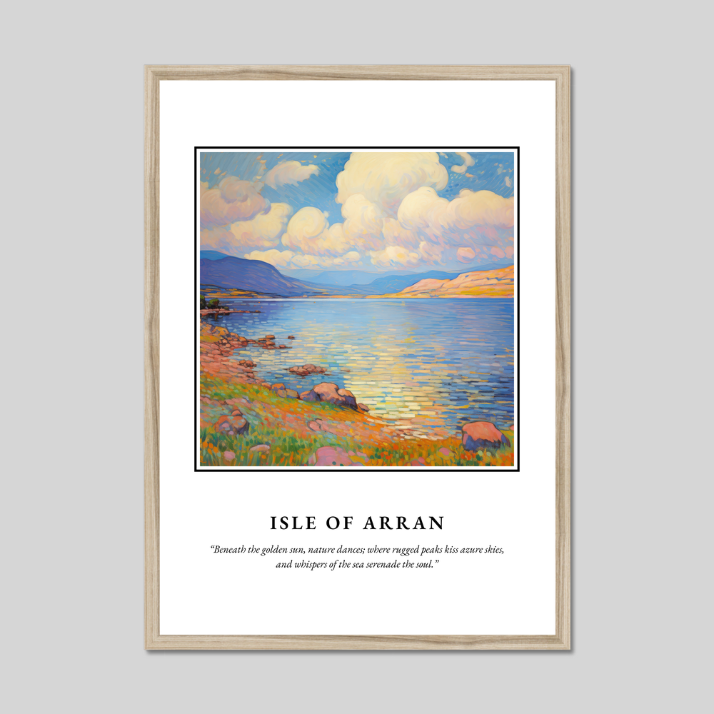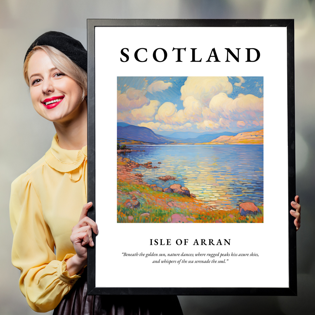 Capture the essence of Scotland’s enchanting summer with our striking framed poster print featuring the breathtaking Isle of Arran. Measuring a generous 50cm x 70cm, this poster is a substantial piece of art that will dominate your wall space with charm and character. Perfectly suited for lovers of Scotland, Impressionism enthusiasts, or those with cherished memories of Arran, this piece offers a nostalgic yet vibrant glimpse into one of Scotland’s most beautiful isles.