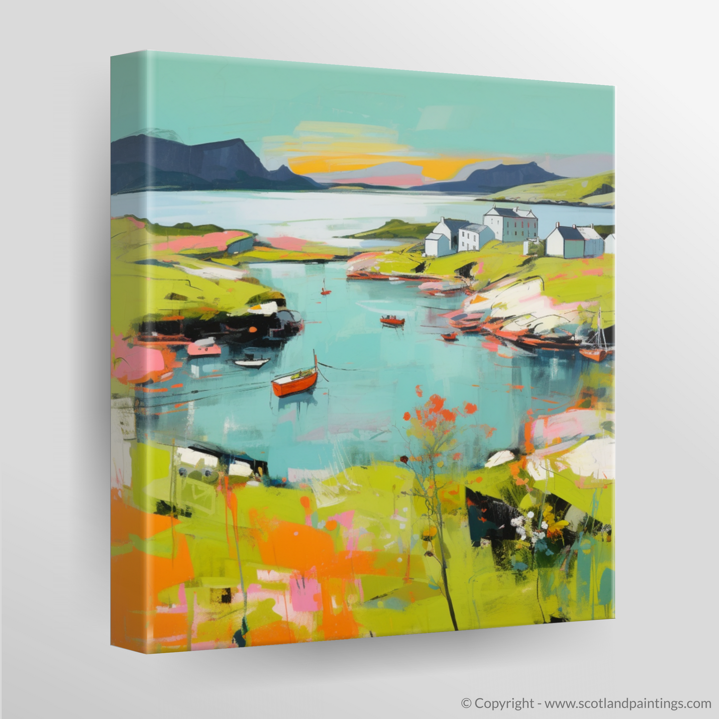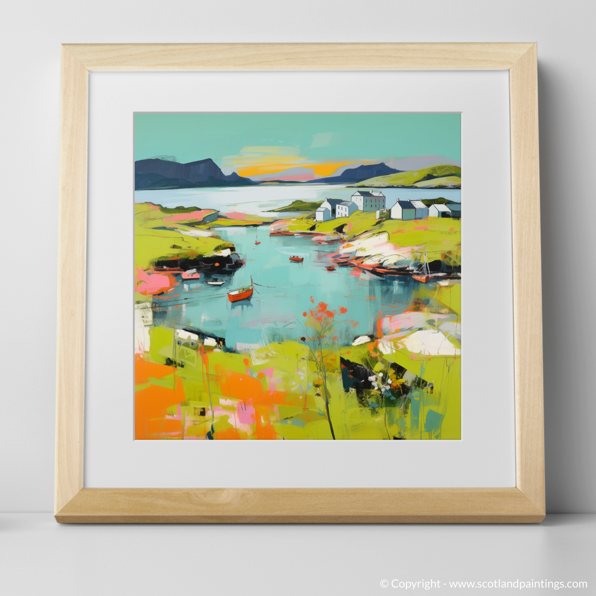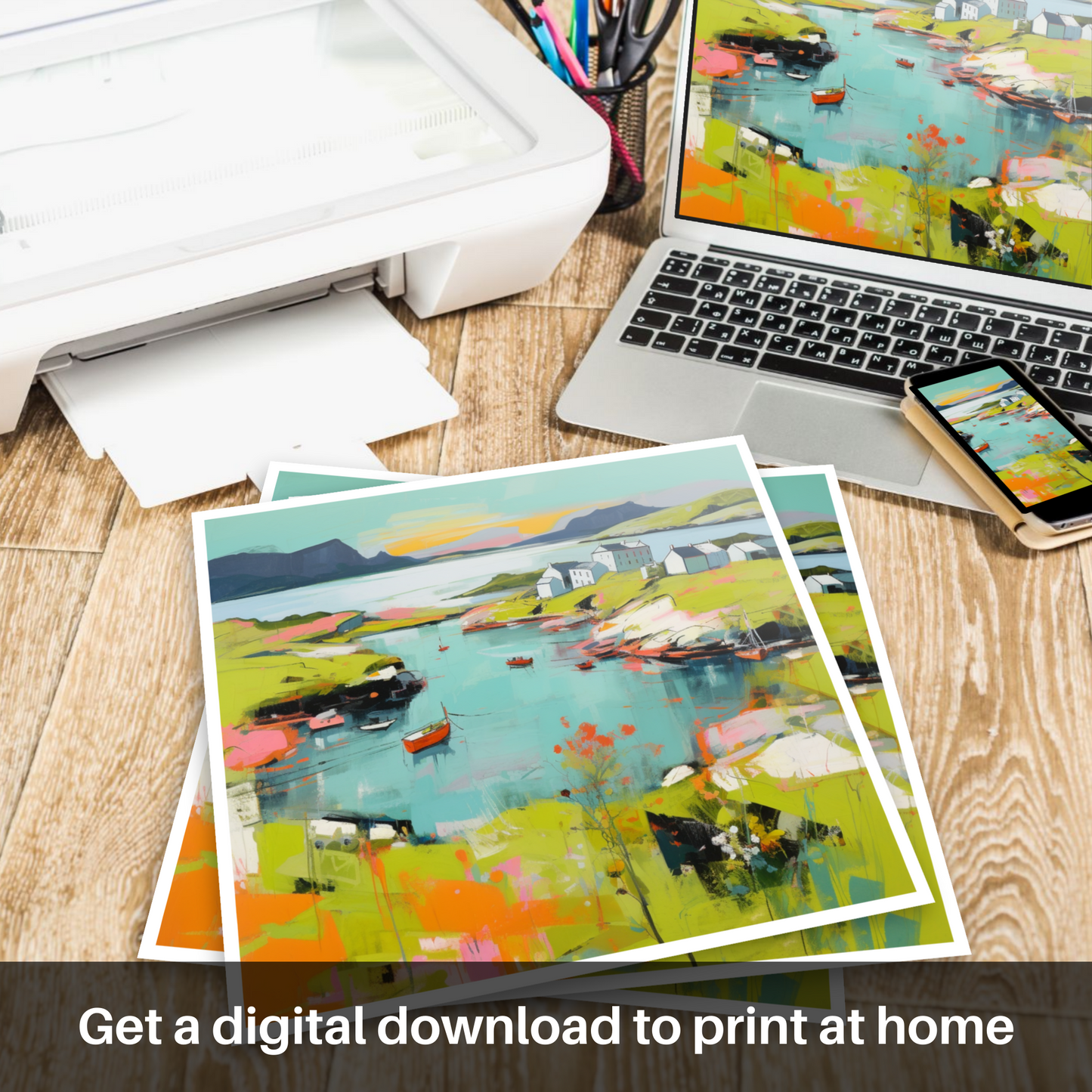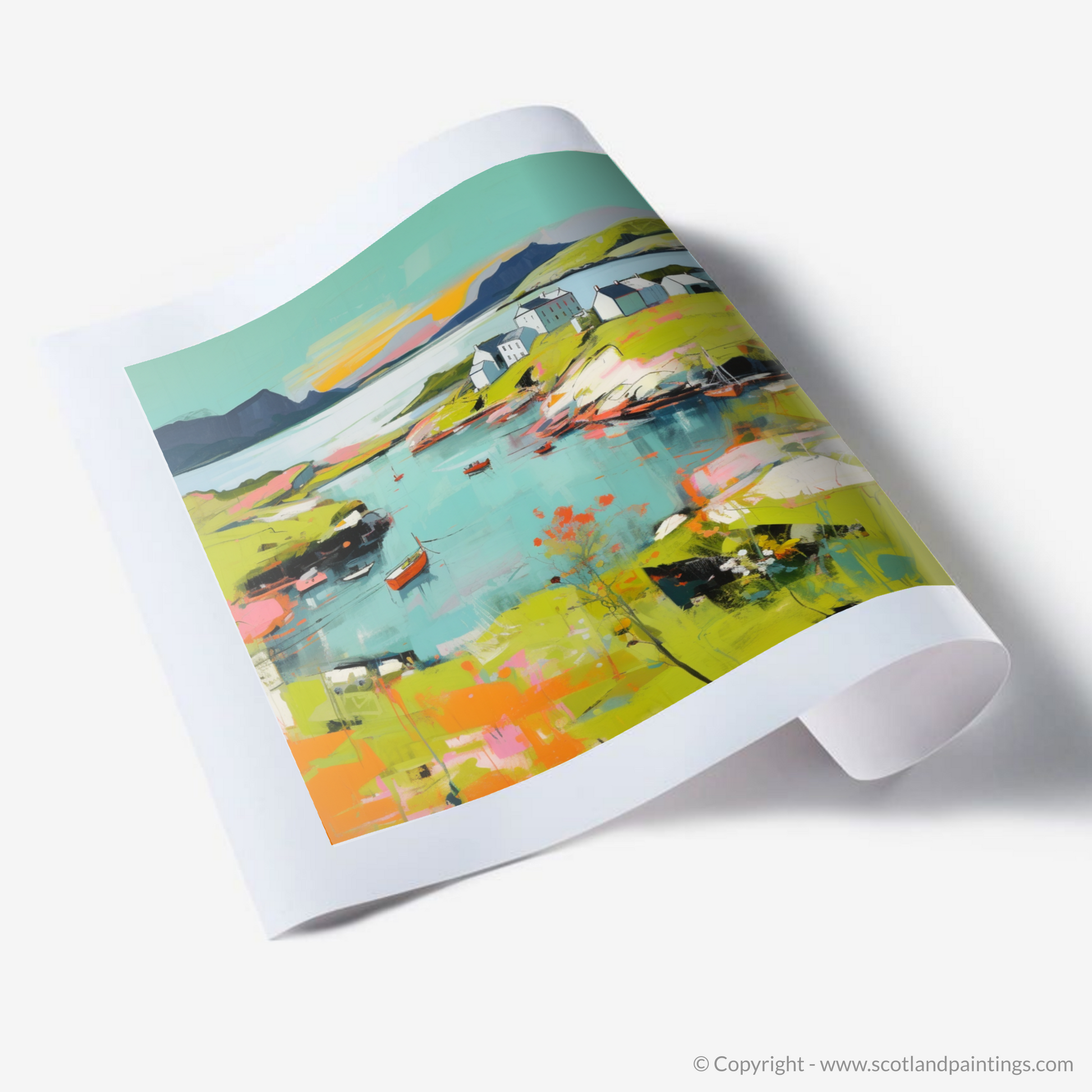Captured in the radiant light of a summer's day, this vibrant print offers a contemporary interpretation of the tranquil Isle of Ulva, set within the serene Inner Hebrides. The artwork presents a harmonious blend of vivacious colours and abstract forms, evoking the unique beauty of the Scottish landscape.