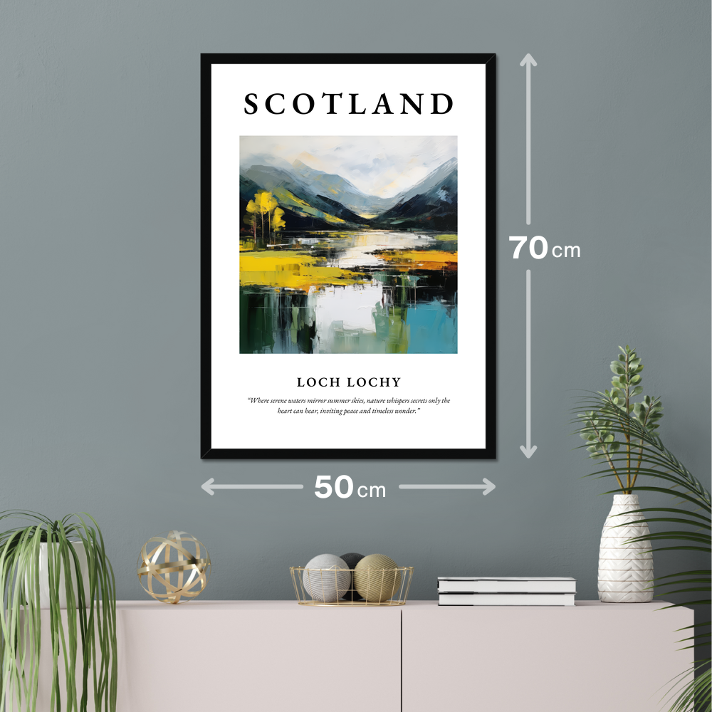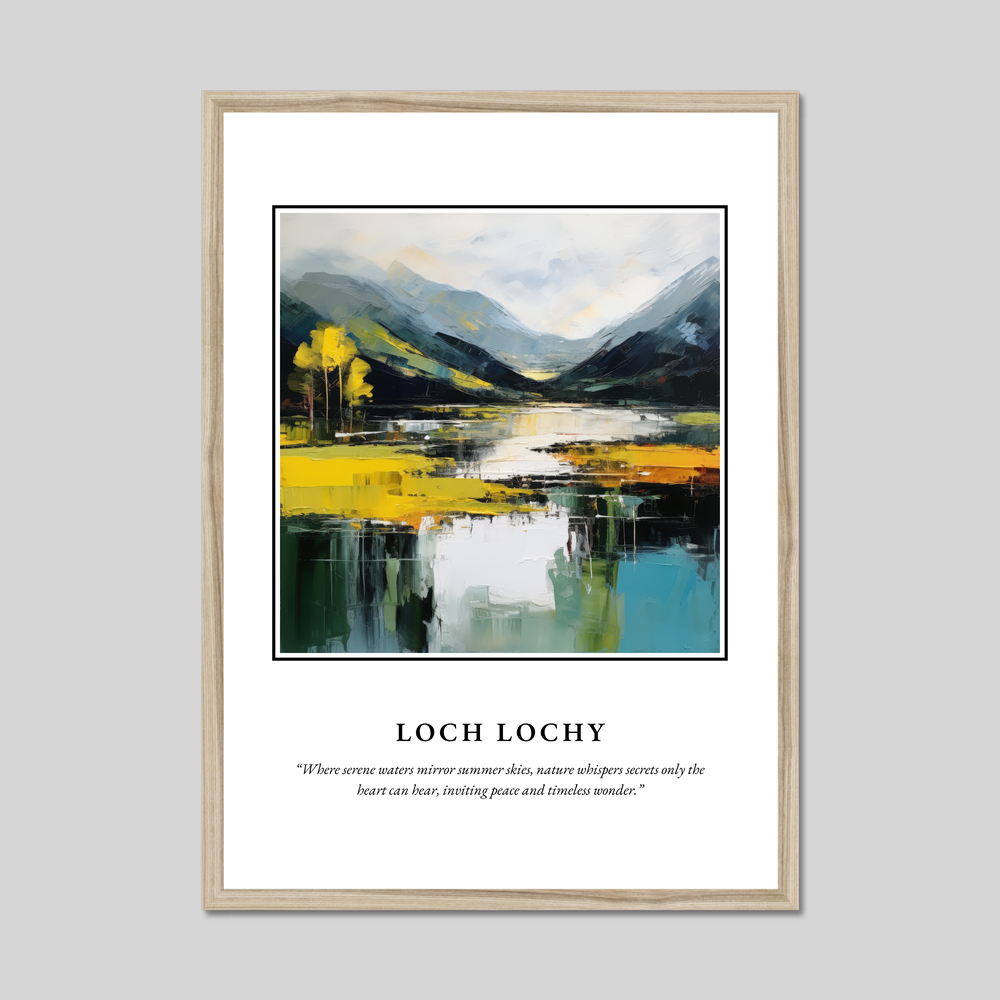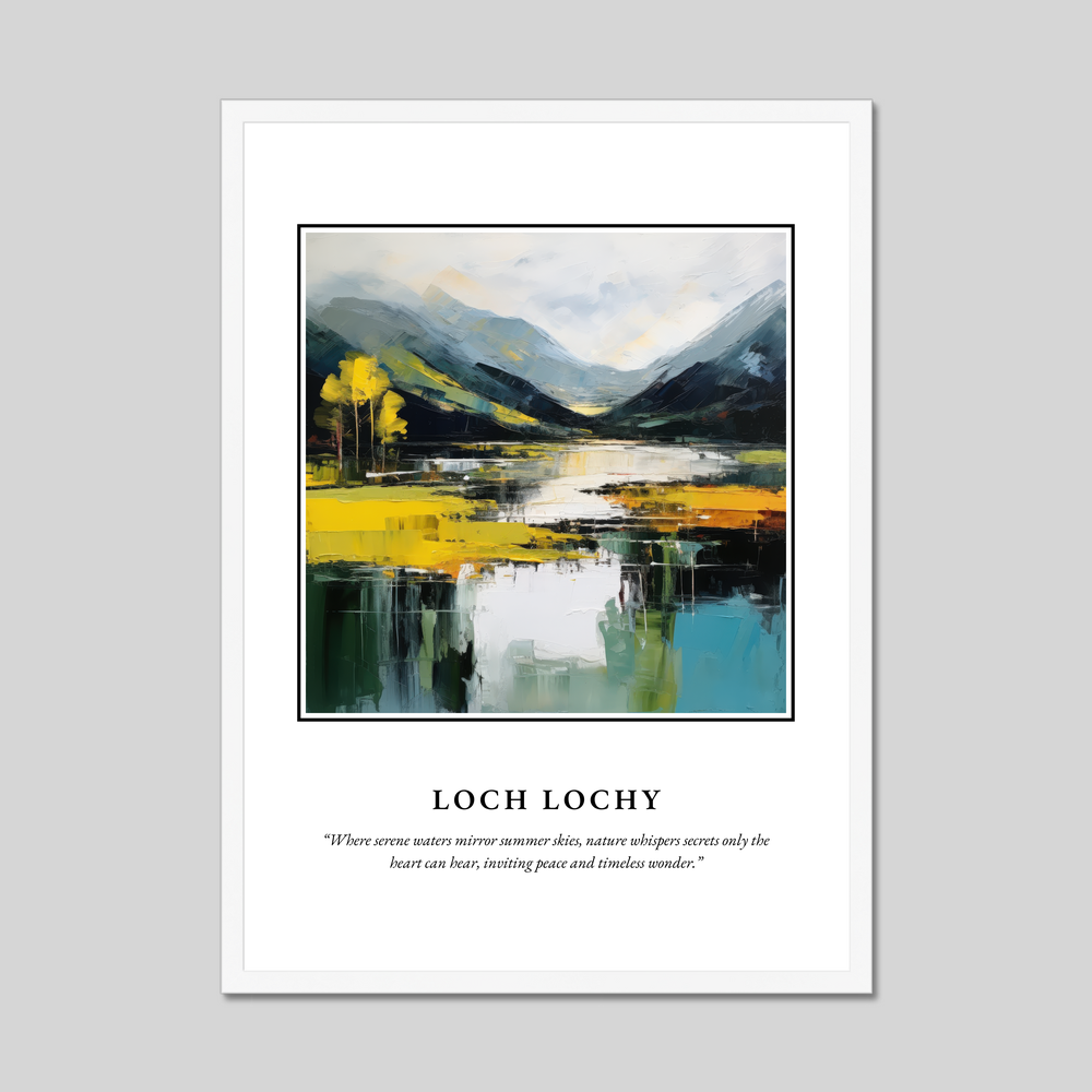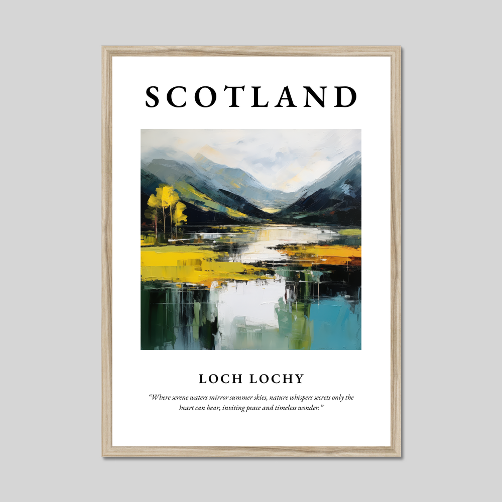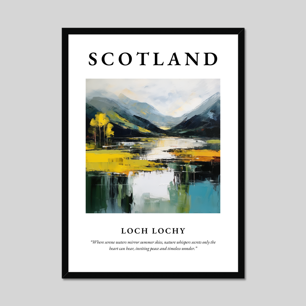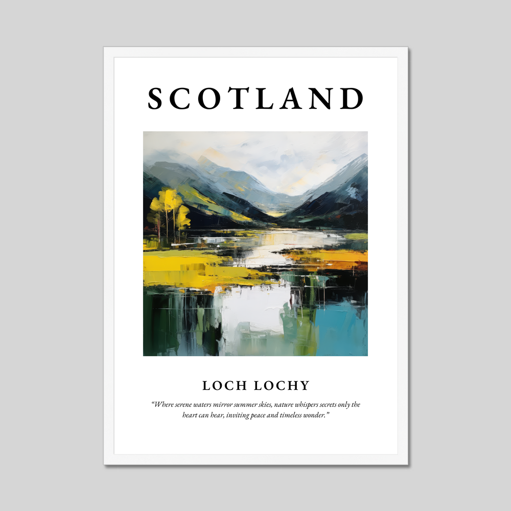 Available in black, white, or a natural wood-effect frame, this poster features bold "SCOTLAND" lettering above a striking abstract painting of Loch Lochy. The vibrant colours and textured brushstrokes capture the raw, untamed beauty of the loch, where nature’s palette shines in hues of deep greens, calming blues, and vivid yellows. Underneath, a poetic quote adds an enchanting layer to the artwork: “Where serene waters mirror summer skies, nature whispers secrets only the heart can hear, inviting peace and timeless wonder.” Whether you’ve visited Loch Lochy or dream of escaping to its tranquil shores, this artwork is a perfect reminder of Scotland’s natural wonders.