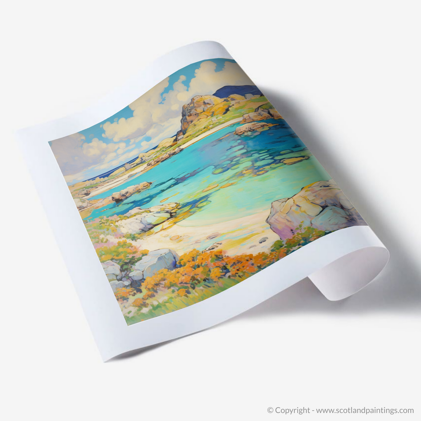 This impressionistic print is a timeless portrayal, not just of a place, but of a moment in time, one that captures the soul-stirring serenity of Achmelvich Bay, a jewel of Scotland. It invites the viewer to lose themselves in a moment of peaceful reflection, making it an ideal addition to any collection that celebrates the beauty of the Scottish landscape and the art of impressionism.