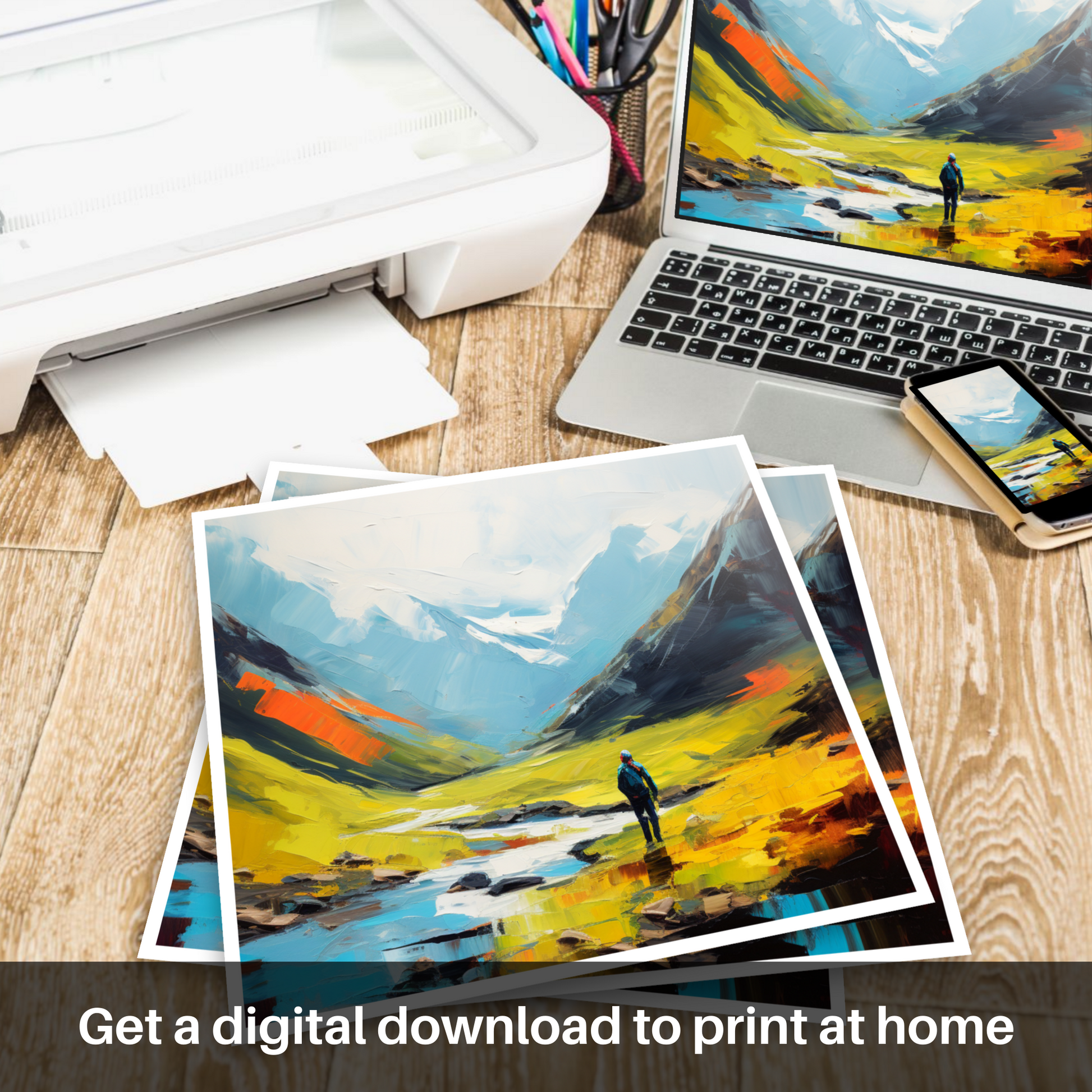 Capture the raw, unbridled spirit of Scottish summer with this vibrant abstract print, a piece that lingers with the essence of Glencoe's picturesque landscape. Immersed in the visual poetry of bold, swift brushstrokes, this artwork conjures the palpable sense of freedom and tranquility one feels when set against the sprawling beauty of Scotland's wild terrain.