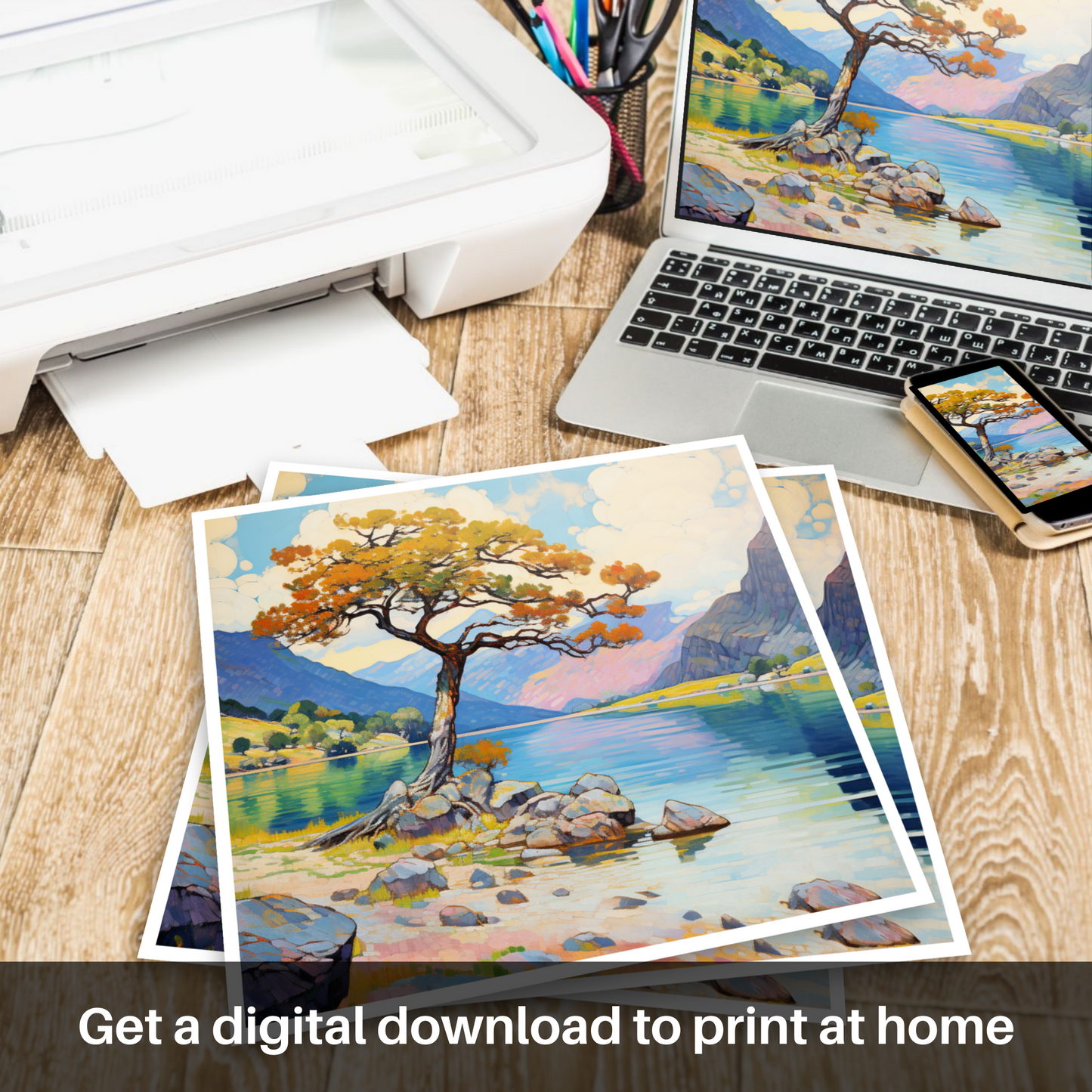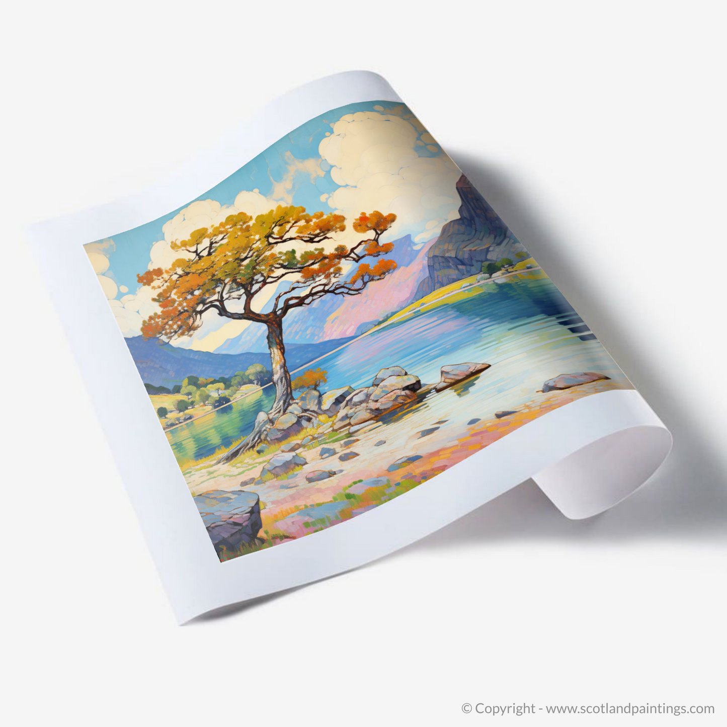 Capturing the serene essence of Wester Ross, this exquisite print invites viewers to bask in a summery Scottish idyll. It portrays the breathtaking Loch Maree, a gem in the heart of the Highlands, draped in the golden light of the season. Brushstrokes buzz with life and energy, reminiscent of the Impressionist masters, blending vibrant hues to evoke warmth and the transient quality of a summer's day.