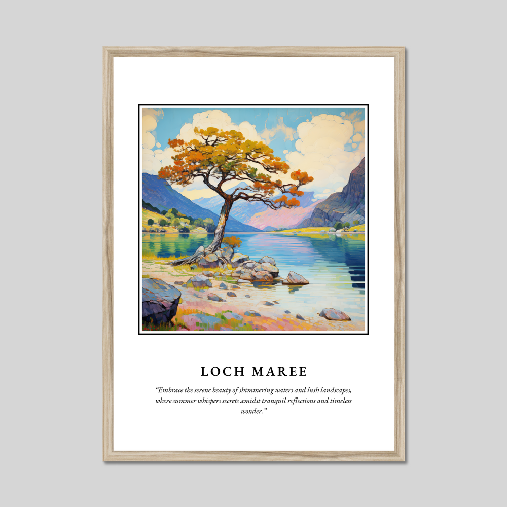 Capture the essence of Scotland with our exquisite 50cm x 70cm framed poster print, a stunning tribute to the majestic Loch Maree. This large poster, available in black, white, or natural wood-effect frames, transforms any space into a serene sanctuary without stretching your budget.