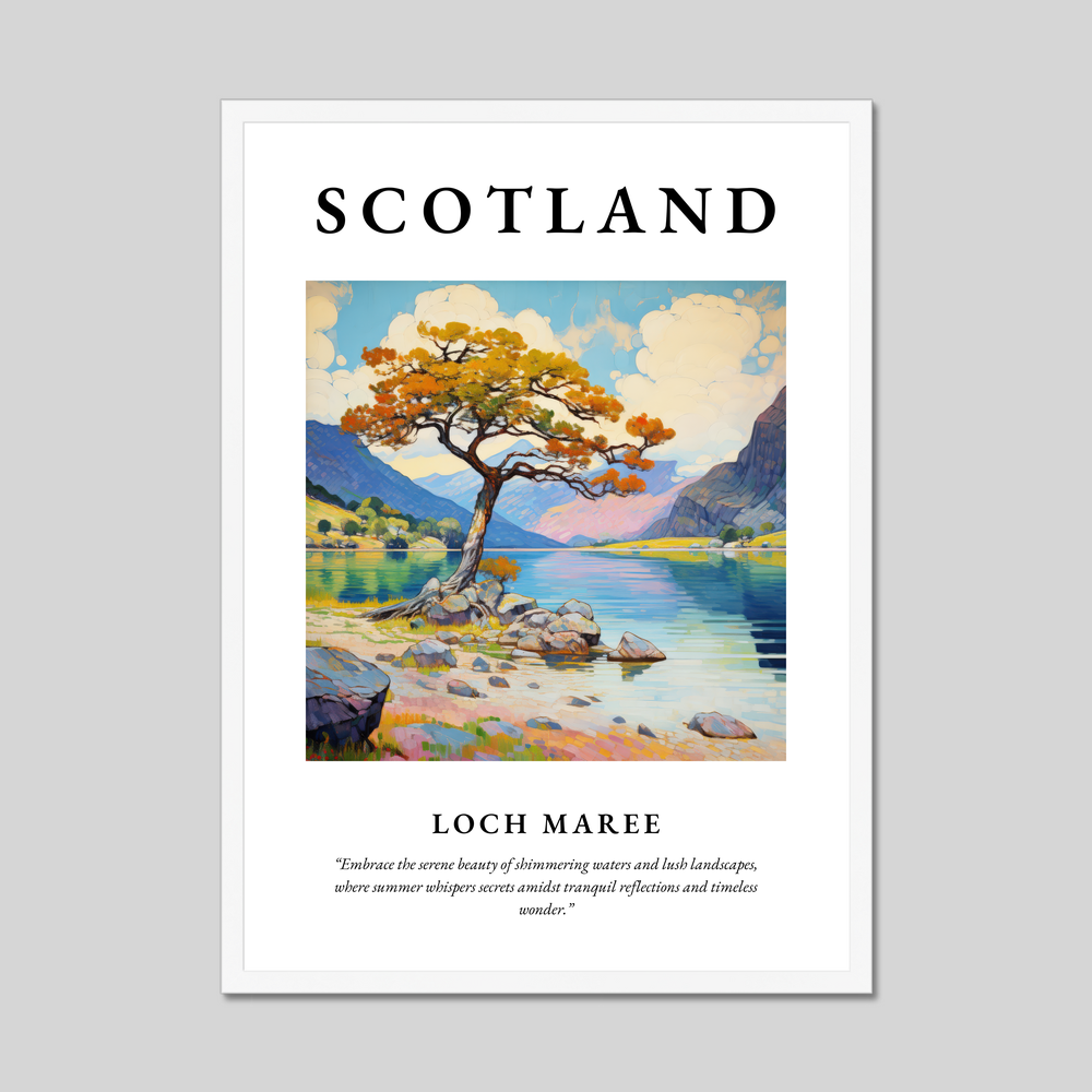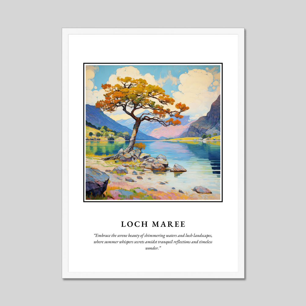 This poster serves as a portal to those who have visited Loch Maree or yearn for its serene beauty. The lake’s vibrant reflections and surrounding nature are brought to life in this captivating portrayal, offering an everlasting moment of peace and wonder.