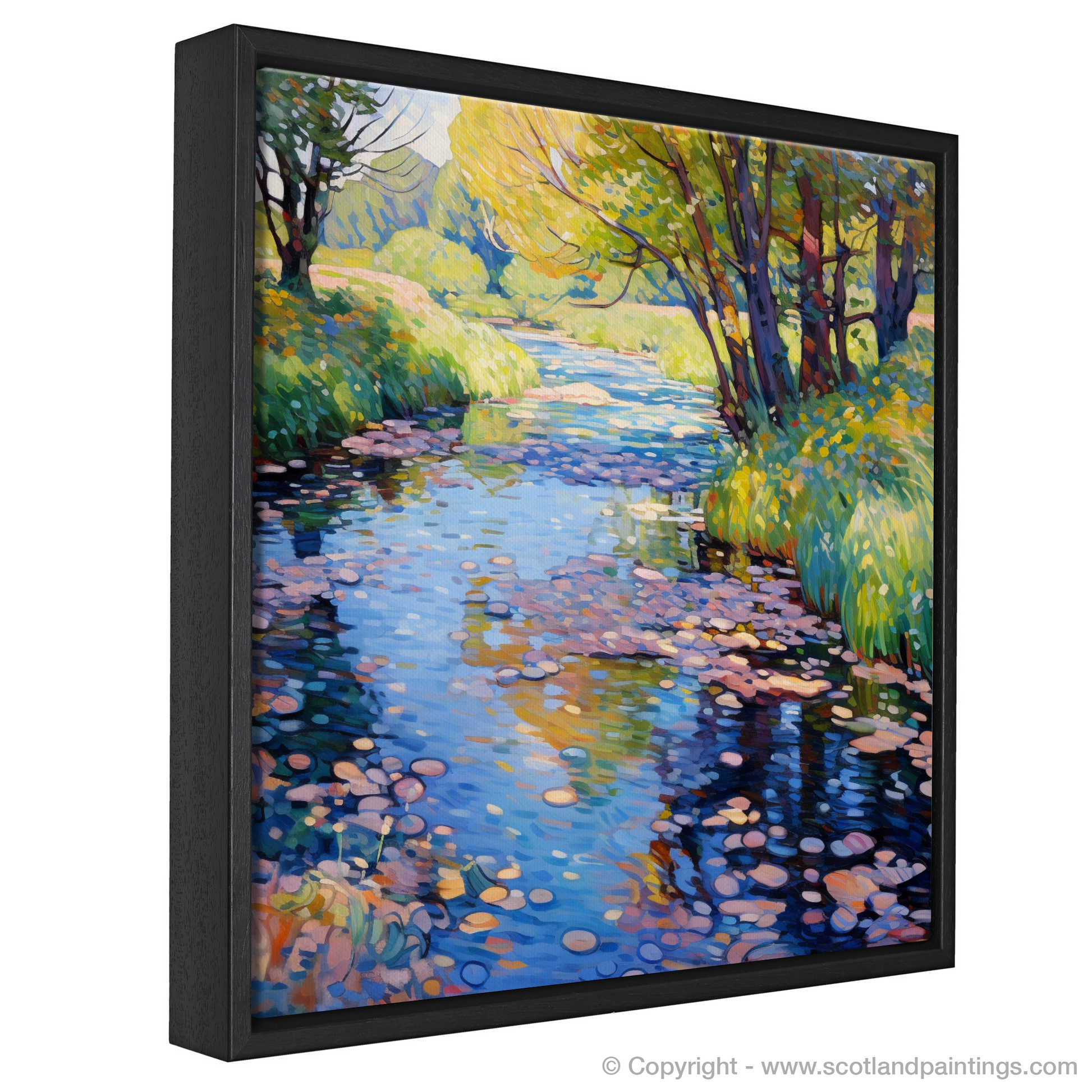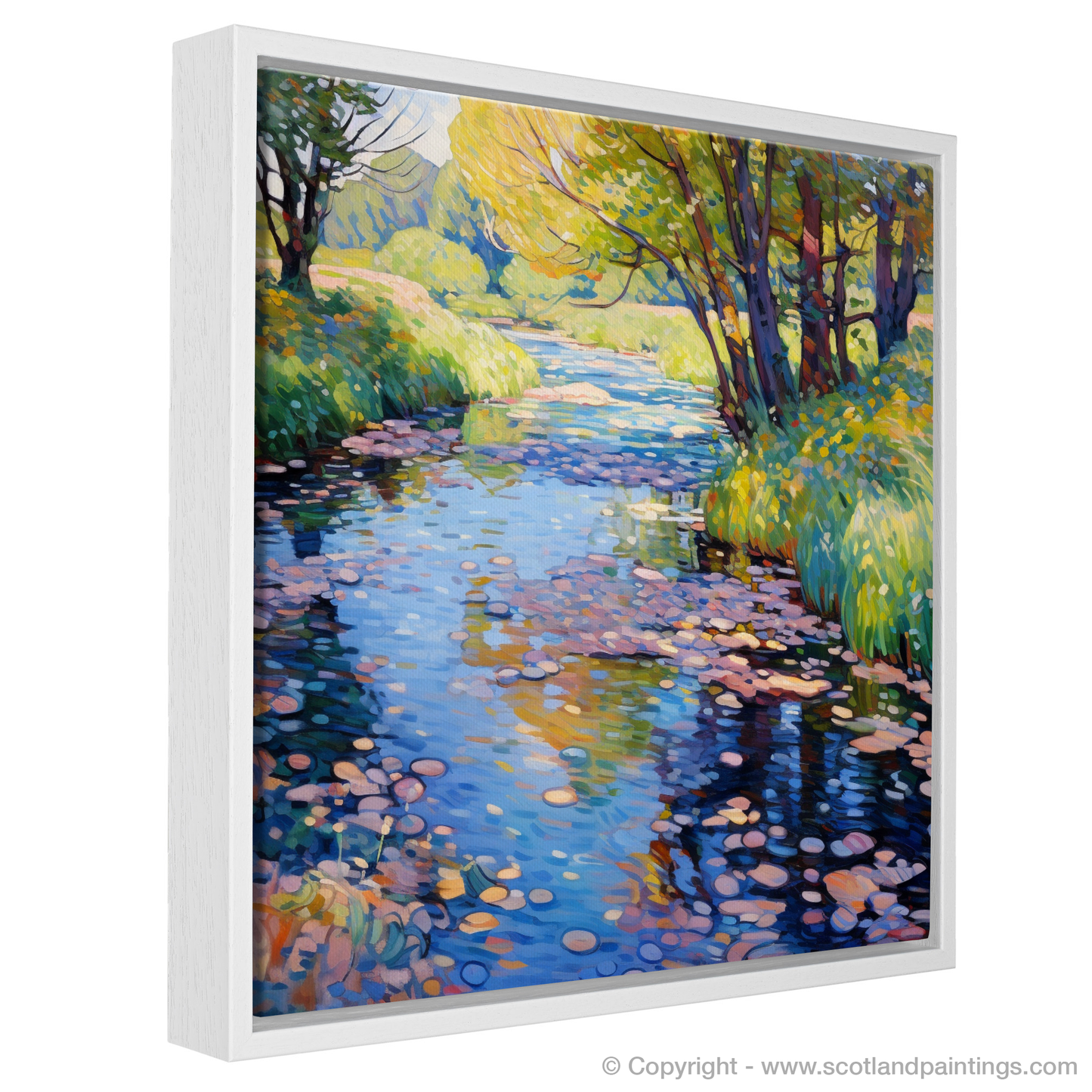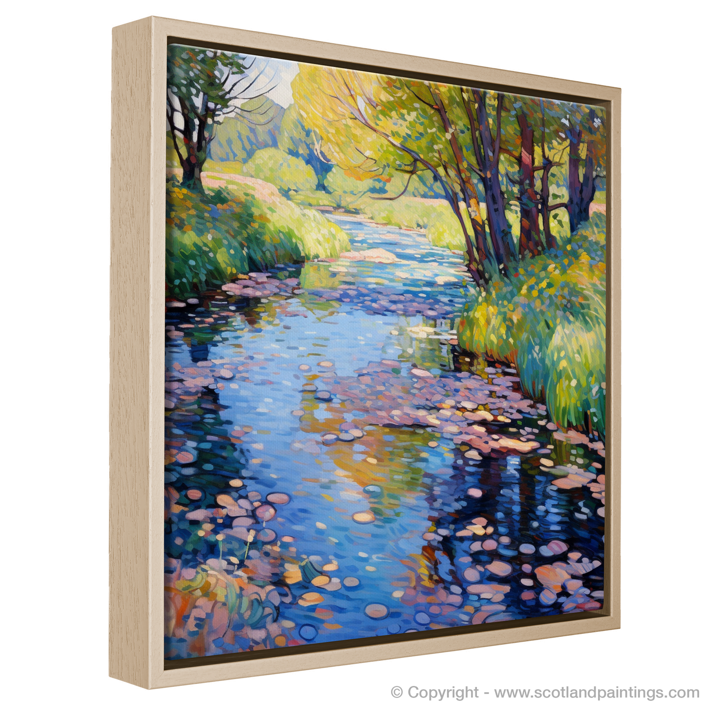 Capturing the serene beauty of the River Almond during the lush summer months, this exquisite print invites the warmth and vibrancy of Scotland's natural scenery into your space. The artwork meticulously embodies the essence of Impressionism through its dappled light and quick, expressive brushstrokes, bringing to life the gentle ripples of the meandering river.