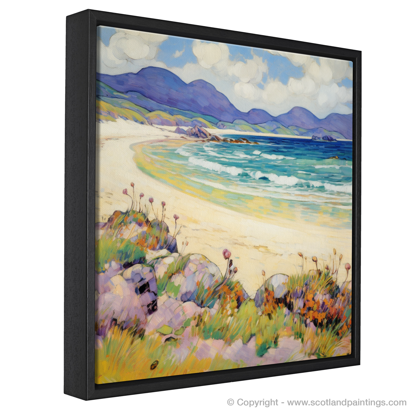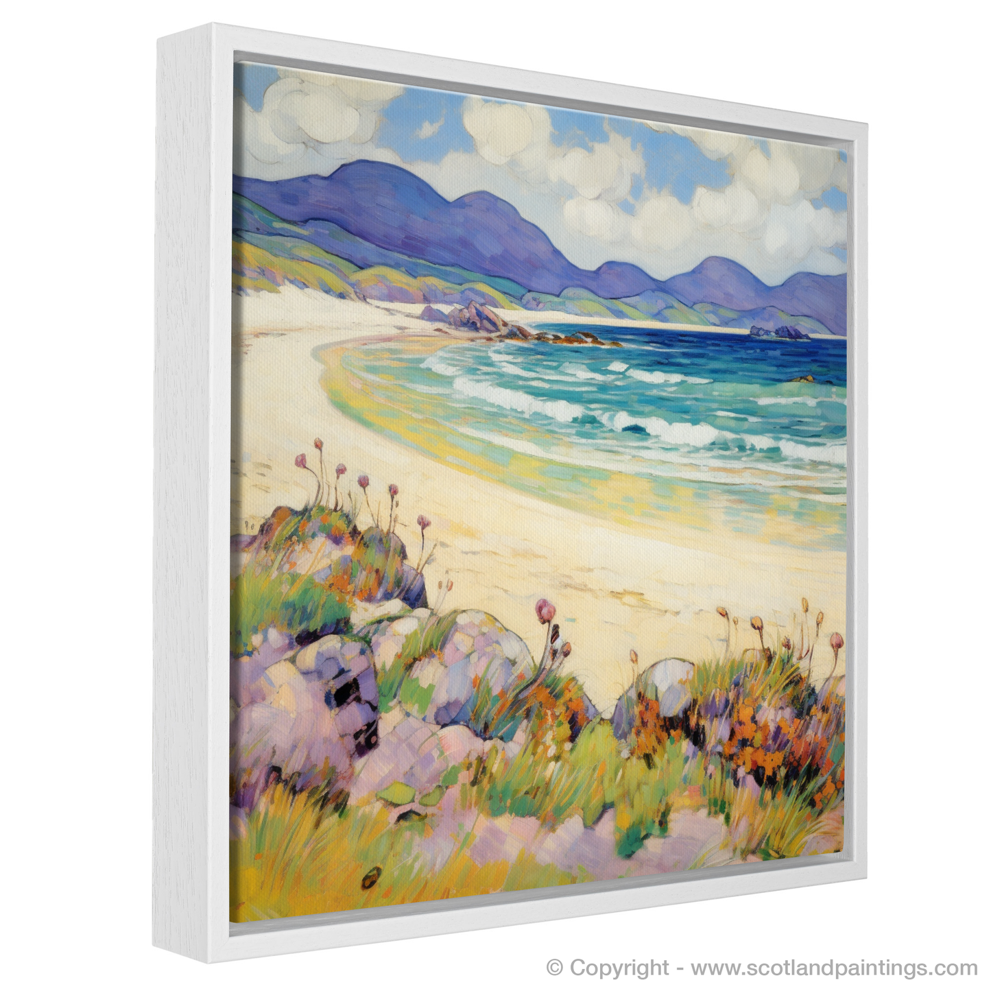 Imagine the warmth of a summer's breeze as it whispers across the vibrant landscape of Seilebost Beach, Isle of Harris. This evocative print captures the essence of a Scottish summer on the Hebridean shores, where the harmony of land, sea, and sky converges in a symphony of colour.