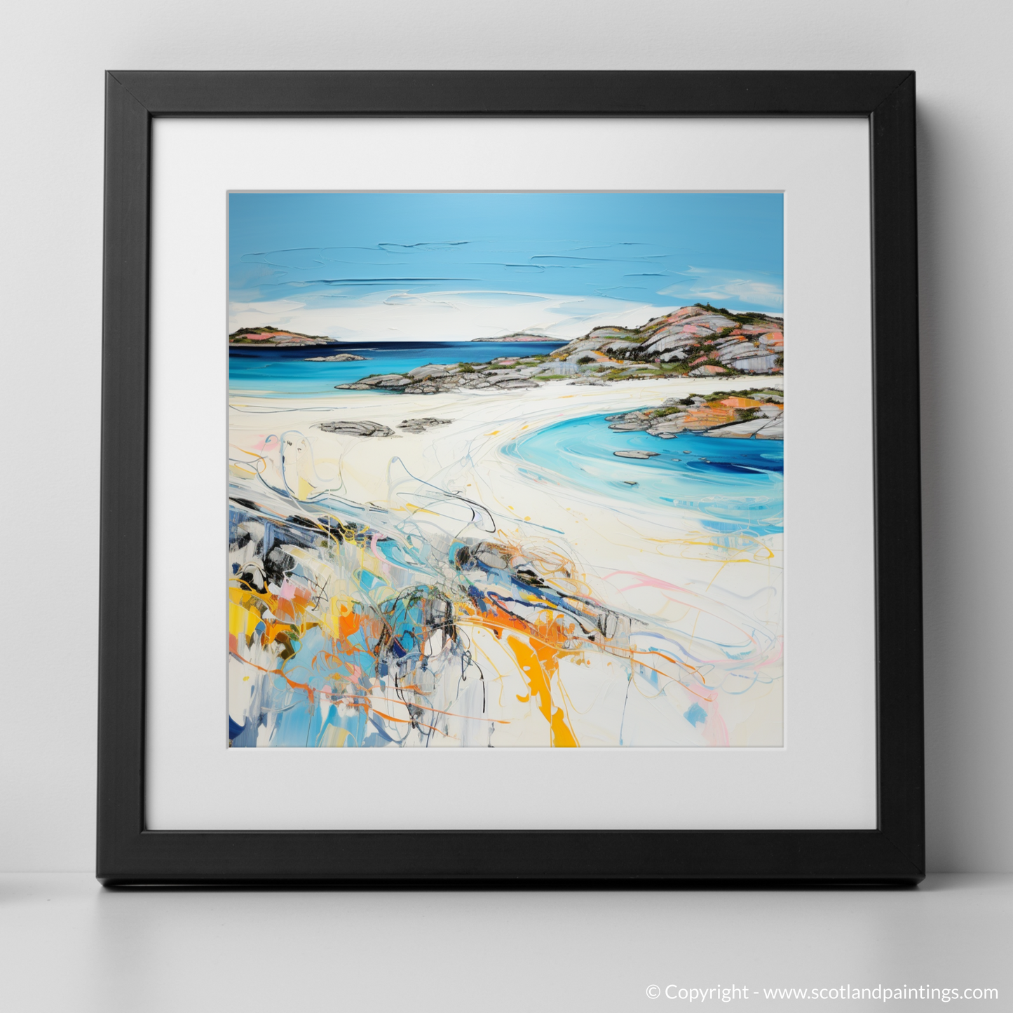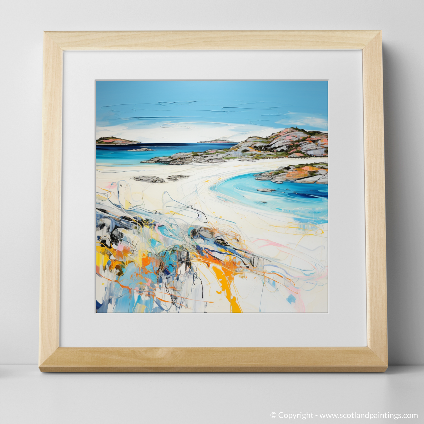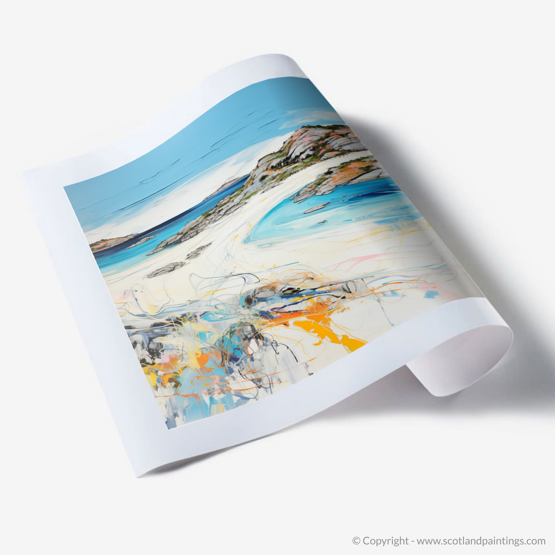 Capturing the essence of a breezy summer day, this print showcases the vibrant beauty of Achmelvich Bay, a hidden gem in the heart of Sutherland. The contemporary rendition is saturated with a palette of striking blues that mirror the crystal-clear waters of the bay, set against a pristine sandy beach that seems to glow under the generous sun.