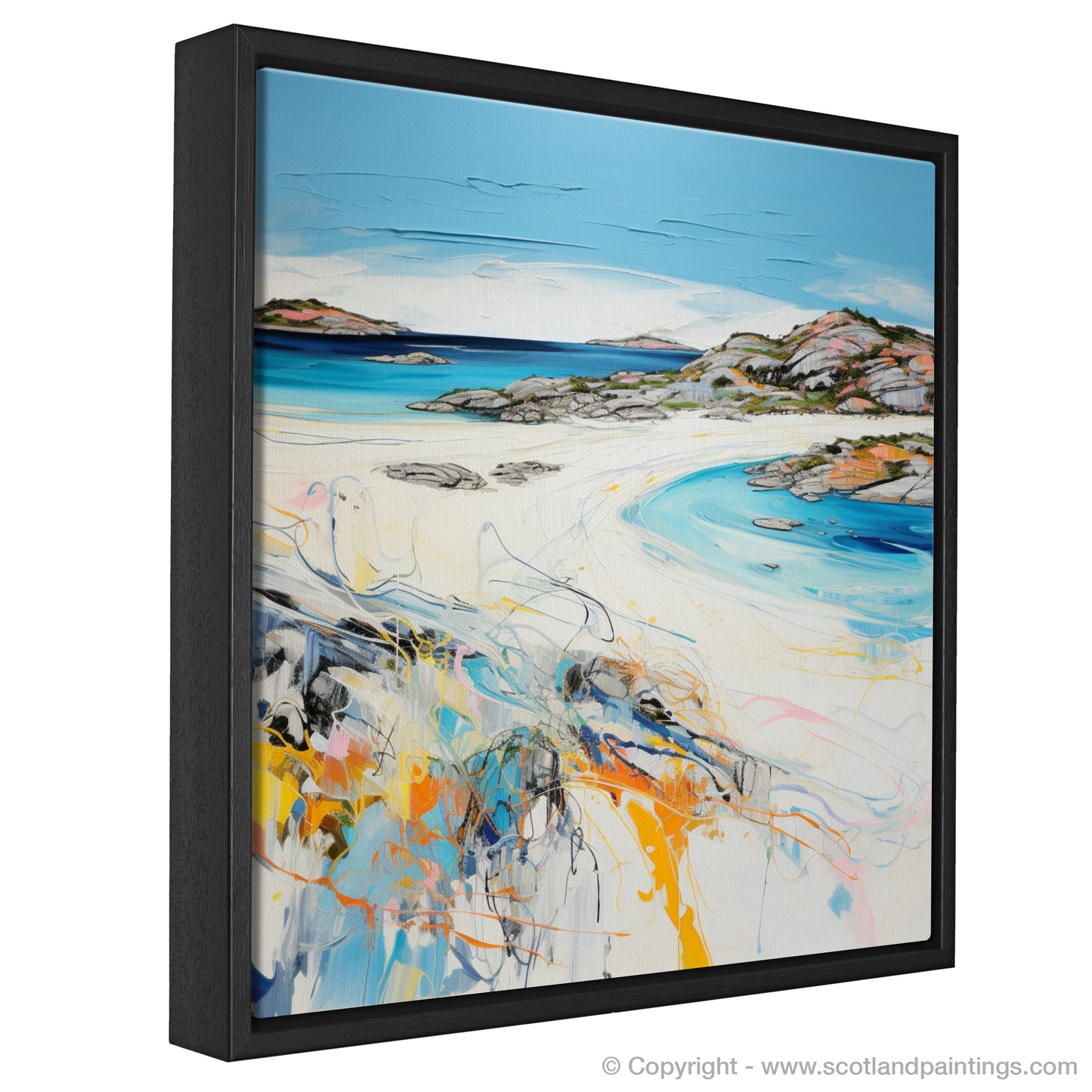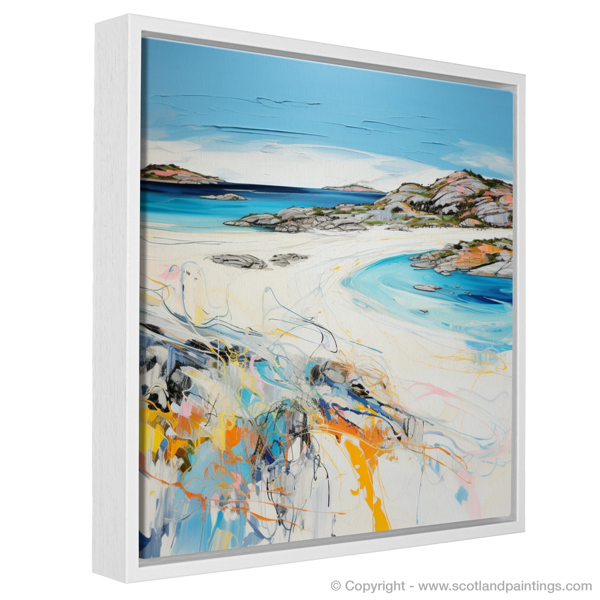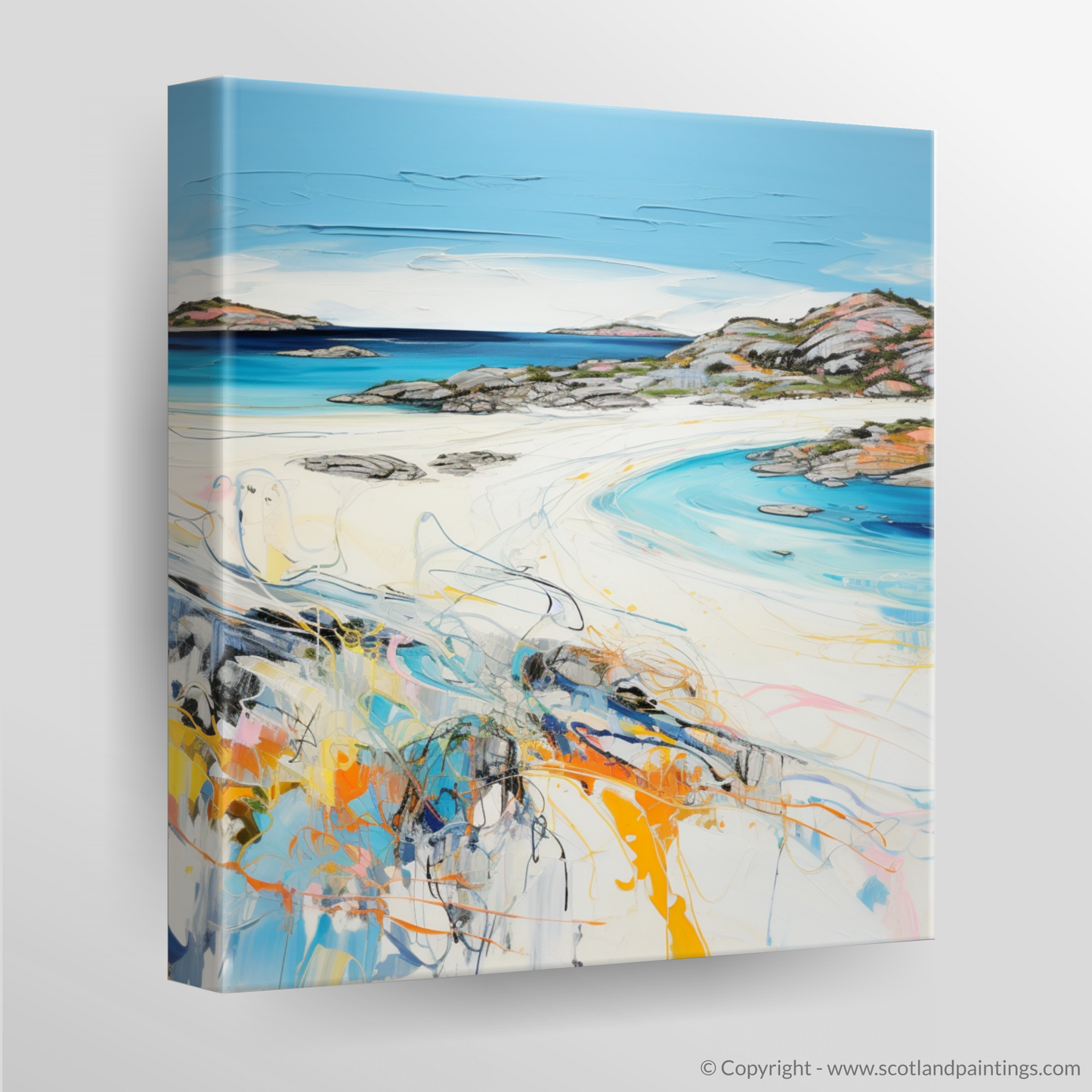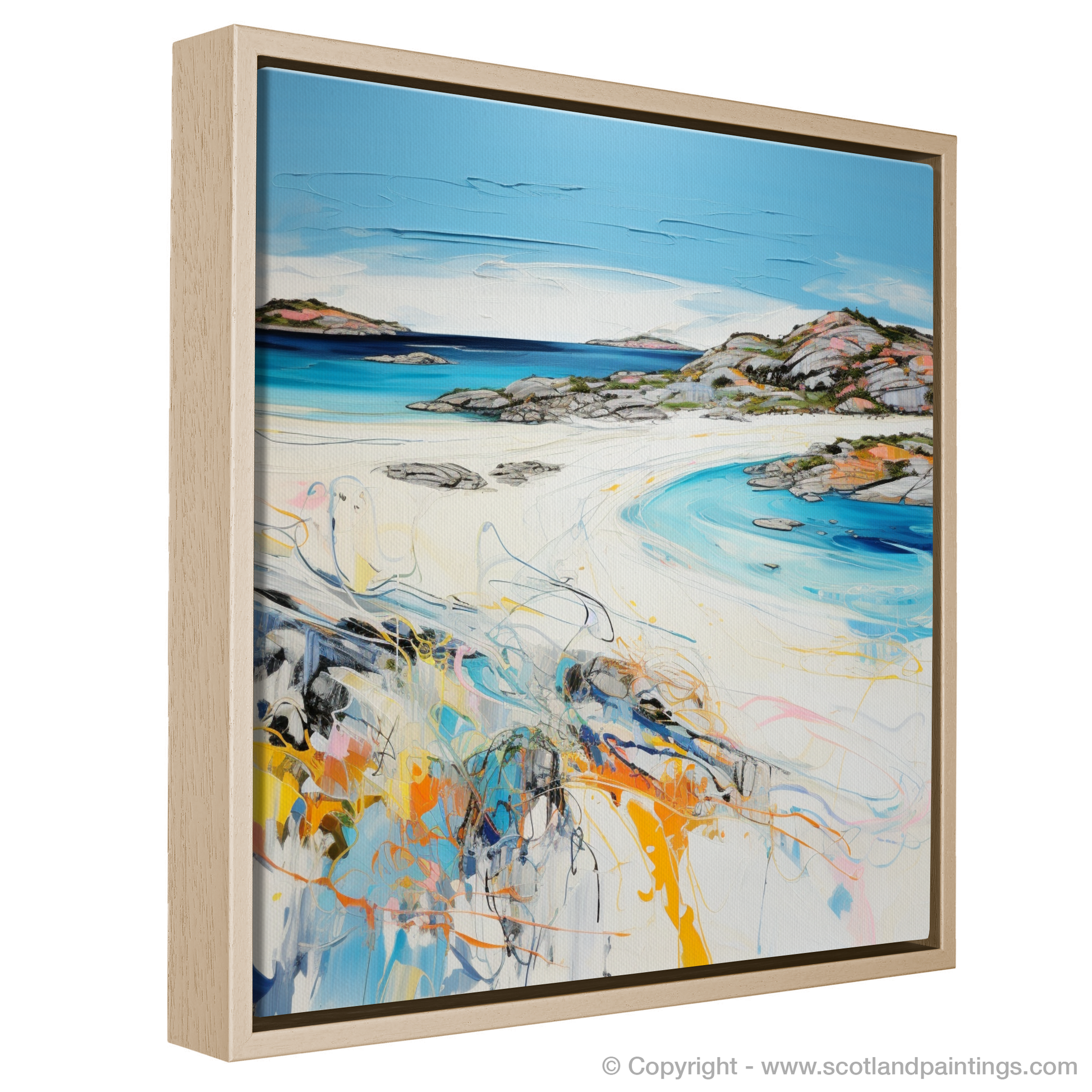 Capturing the essence of a breezy summer day, this print showcases the vibrant beauty of Achmelvich Bay, a hidden gem in the heart of Sutherland. The contemporary rendition is saturated with a palette of striking blues that mirror the crystal-clear waters of the bay, set against a pristine sandy beach that seems to glow under the generous sun.