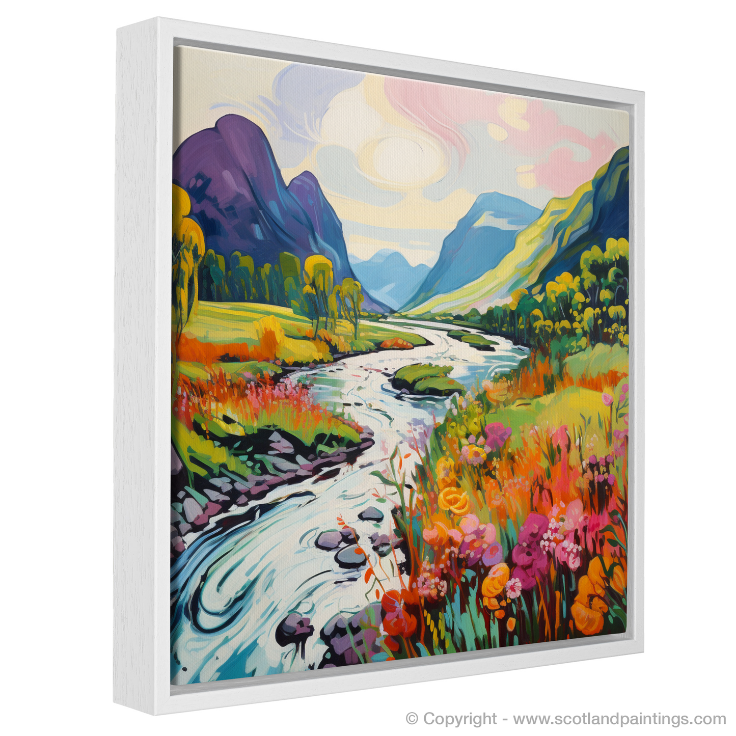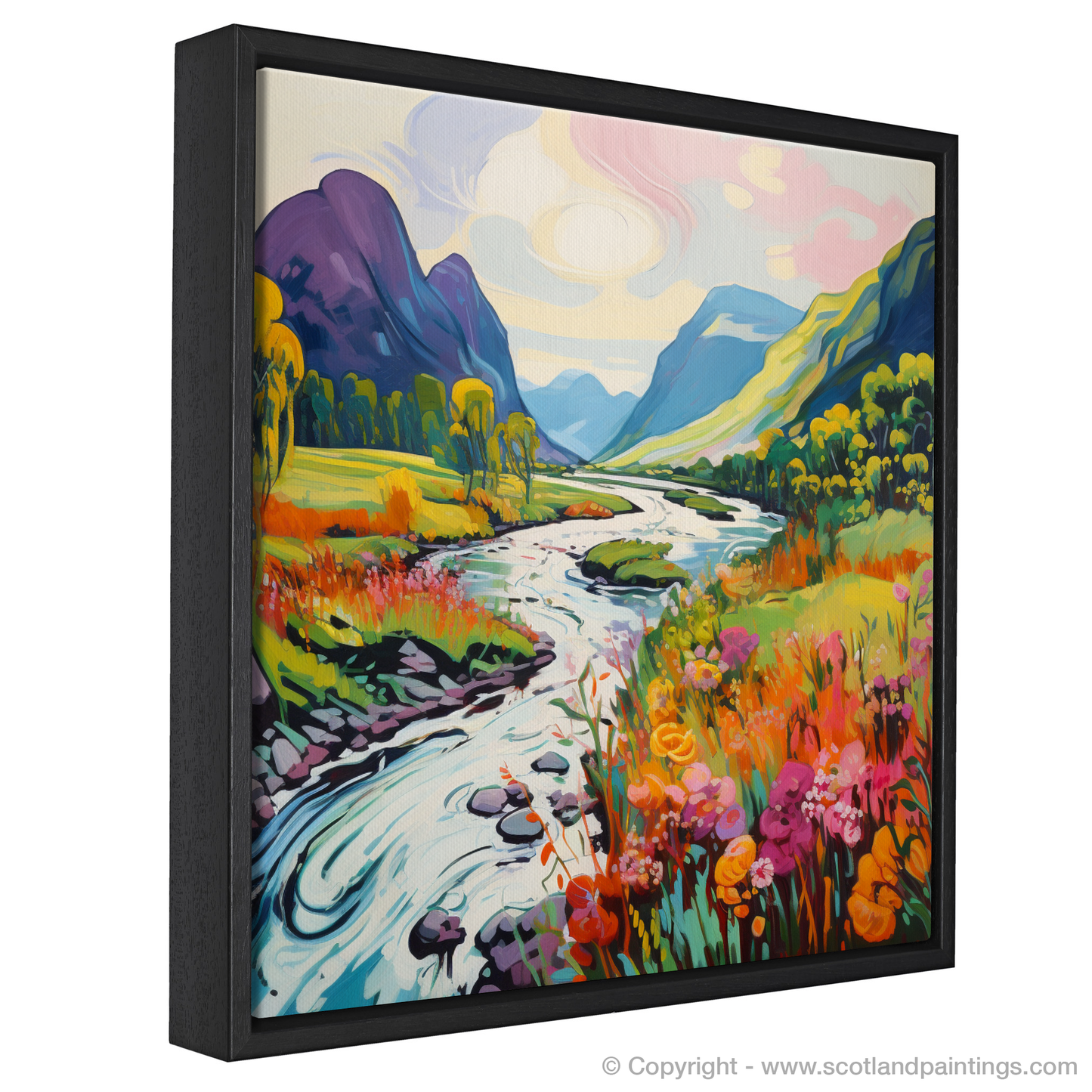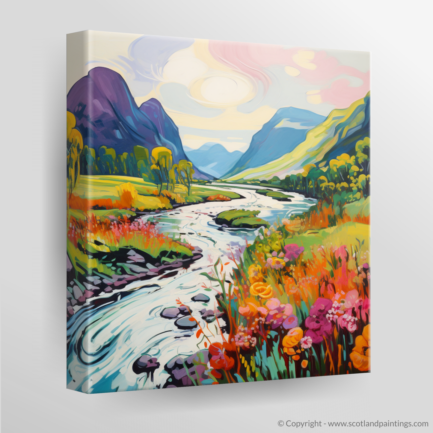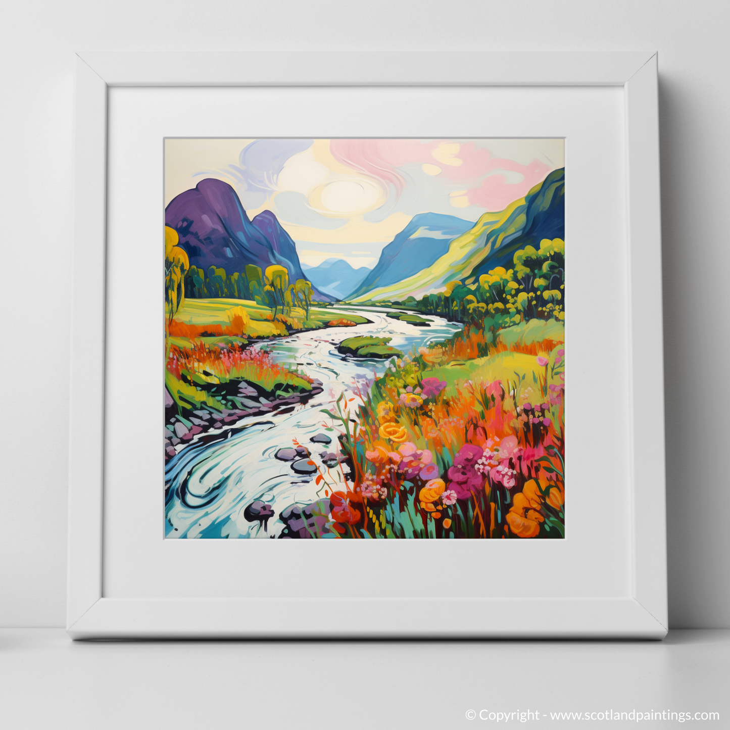 Immerse yourself in the vibrant hues and bold brushstrokes that bring the Scottish Highlands to life in this captivating print. Evoking a sense of unrestrained joy and a celebration of natural beauty, this piece is an ode to the River Coe, nestled in the heart of Glencoe during the bountiful summer months.