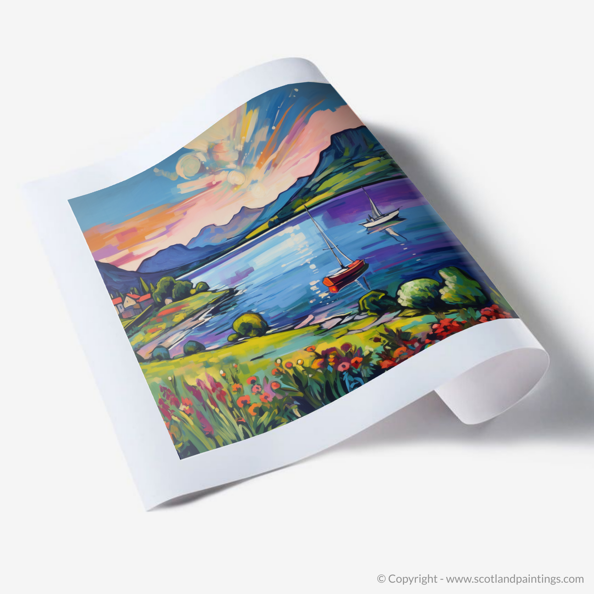 Immerse yourself in the vibrant, jubilant spirit of summer with this striking print, harkening back to the bold expressiveness of Fauvism. The viewer is immediately taken to the serene landscape of Loch Leven, where the natural splendour of the Scottish Highlands is on glorious display beneath a riotous, dynamic sky.
