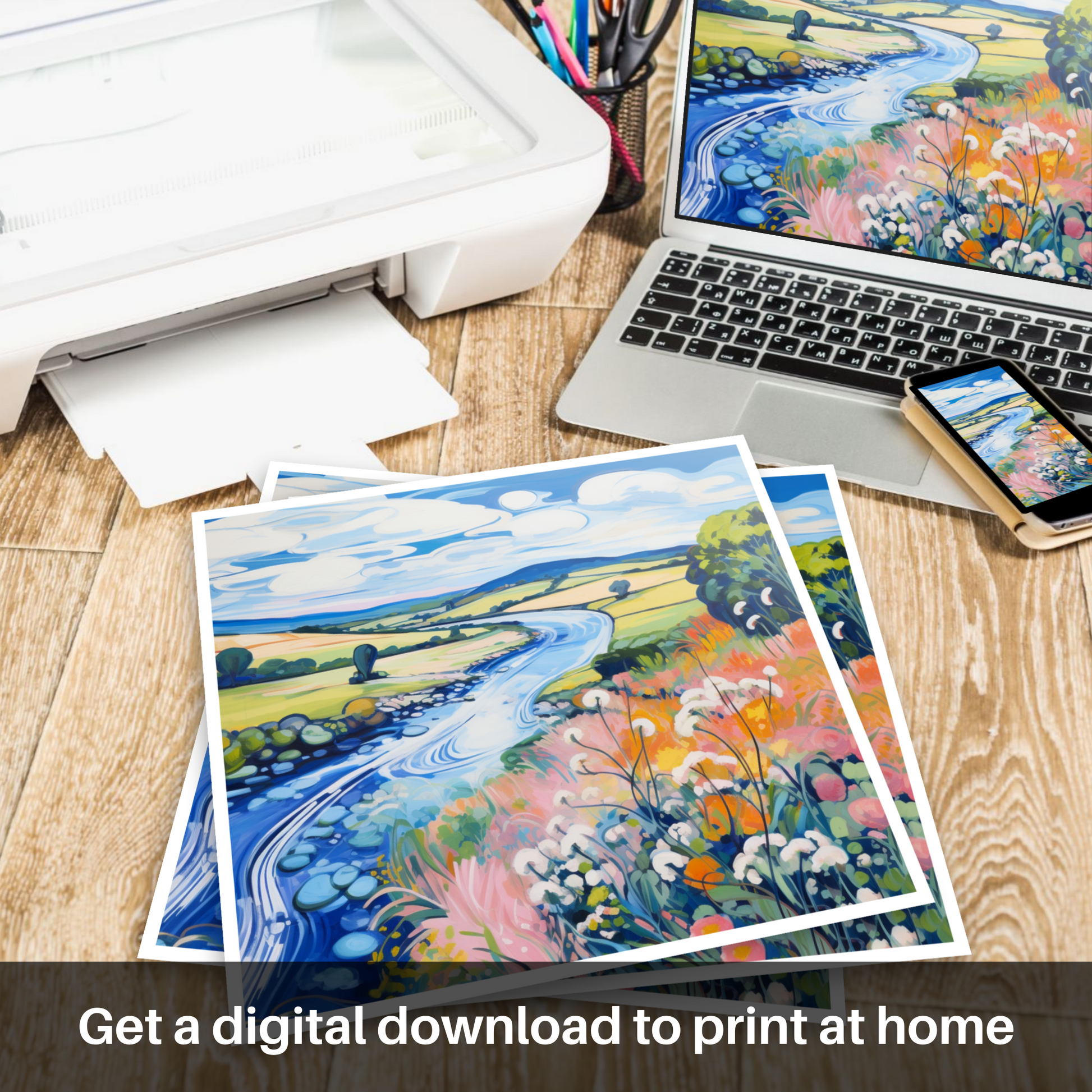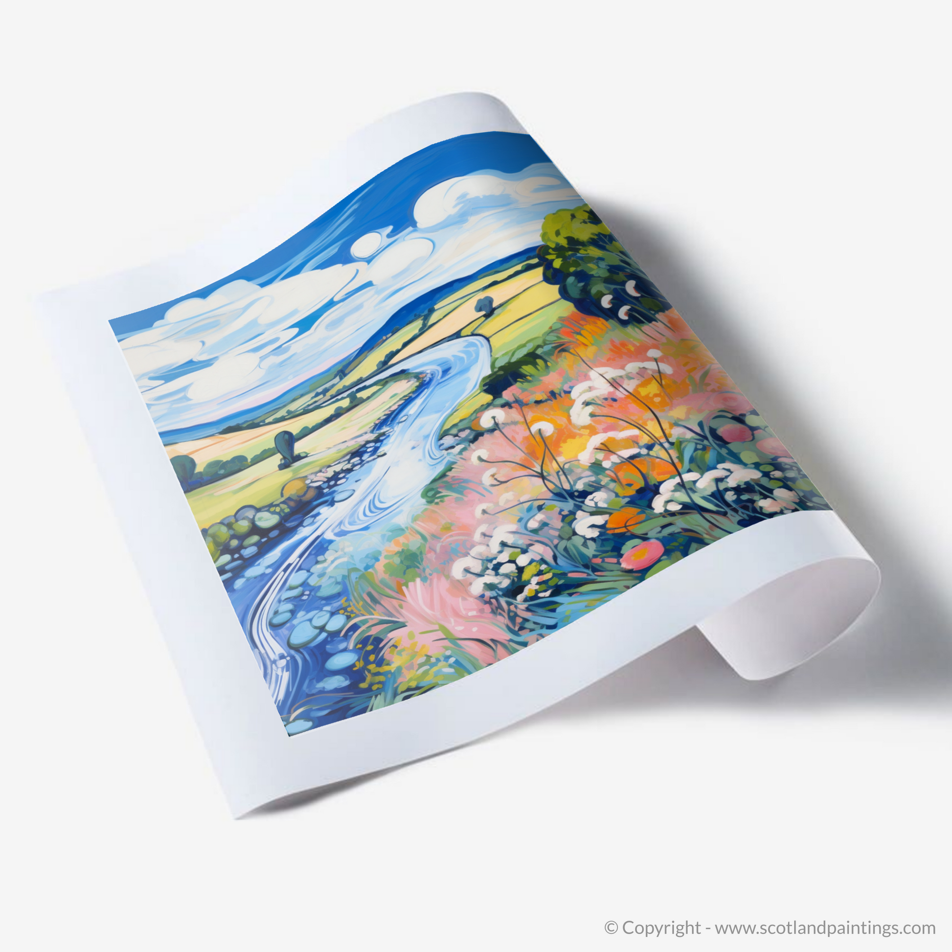 Let the vivacious hues and dynamic swirls of this Fauvist-inspired depiction of the River Nith in Dumfries and Galloway transport you to a Scottish summer idyll. The print is an explosion of colour, capturing the essence of the season with a bold palette that breathes life into the serene landscape.