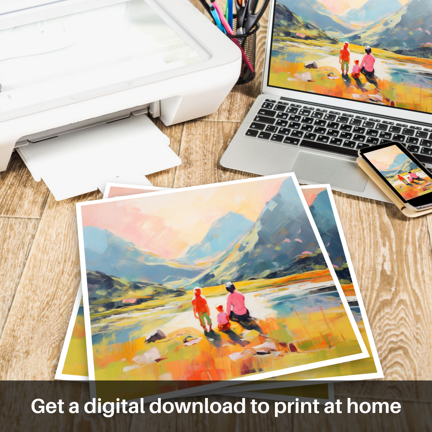 This piece is more than a mere representation; it's an emotion on canvas, speaking to the onlooker with a myriad of sensations—the freshness of open air, the tranquillity of remote beauty, and the cherished company of loved ones. As part of our ‘Scotland in Summer’ collection, this print is a timeless homage to the Scottish highlands, capable of bringing a dose of Glencoe's magic into any space.