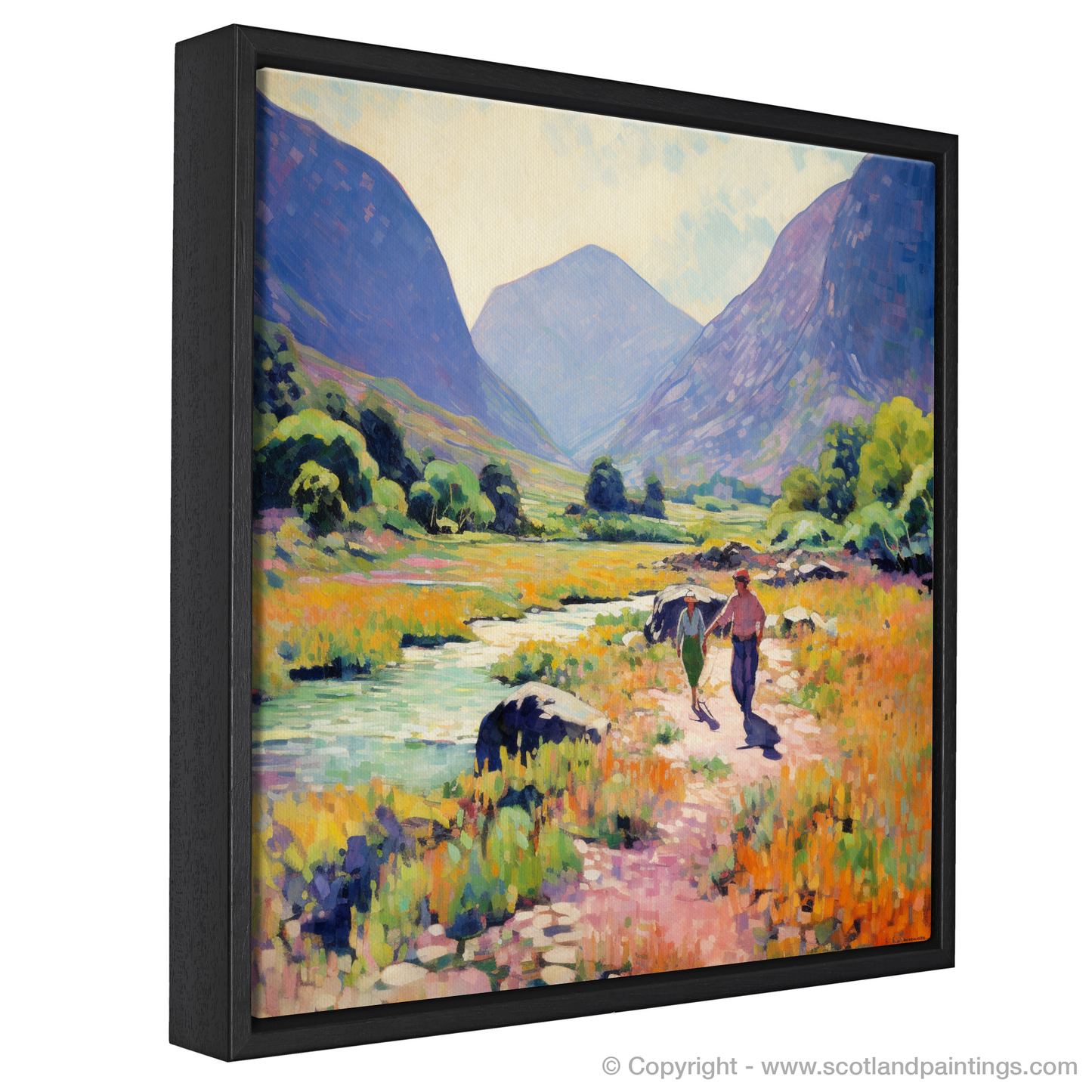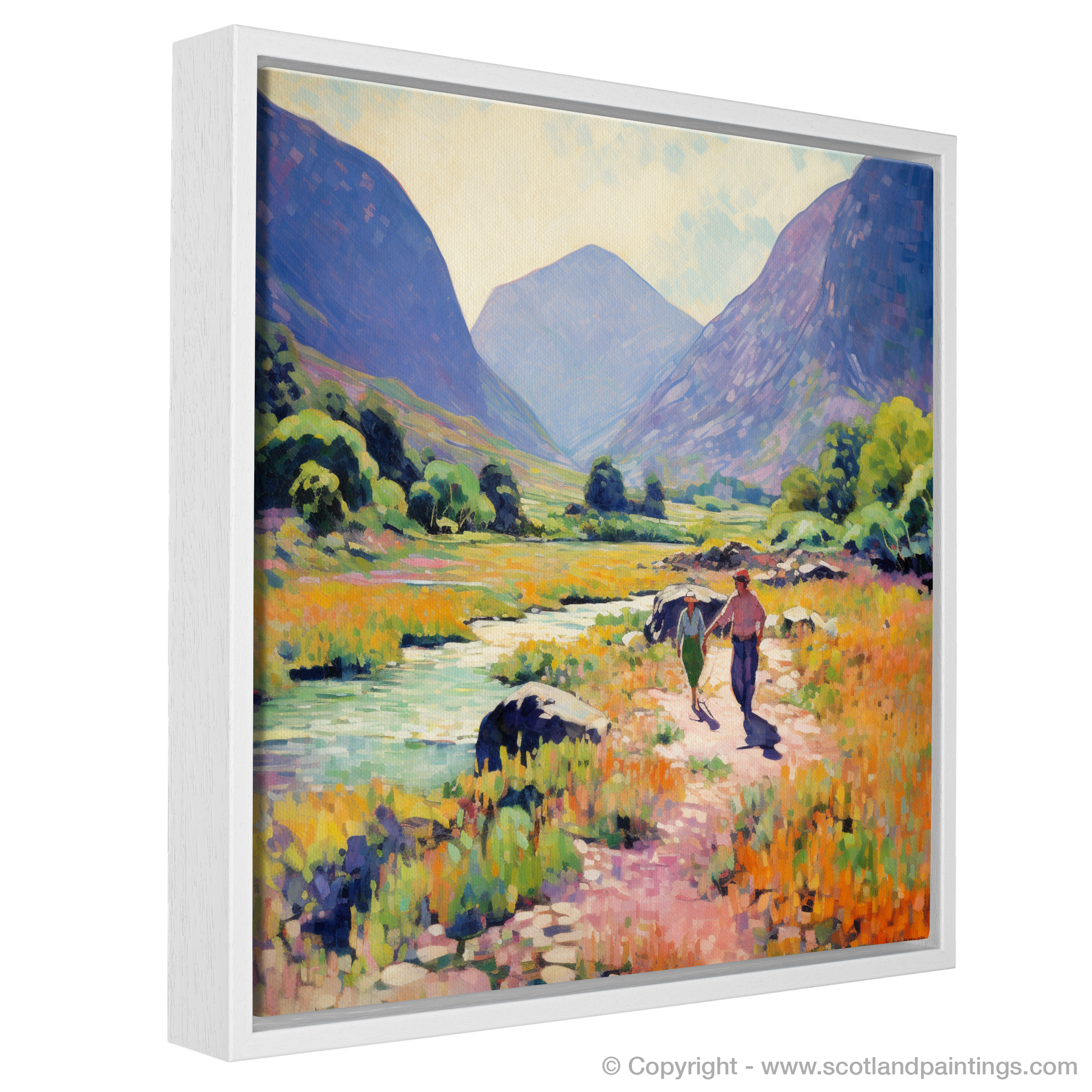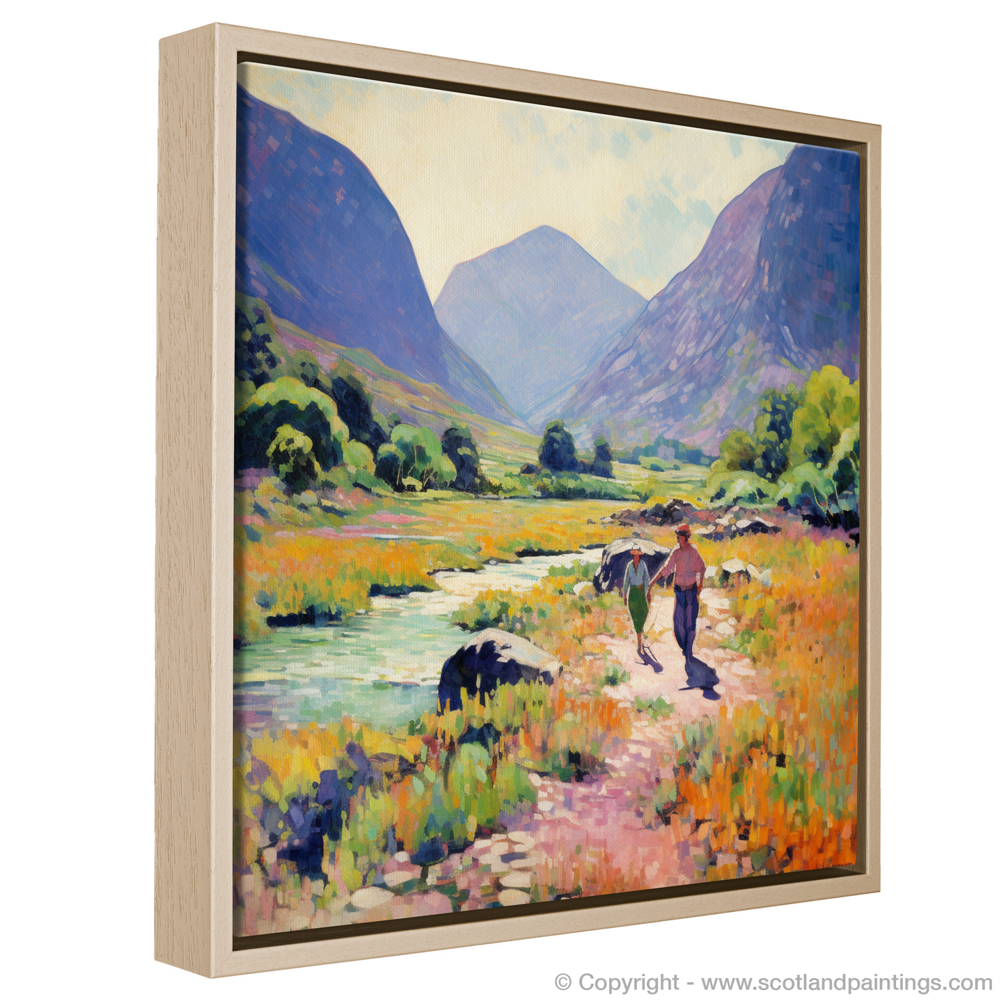 Immerse yourself in the timeless beauty of the Scottish Highlands with our evocative print, capturing the essence of a summer's day in the heart of Glencoe. With every glance, you are transported to a place where the air is clear and the vibrant colours of nature embrace you. This print resonates with the spirit of Impressionism, as it expertly renders a pair of walkers ambling leisurely along a sun-dappled path.
