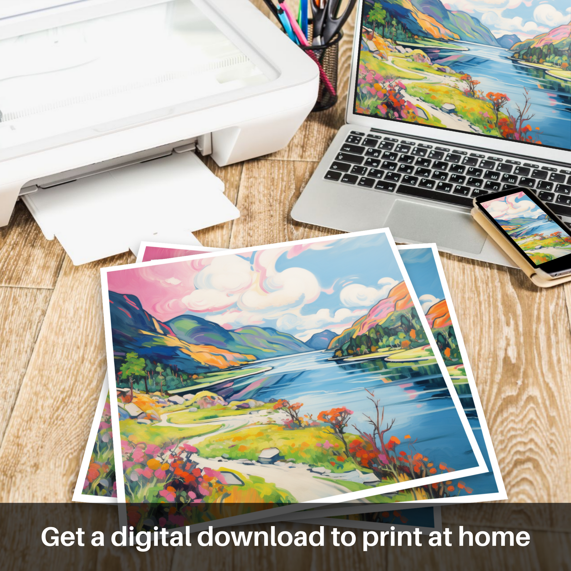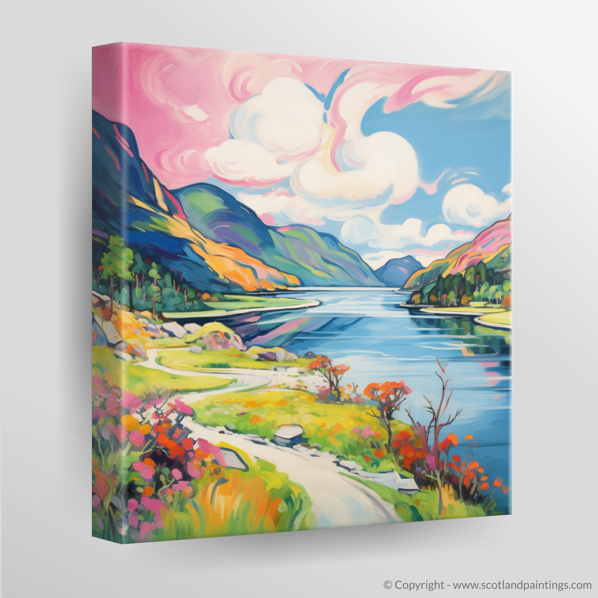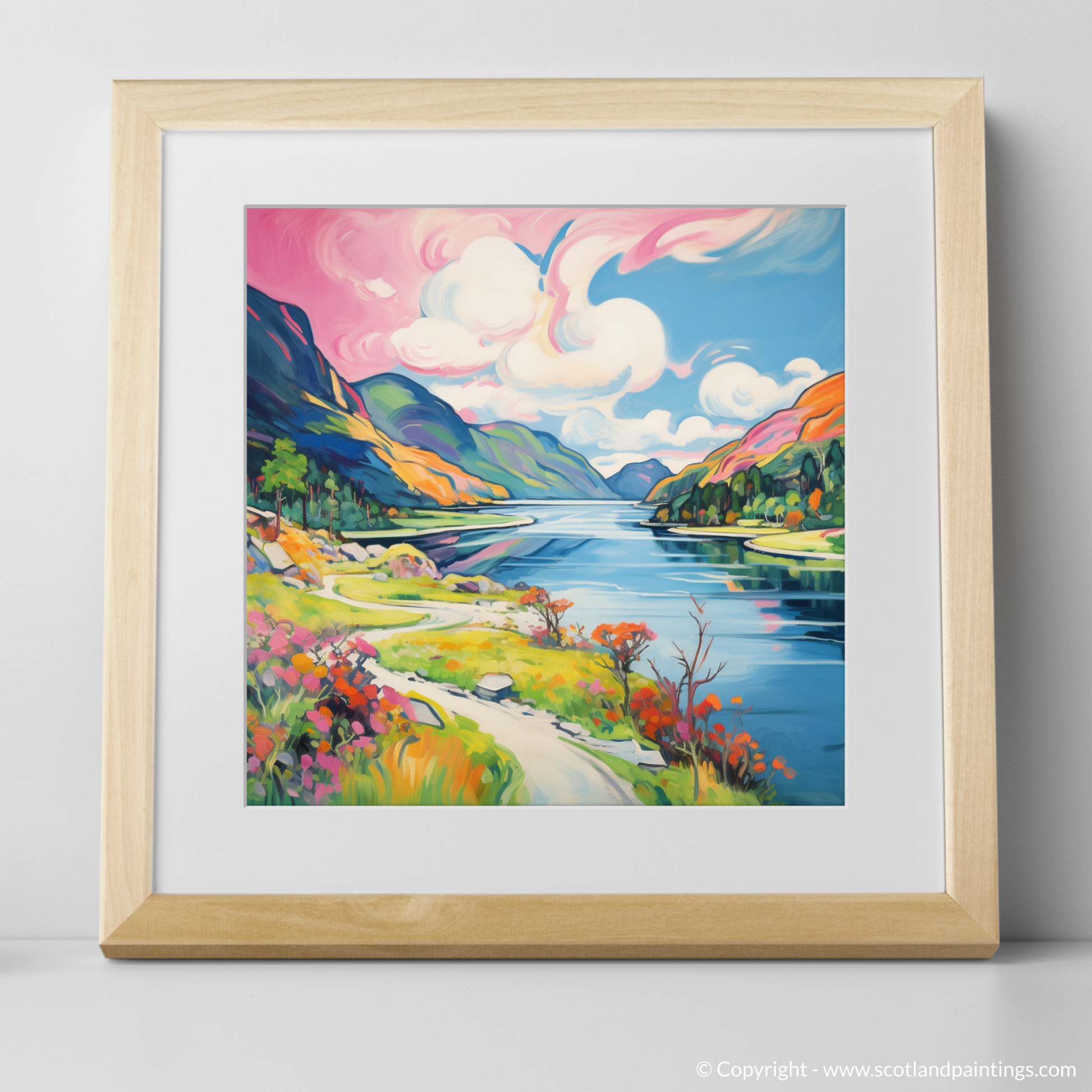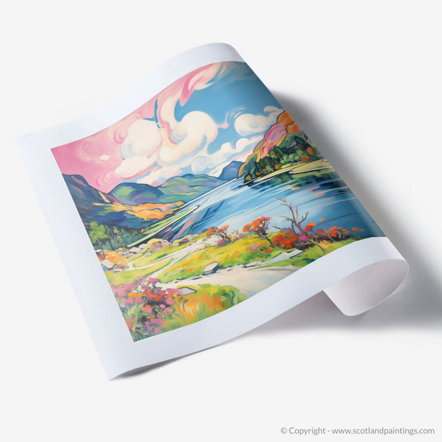 Embrace the vibrant essence of the Scottish Highlands during the lush summer months with this mesmerising print, a tribute to the majestic Loch Shiel. Bask in the evocative hues of an art style reminiscent of Fauvism, where colour is the undoubted hero steering your emotions and imagination.