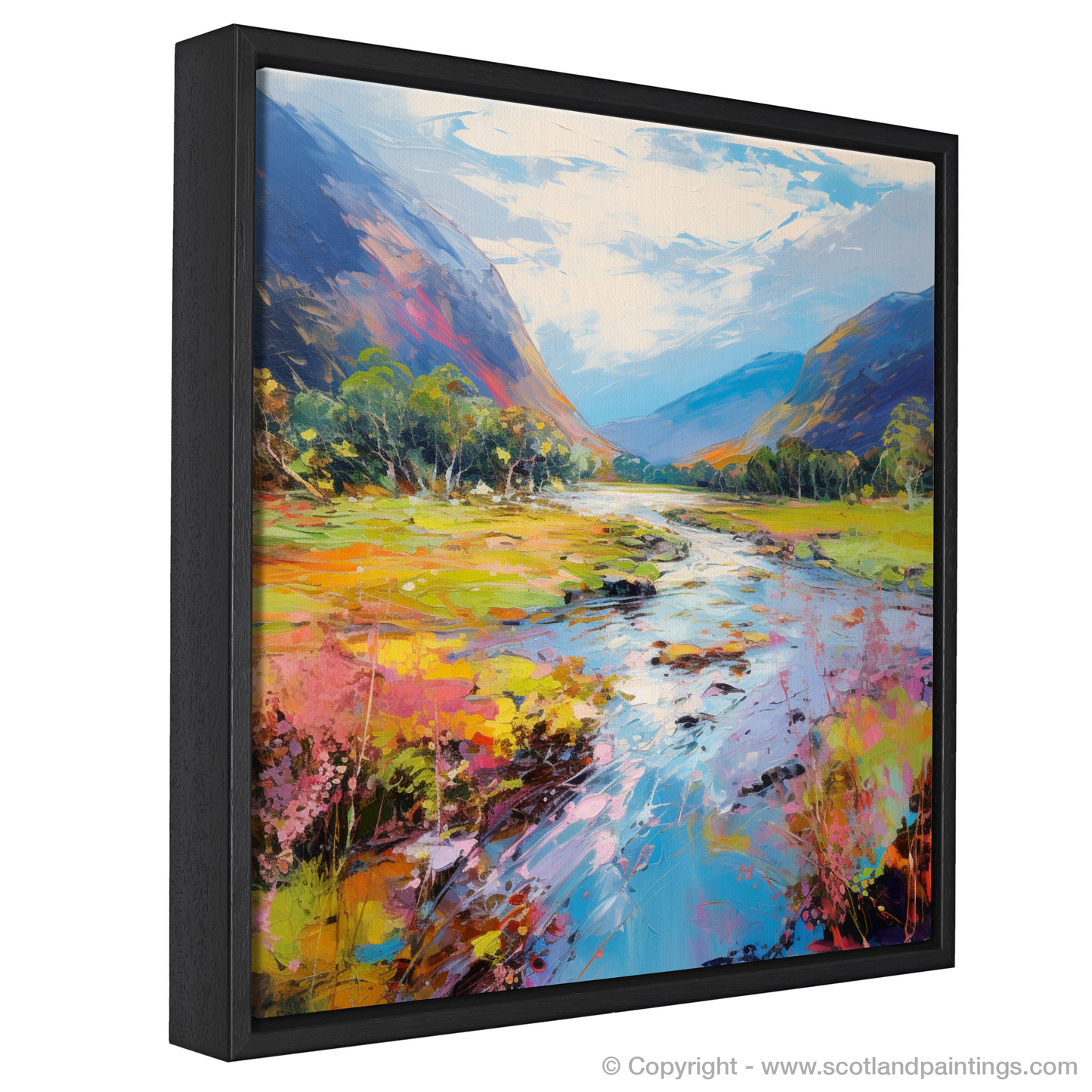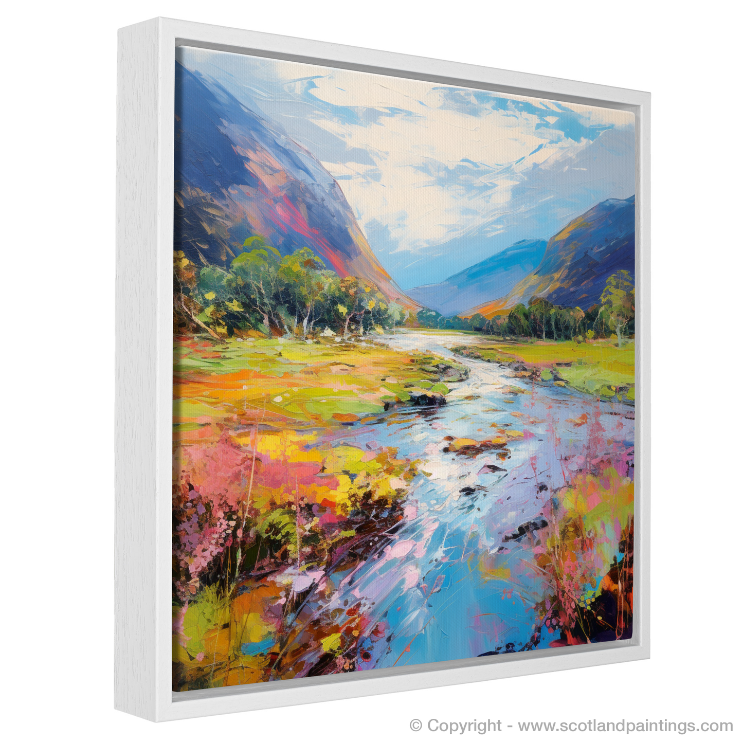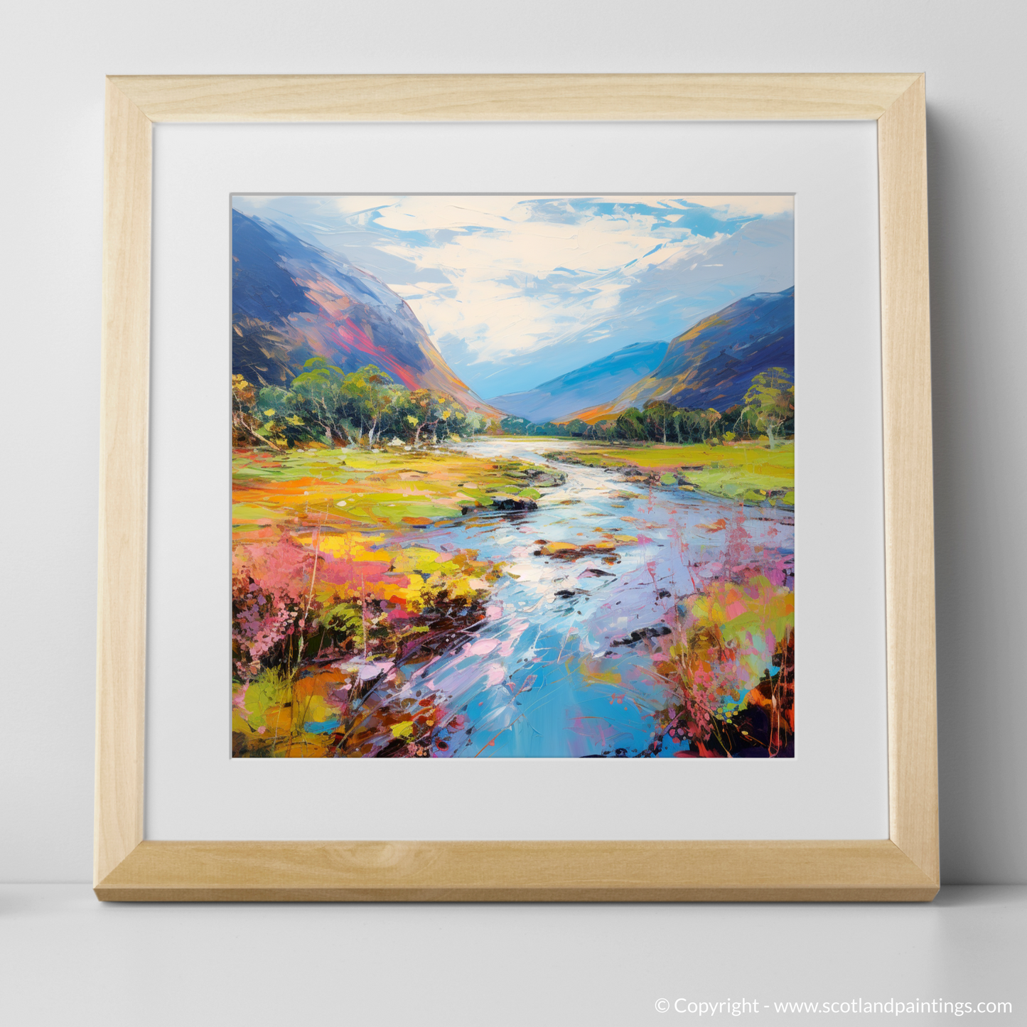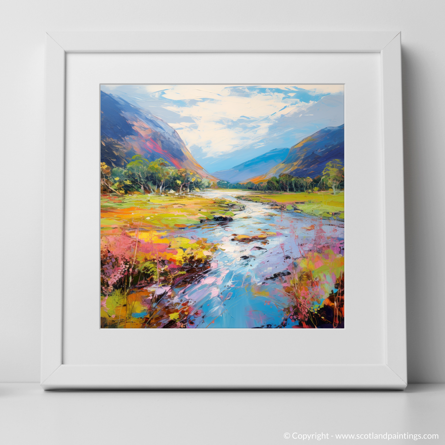 Immerse yourself in the vibrant hues of a Highland summer with this exquisite print, capturing the essence of River Coe running through the Glencoe Valley. The artwork, steeped in the timeless tradition of Impressionism, brings to life the sweeping drama of the Scottish landscape with a modern twist.