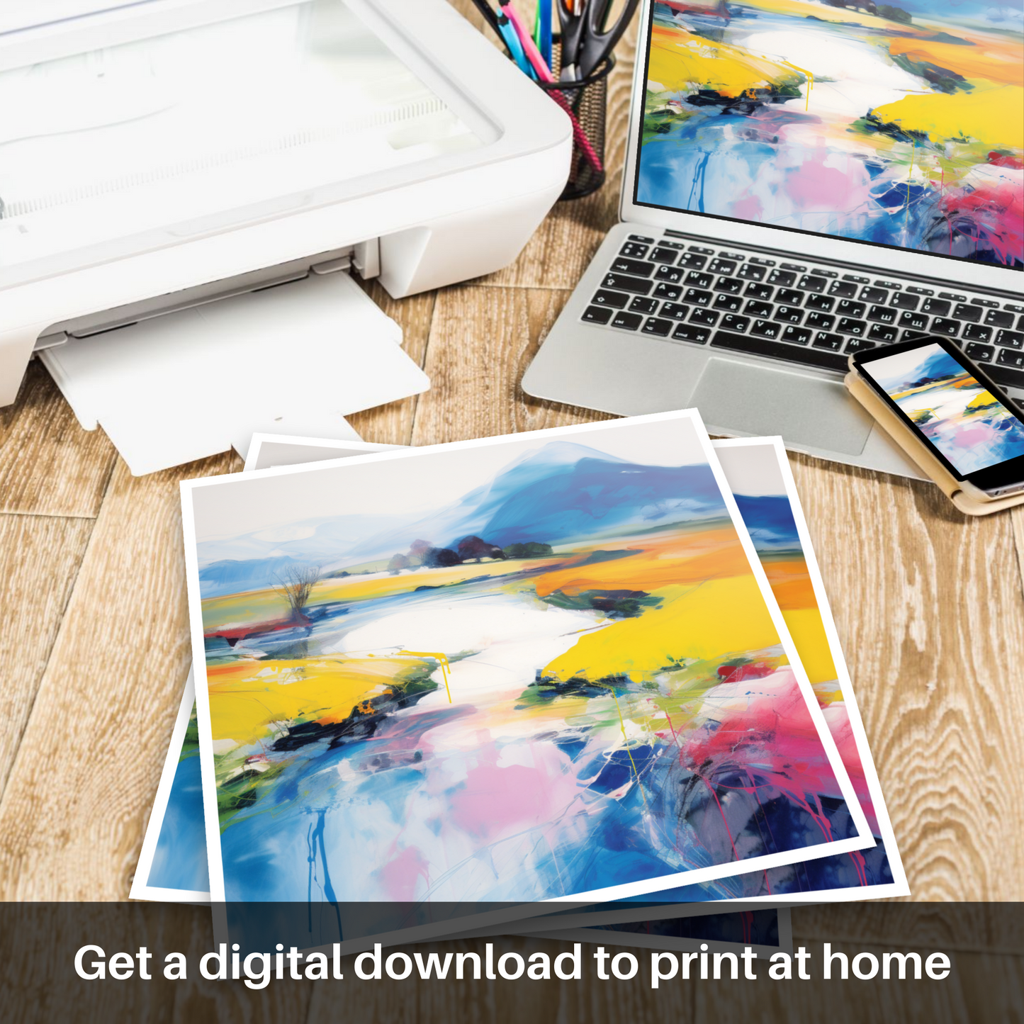 Visualise the Scottish summer through the lens of abstraction, where vibrant hues and intangible forms come alive in this captivating print. Inspired by the River Awe in Argyll and Bute, the print serves as a sensory journey through the natural wonders of Scotland.