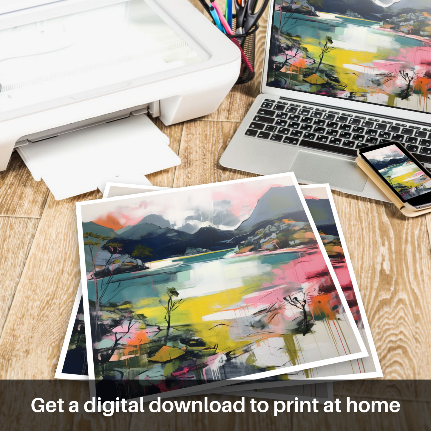 This print is a celebration of Scotland's natural grandeur, bringing a touch of contemporary zeal to the time-honoured scenery—a perfect centrepiece for those who wish to adorn their walls with a modern rendition of Scotland's enduring allure.