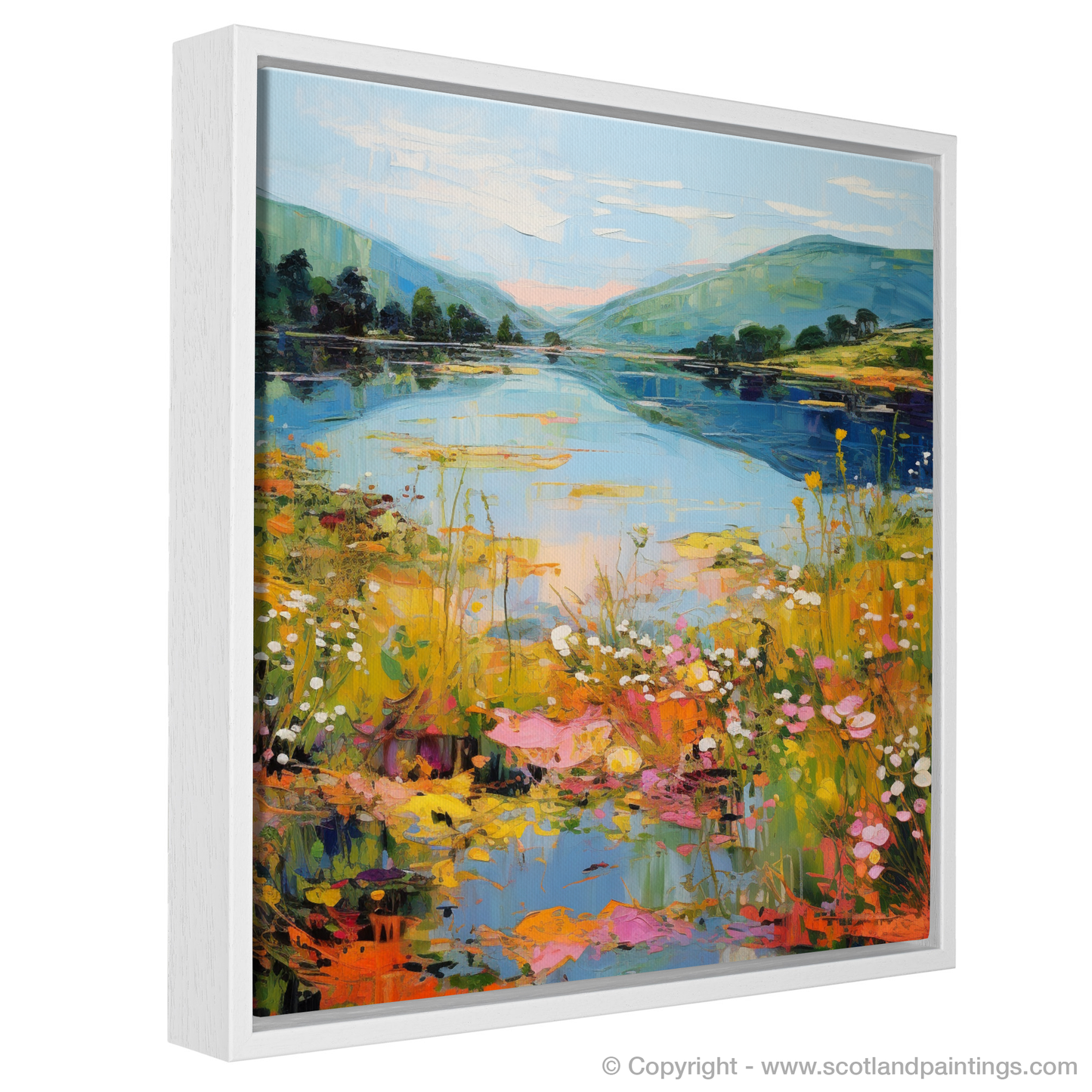 Immerse yourself in the tranquil beauty of a summer's day at Loch Doon with this captivating Impressionist-inspired print. Envision yourself wandering through the lush landscape as your eyes take in the dance of colours and light captured within this piece. The scene offers a vibrant tapestry of wildflowers in a myriad of colours: delicate whites, deep yellows, and a spectrum of pinks that seem to breathe life into the canvas.