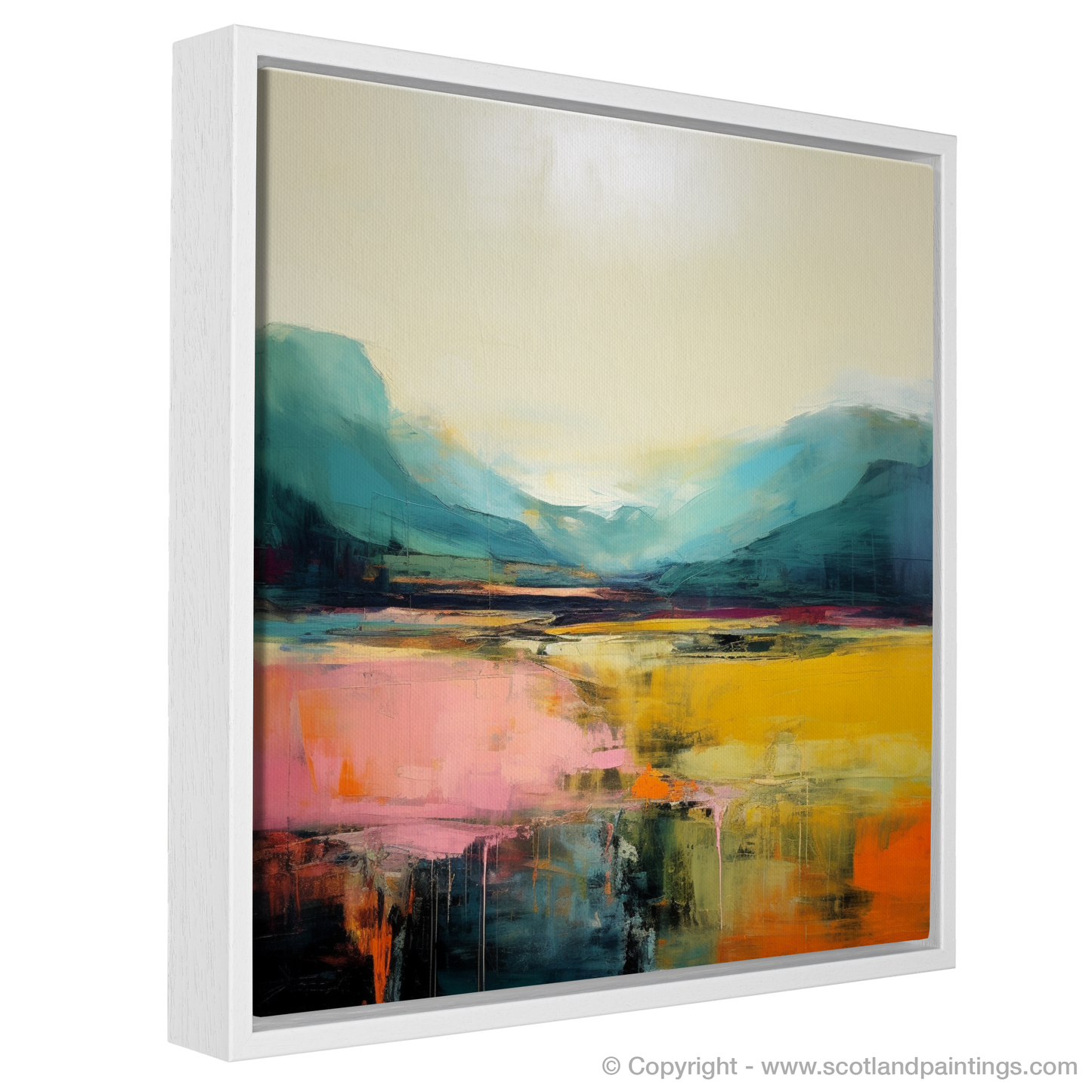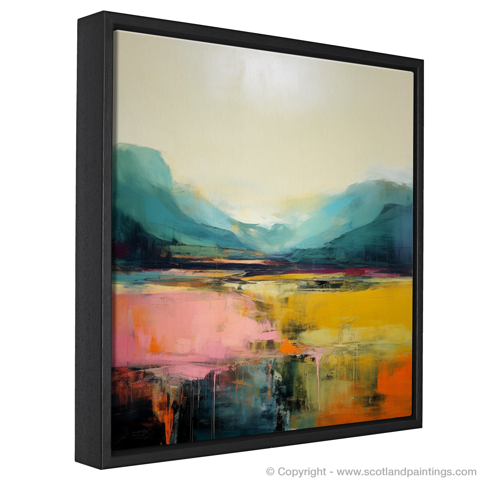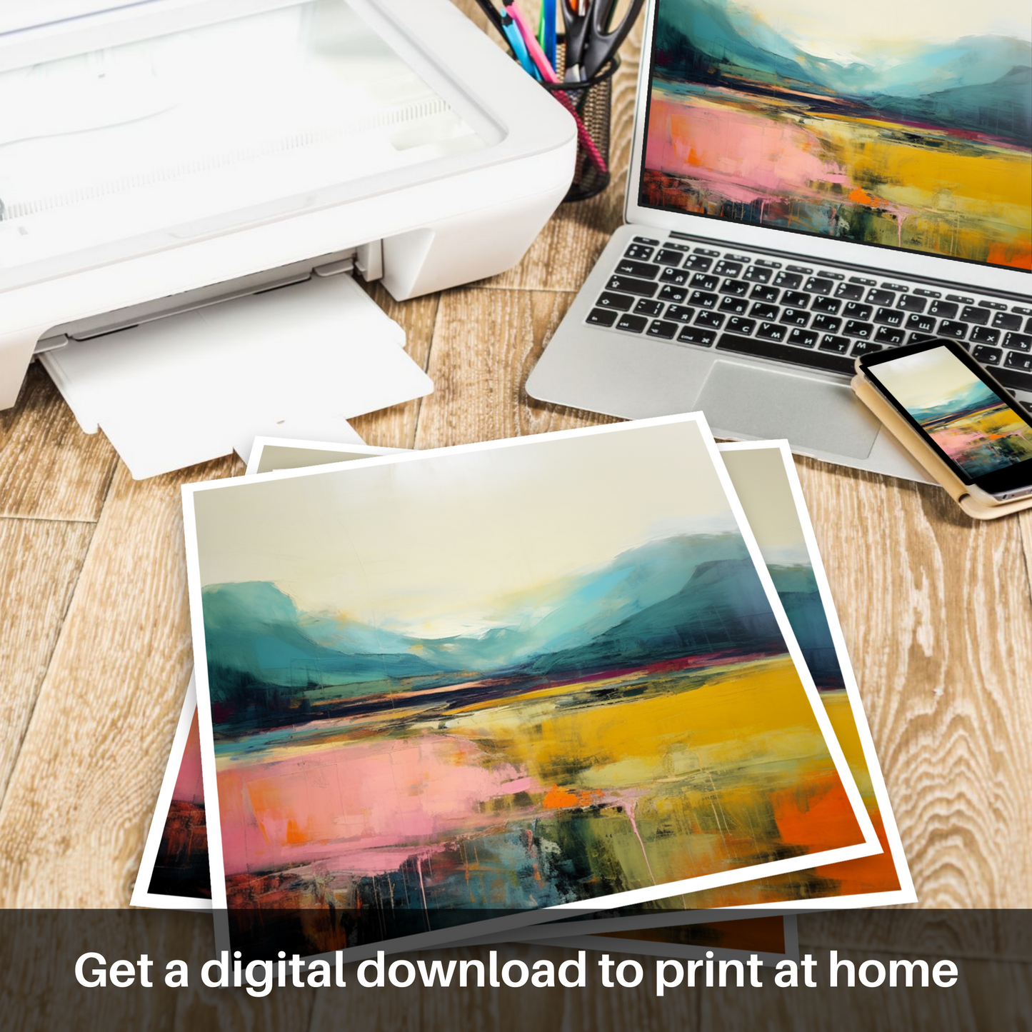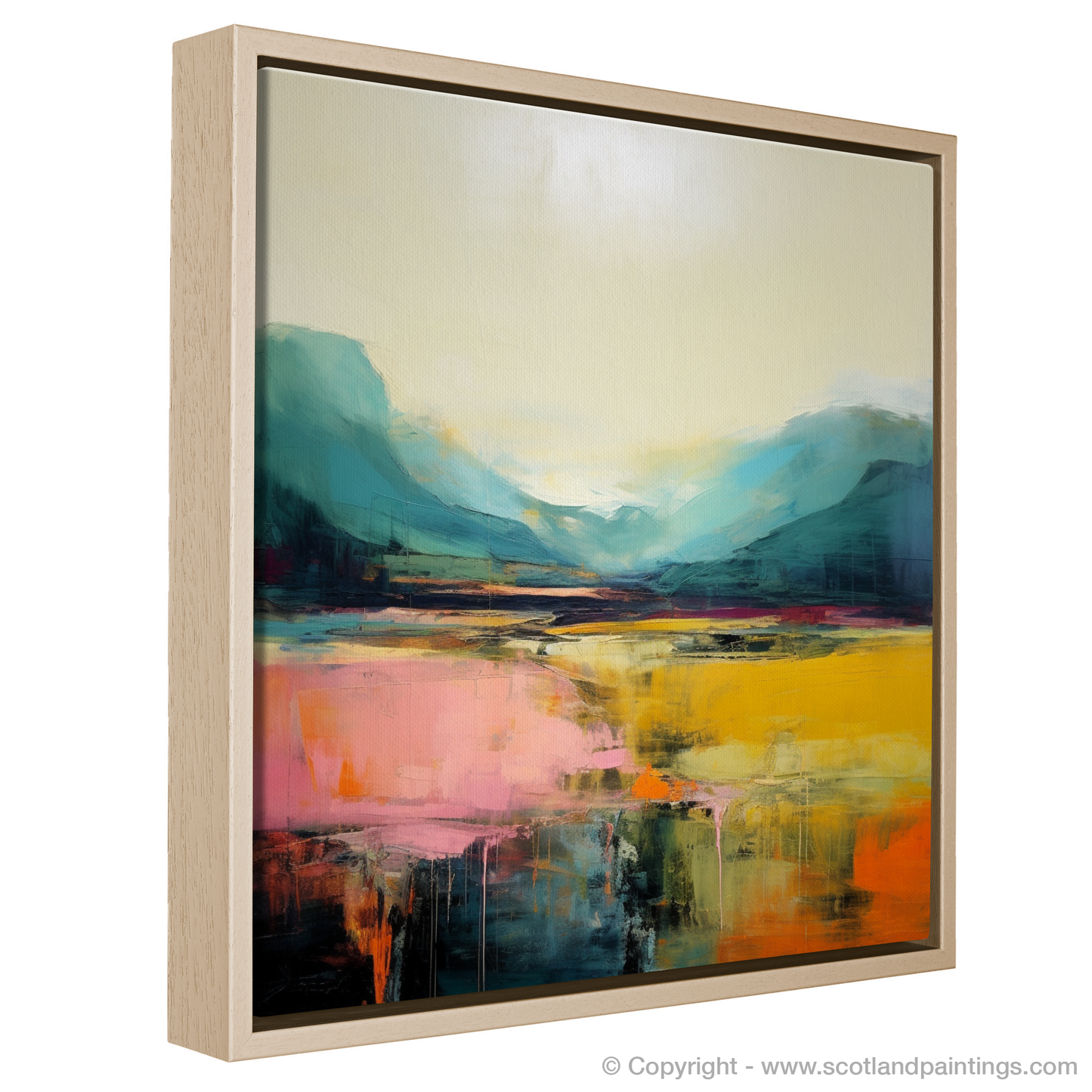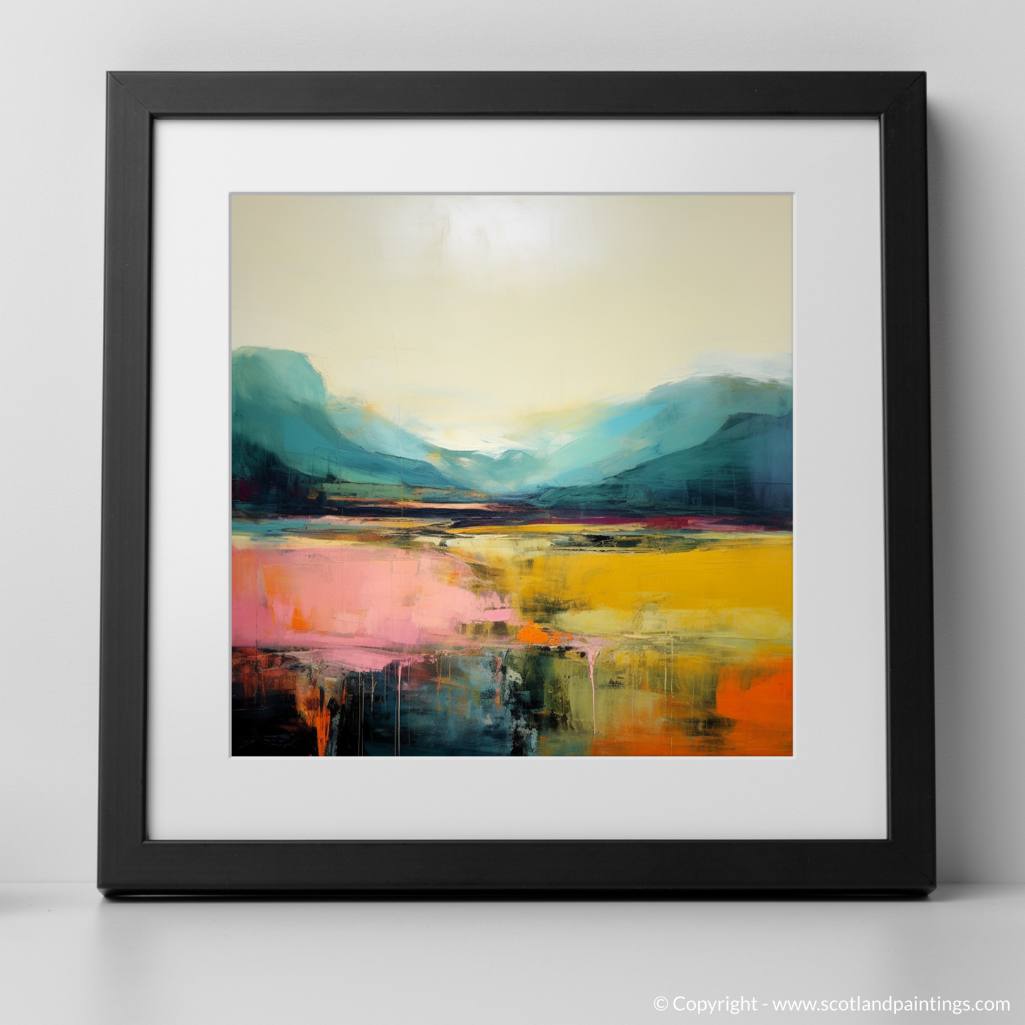Immerse yourself in the vibrant, abstract landscape of the Glenmore Highlands, captured in the height of summer with an exuberance of color that sings of the season's warmth and vitality. Enigmatic blues and greens suggest distant hills and valleys, rendered in soothing, sweeping strokes that evoke the majestic tranquility of Scotland's natural scenery.