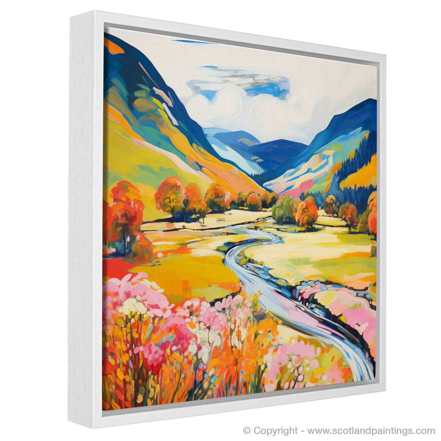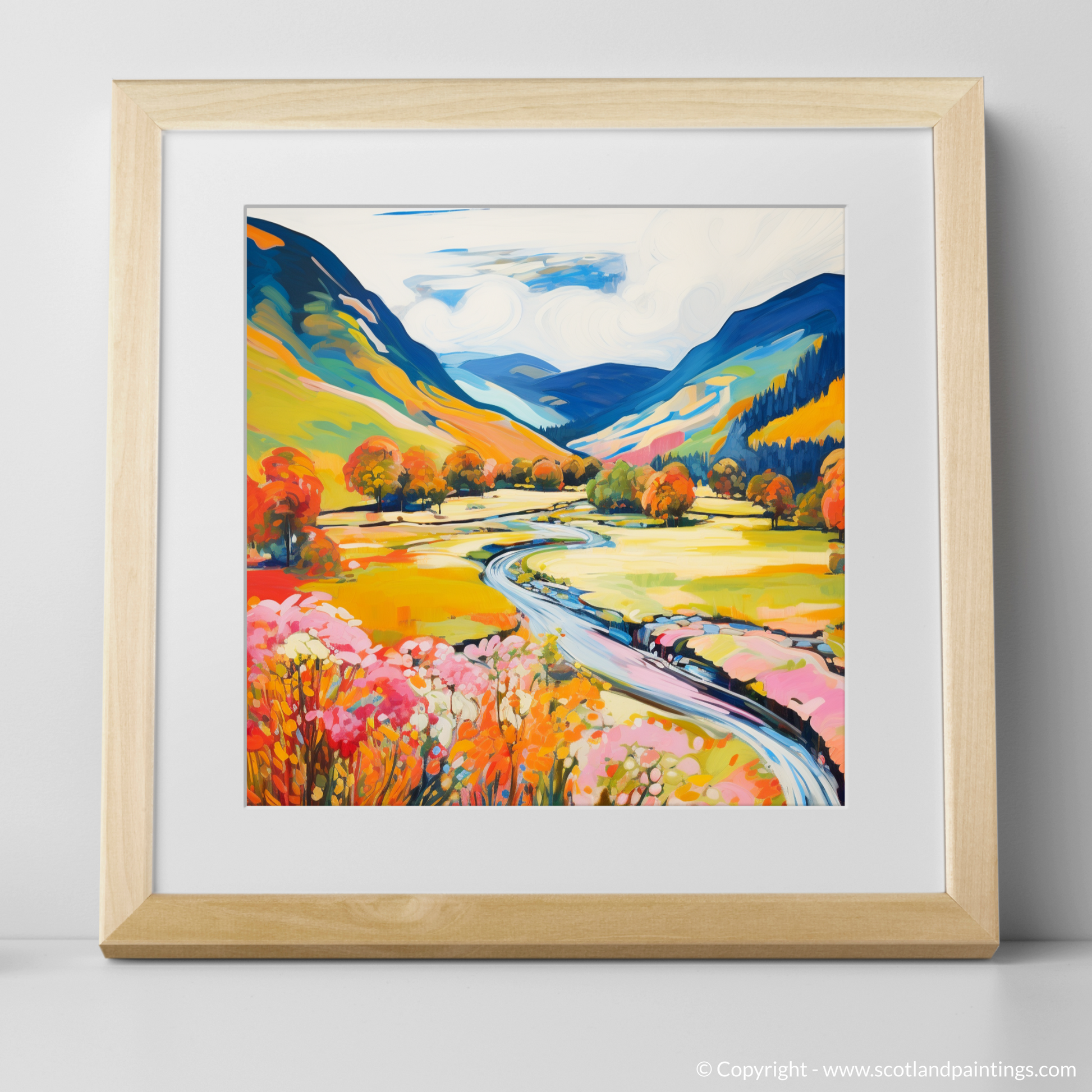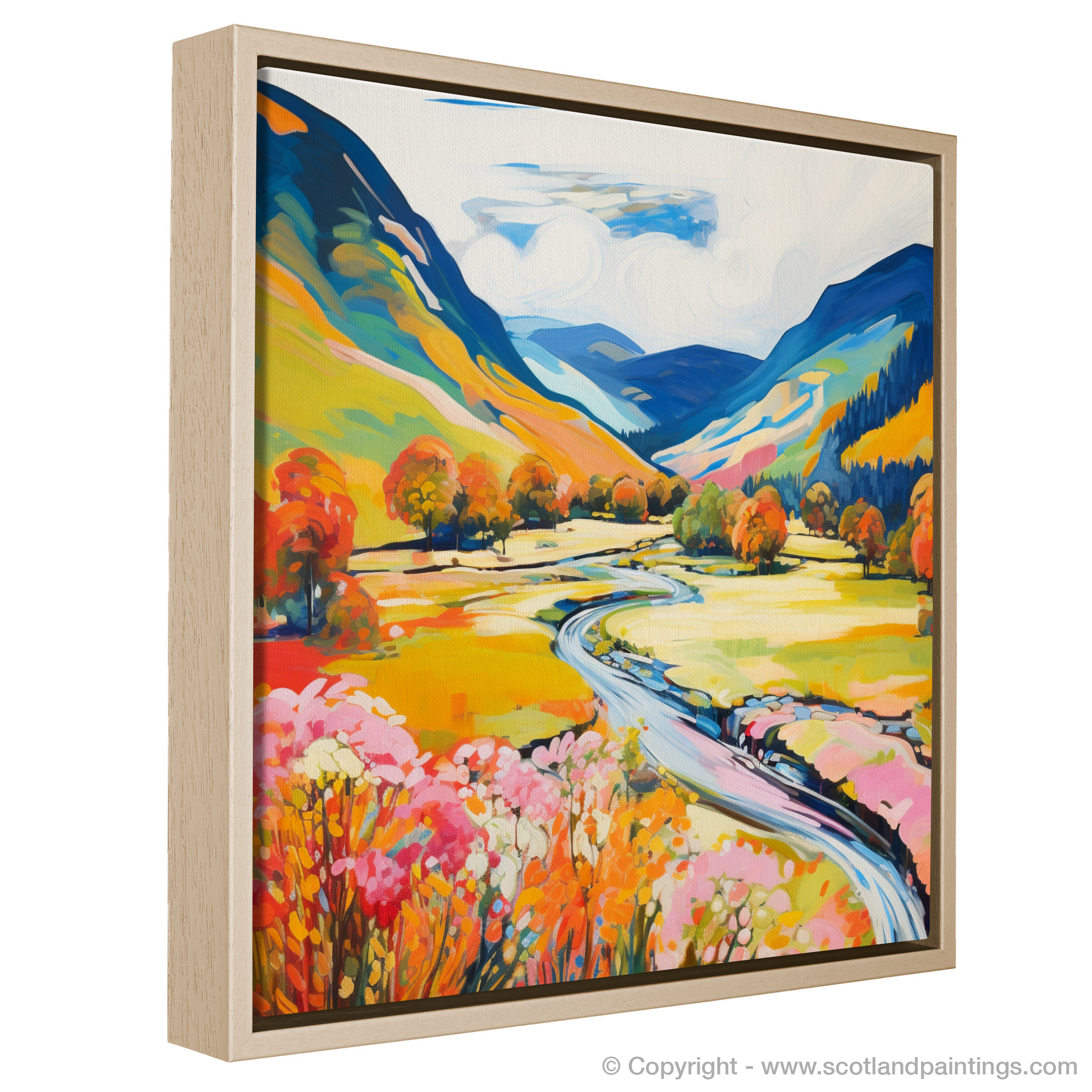 Capturing the vivid essence of Glen Lyon in Perthshire, this striking piece envelops the viewer in the warmth of a Scottish summer. The artwork is a symphony of colours that transport you to the heart of the Highlands, where vibrant hues and serene landscapes converge.