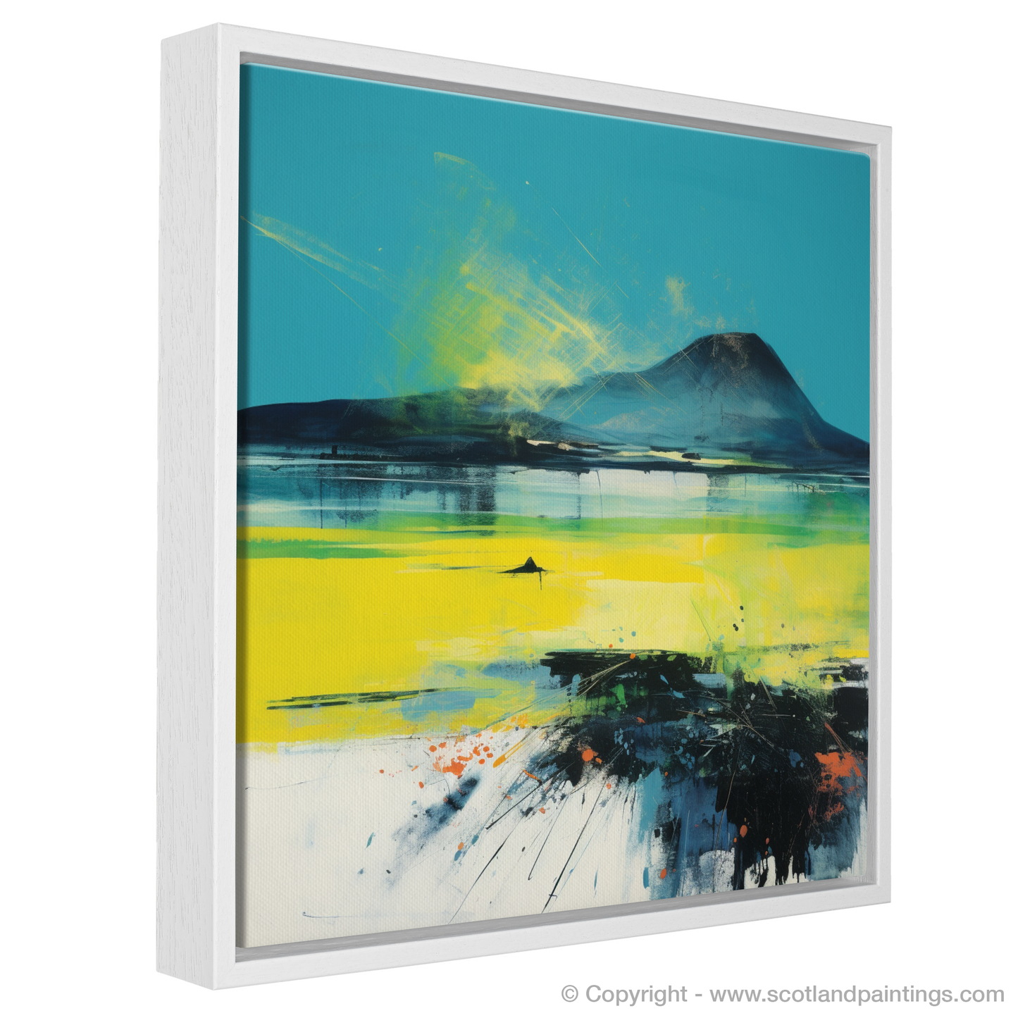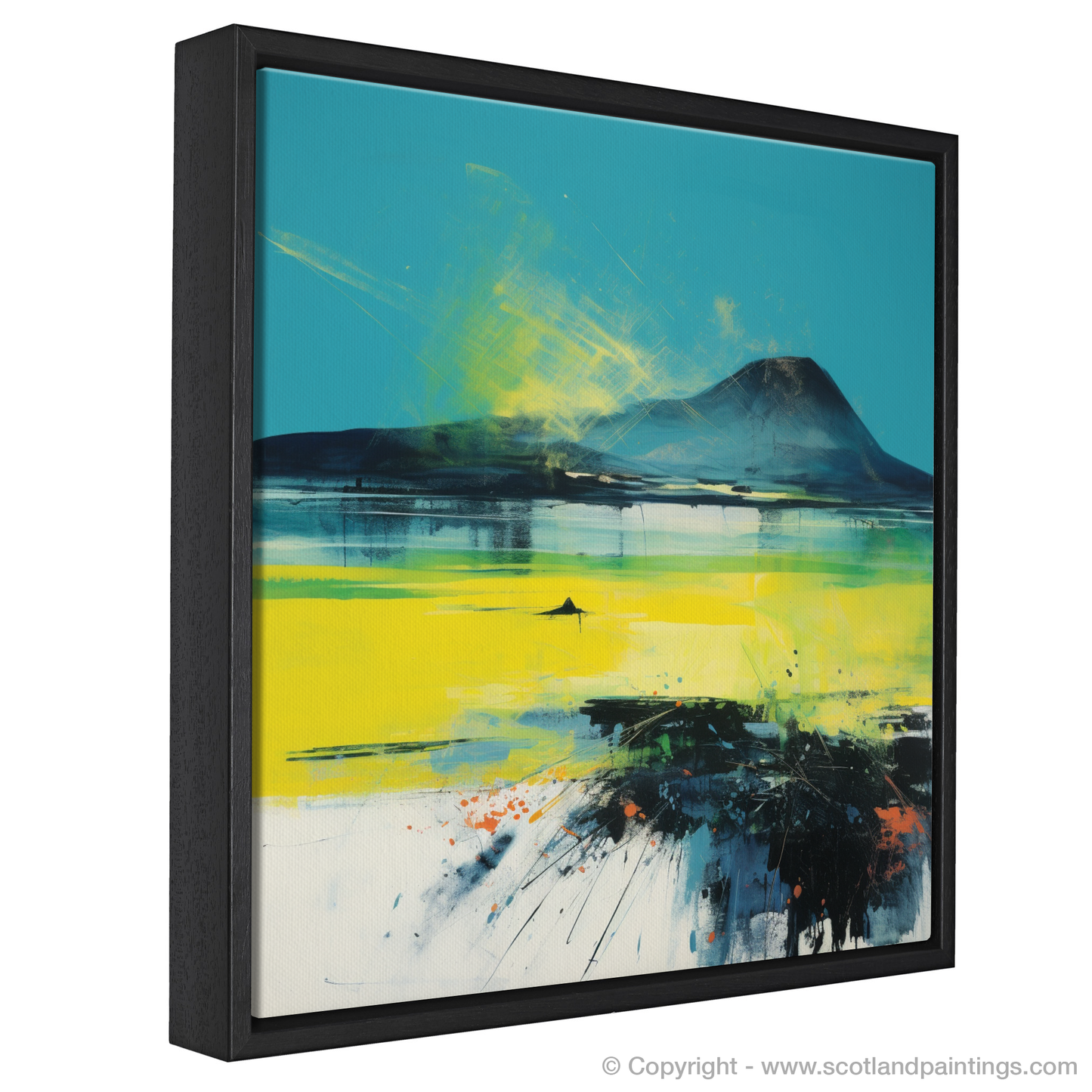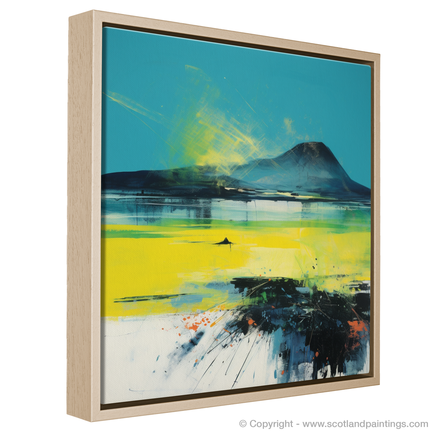 Capturing the vibrancy of the Isle of Jura's summer, this abstract print is a symphony of colour and emotion. At first glance, viewers are greeted with a cascade of sunny yellows that evoke the brightness and warmth of a summer's day on the Hebridean shore. These cheerful hues seamlessly transition into serene blues that dance across the canvas, embodying the tranquil waters surrounding the isle.
