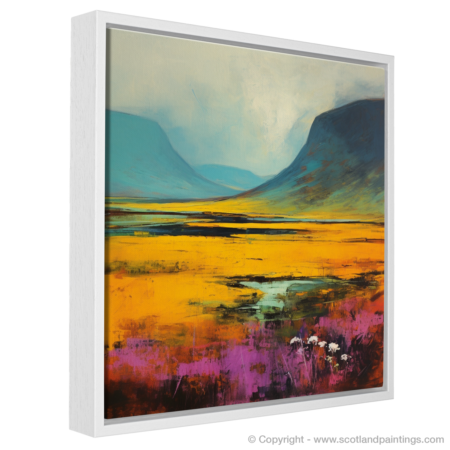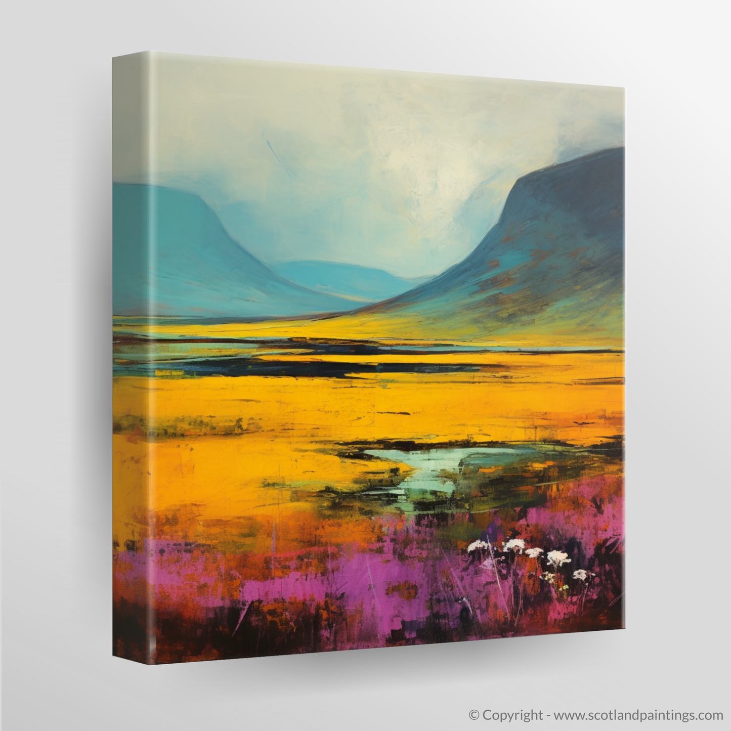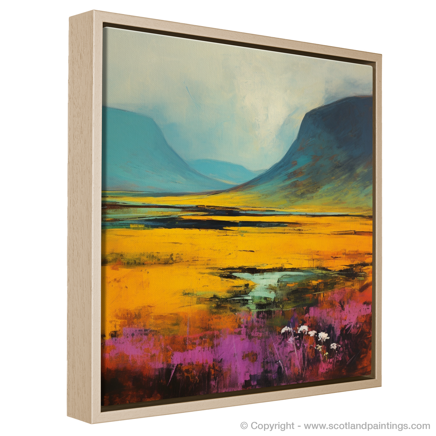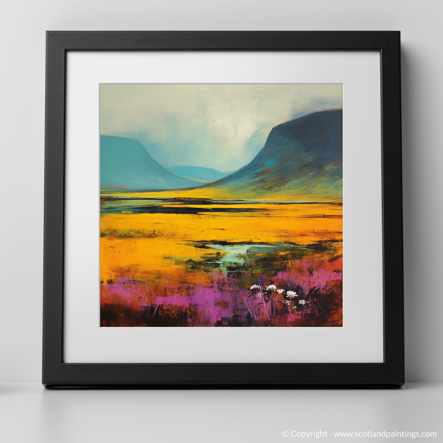 Each compositionally balanced segment of this print invites the observer to travel through the artwork, from the textured lowlands into the softened mountain slopes and up, towards the vast, open sky. The result is a piece that not only reflects the essence of a specific locale but also transcends it, offering a universal experience of summer's ephemeral beauty through its rich palette and dynamic abstraction. This print is a tribute to the untamed spirit of Scotland's landscapes and the myriad impressions they engrave upon the hearts of all who behold them.