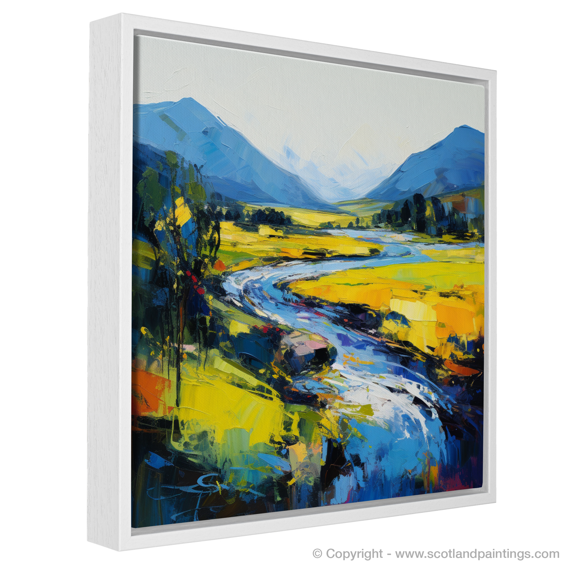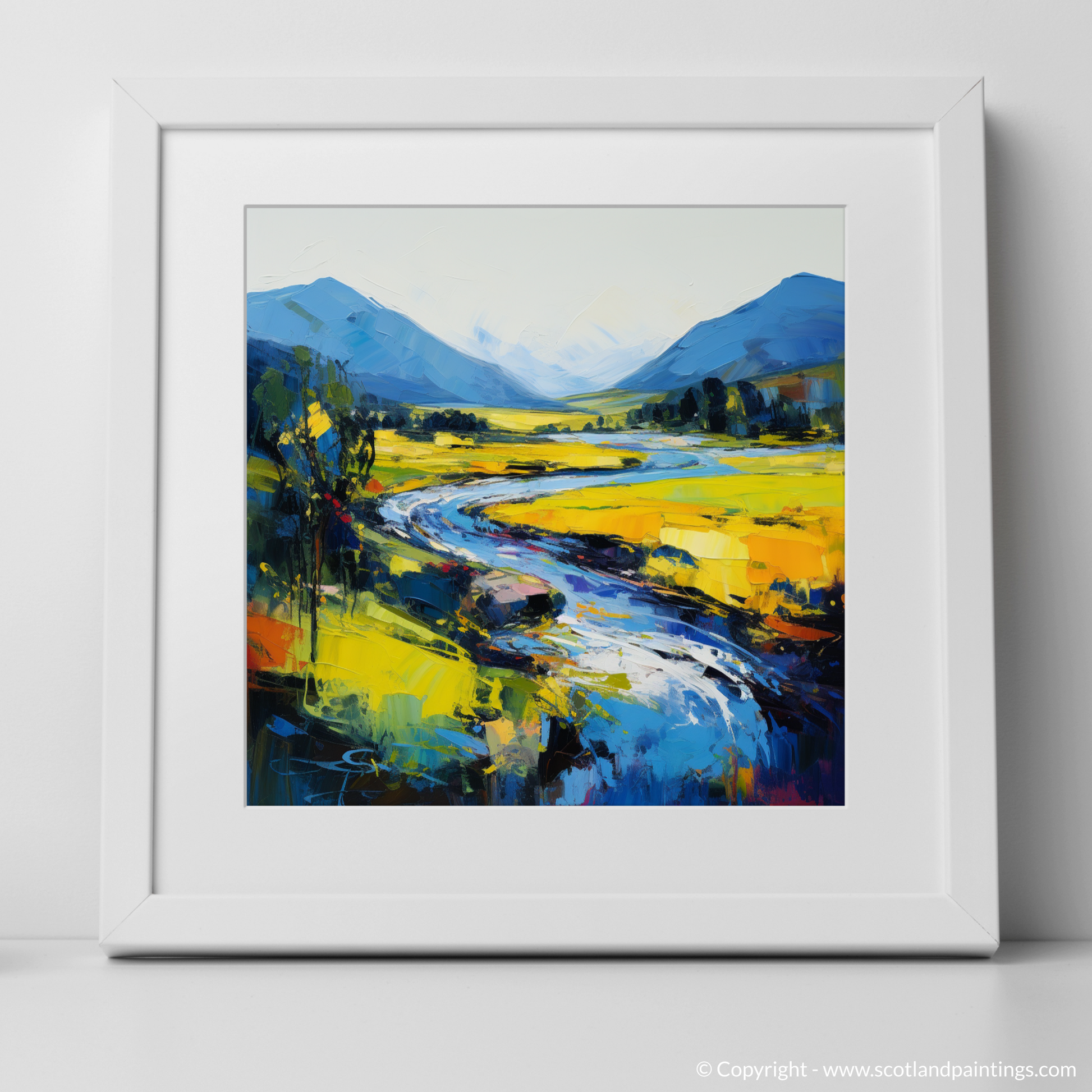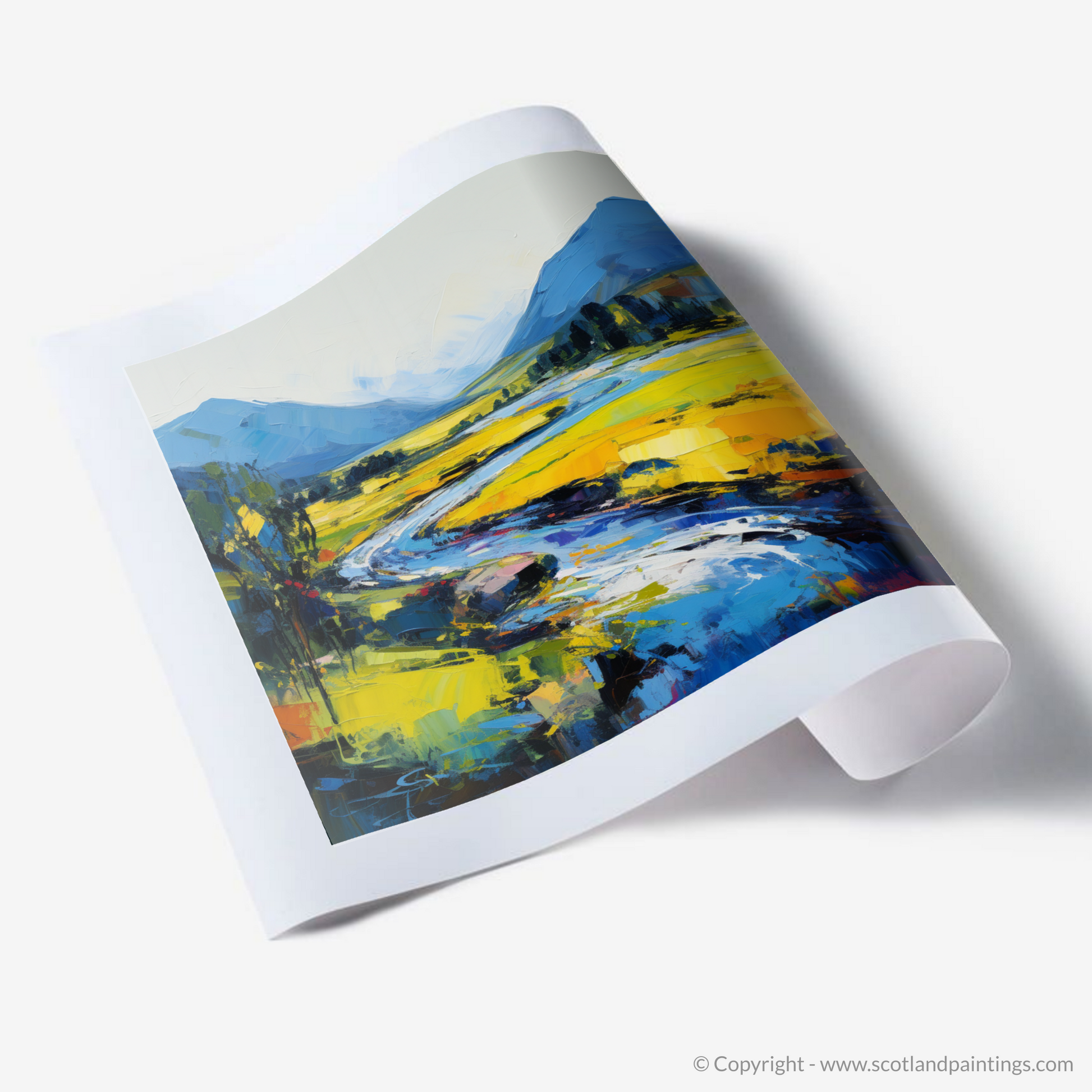 Immerse yourself in the vibrant essence of a Scottish summer with this captivating piece inspired by the serene landscapes of Glen Orchy in Argyll and Bute. This exquisite print channels the spirit of Color Field painting, merging bold swathes of colour with a touch of the abstract to evoke the sweeping vistas and dynamic skies of Scotland's dramatic highlands.