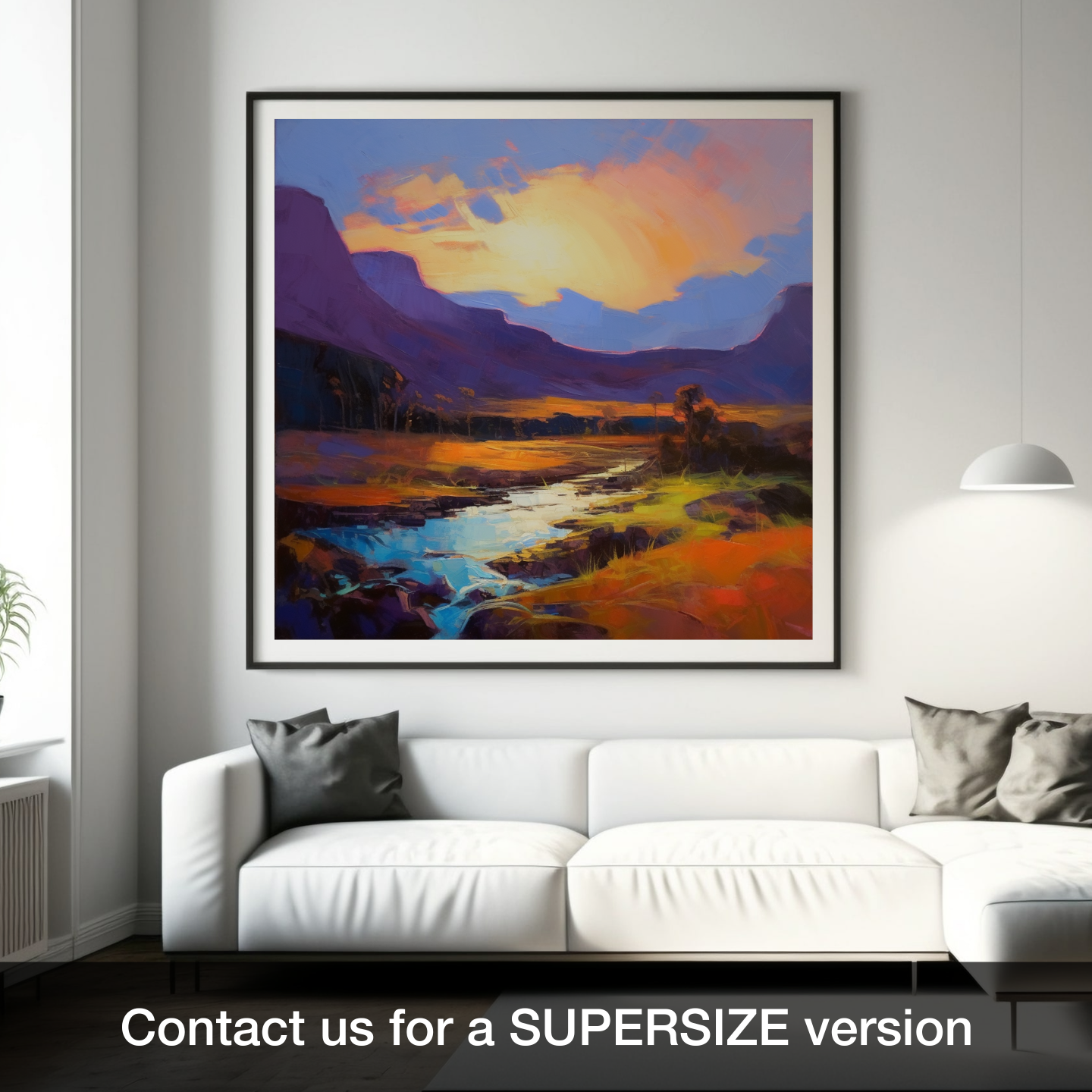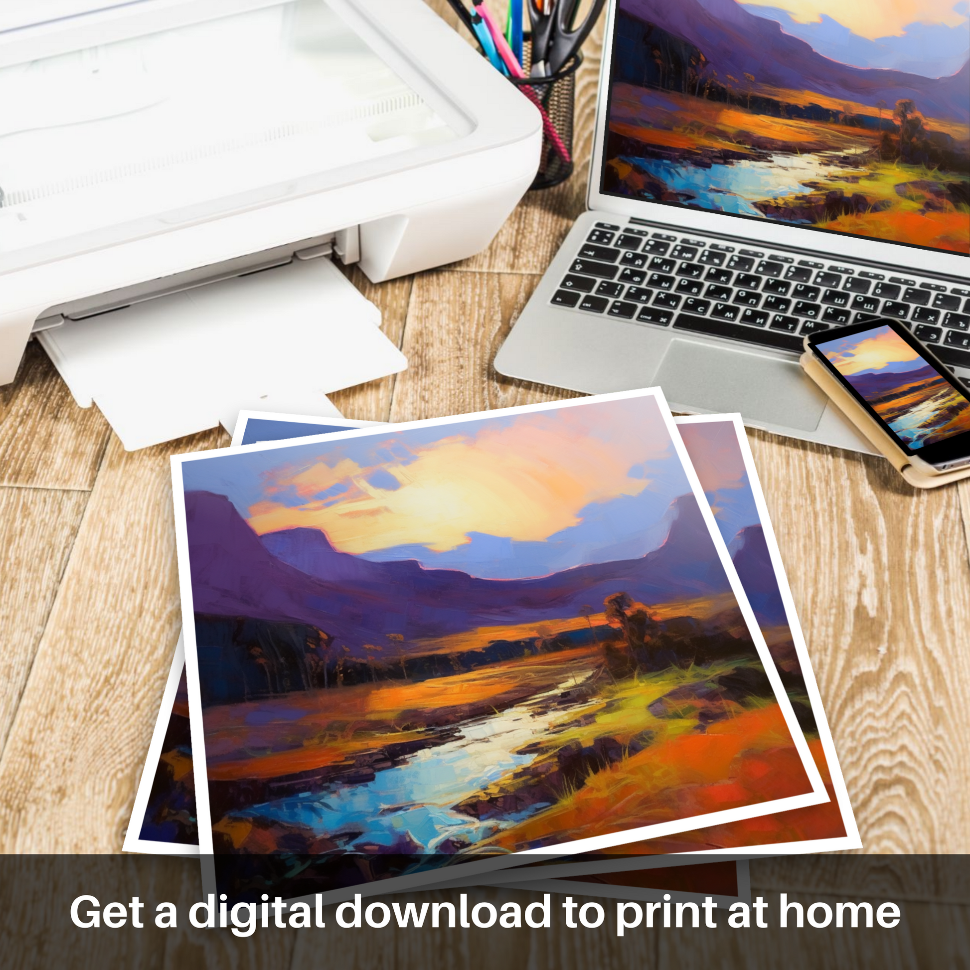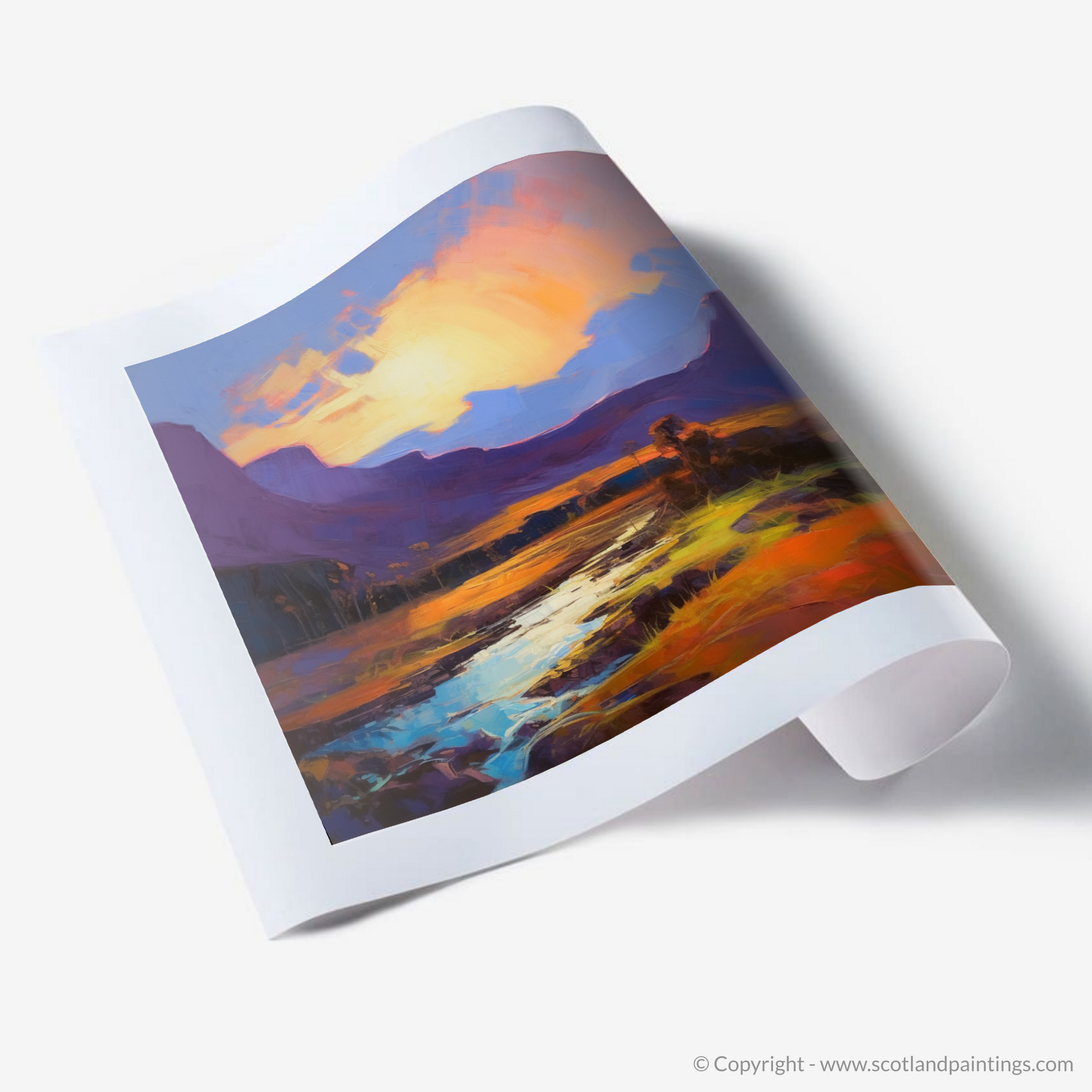 Capturing the visceral warmth of a summer's sunset, this evocative print invites viewers to immerse themselves in the vibrant hues and passionate brushstrokes reminiscent of Gullane Beach in East Lothian. The scene is alive with the dynamic juxtaposition of colour and light, embodying the fervent essence of expressionism.